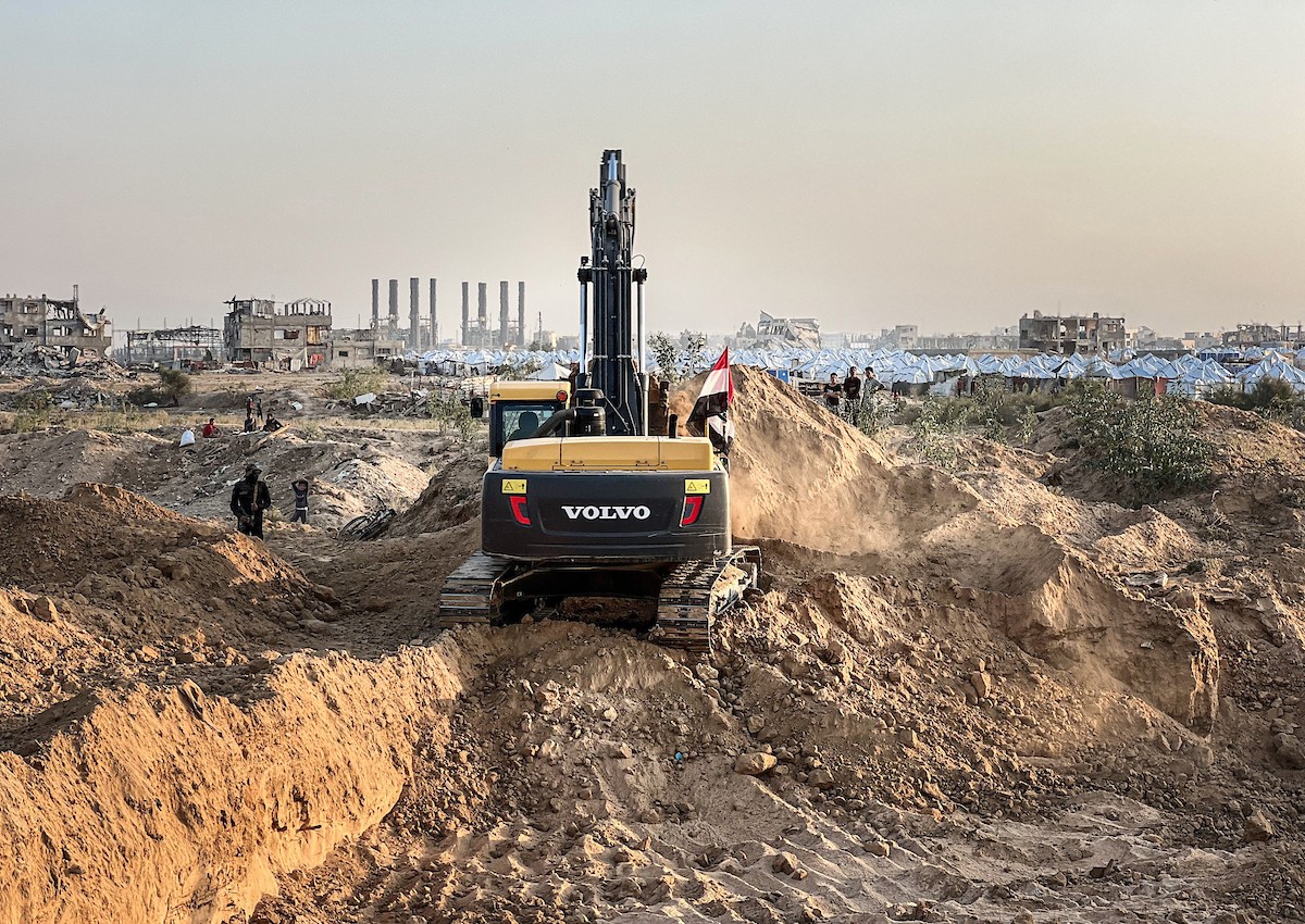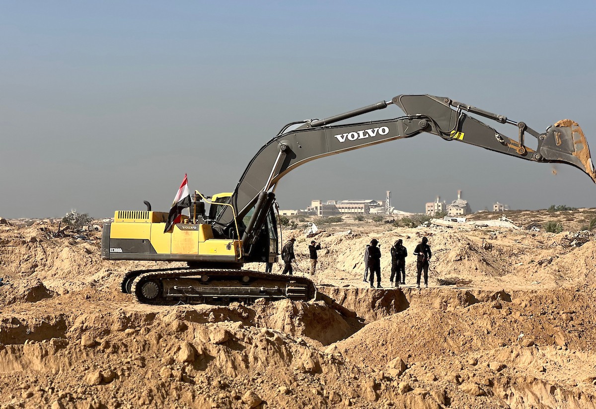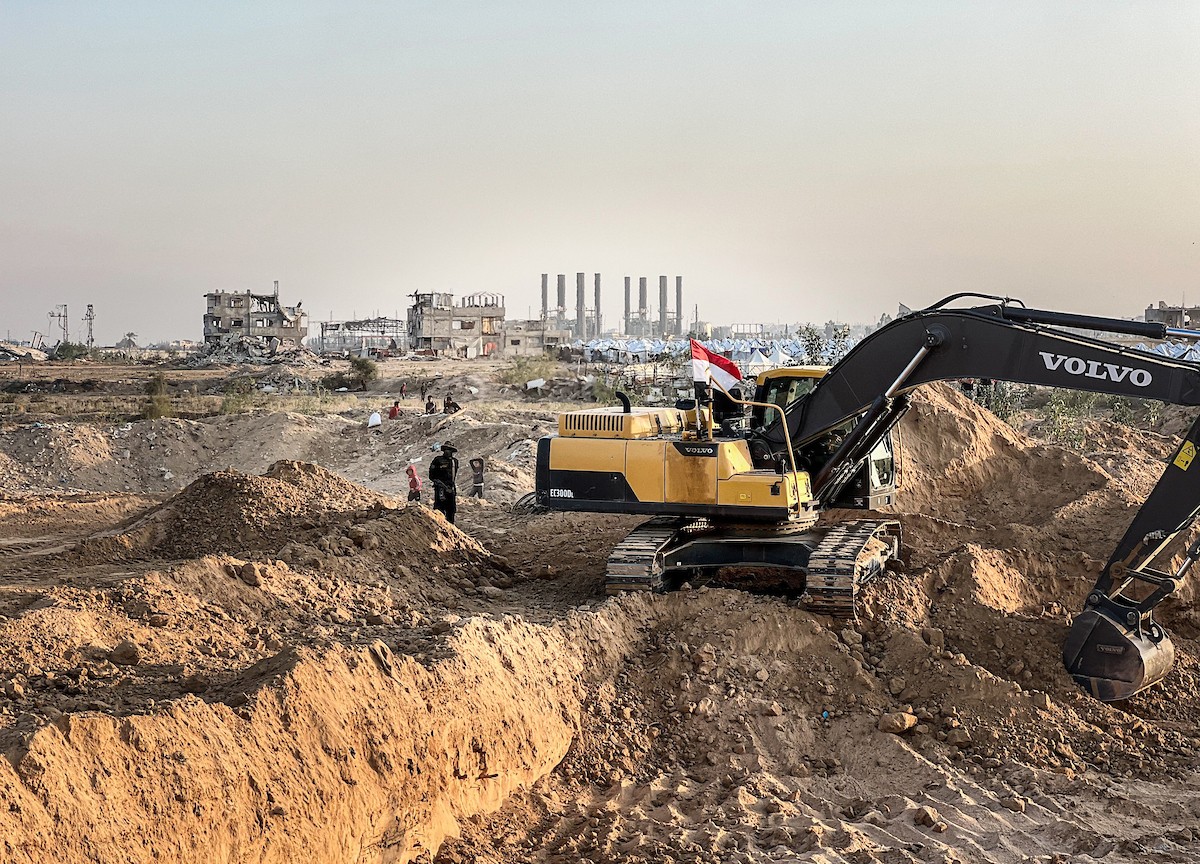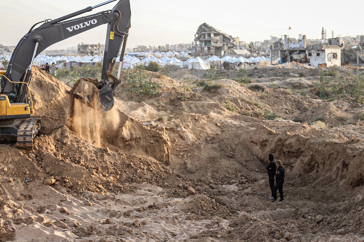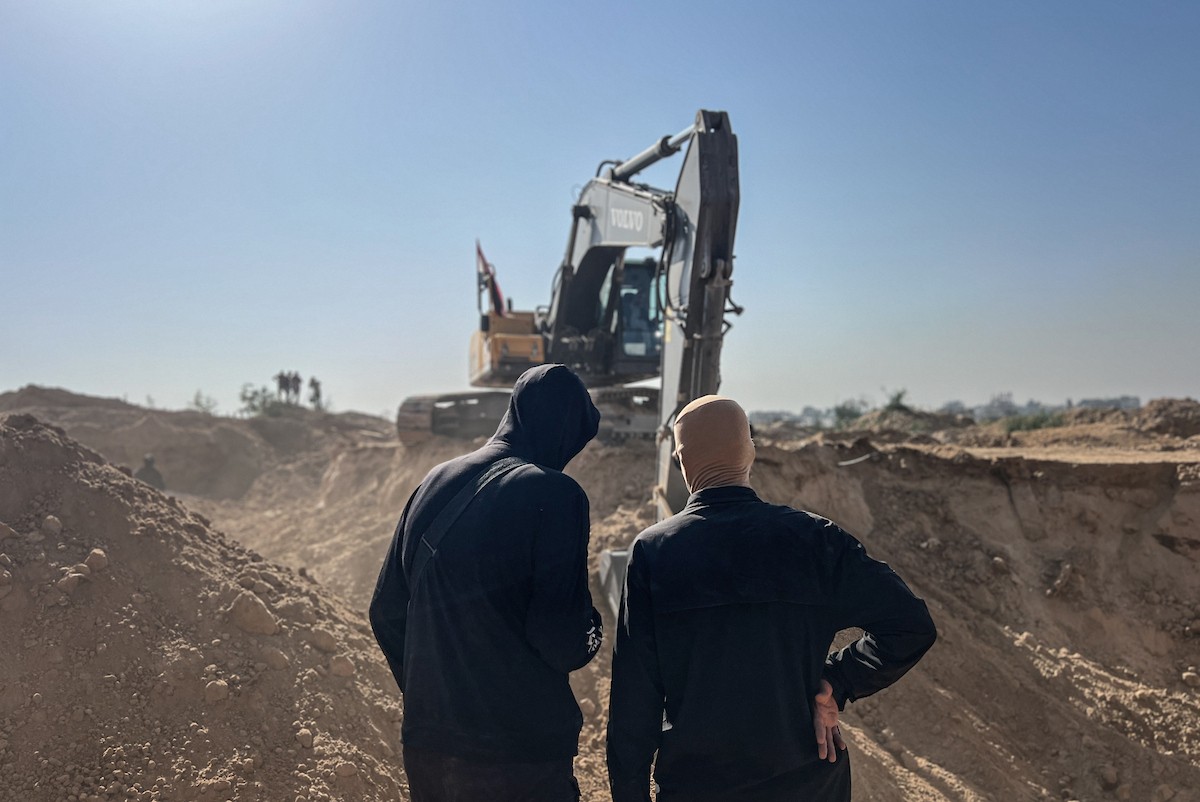 عناصر مسلحة من سرايا القدس وفرق تابعة للوفد المصري تعمل على البحث تحت الأنقاض عن رفات رهينة إسرائيلي في مخيم النصيرات وسط القطاع 20 نوفمبر 2025. تصوير: بلال أبو عامر