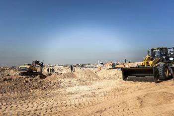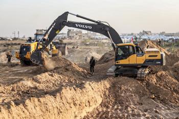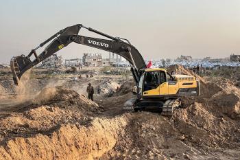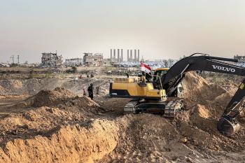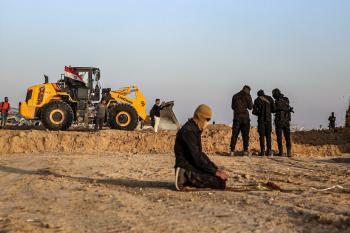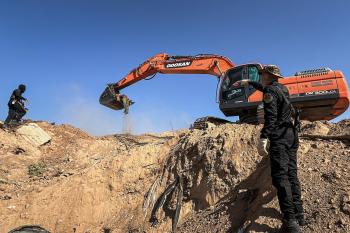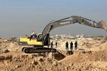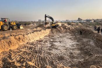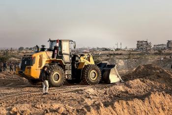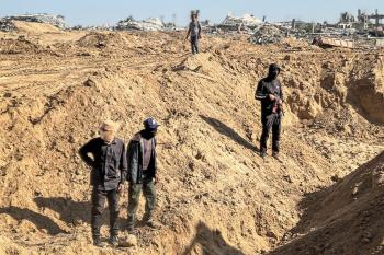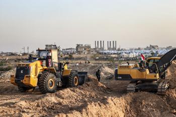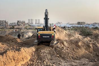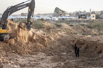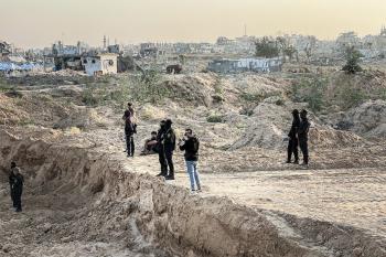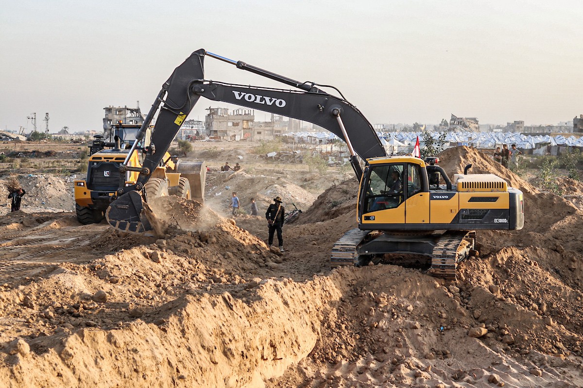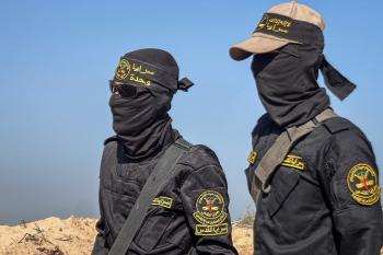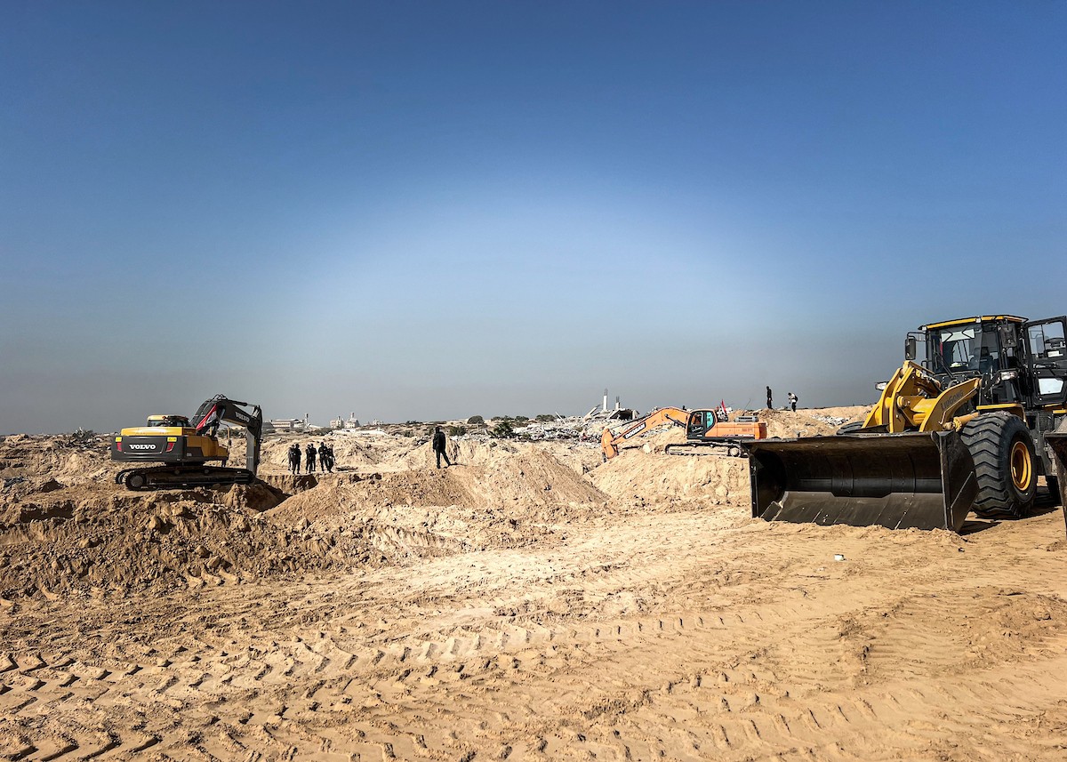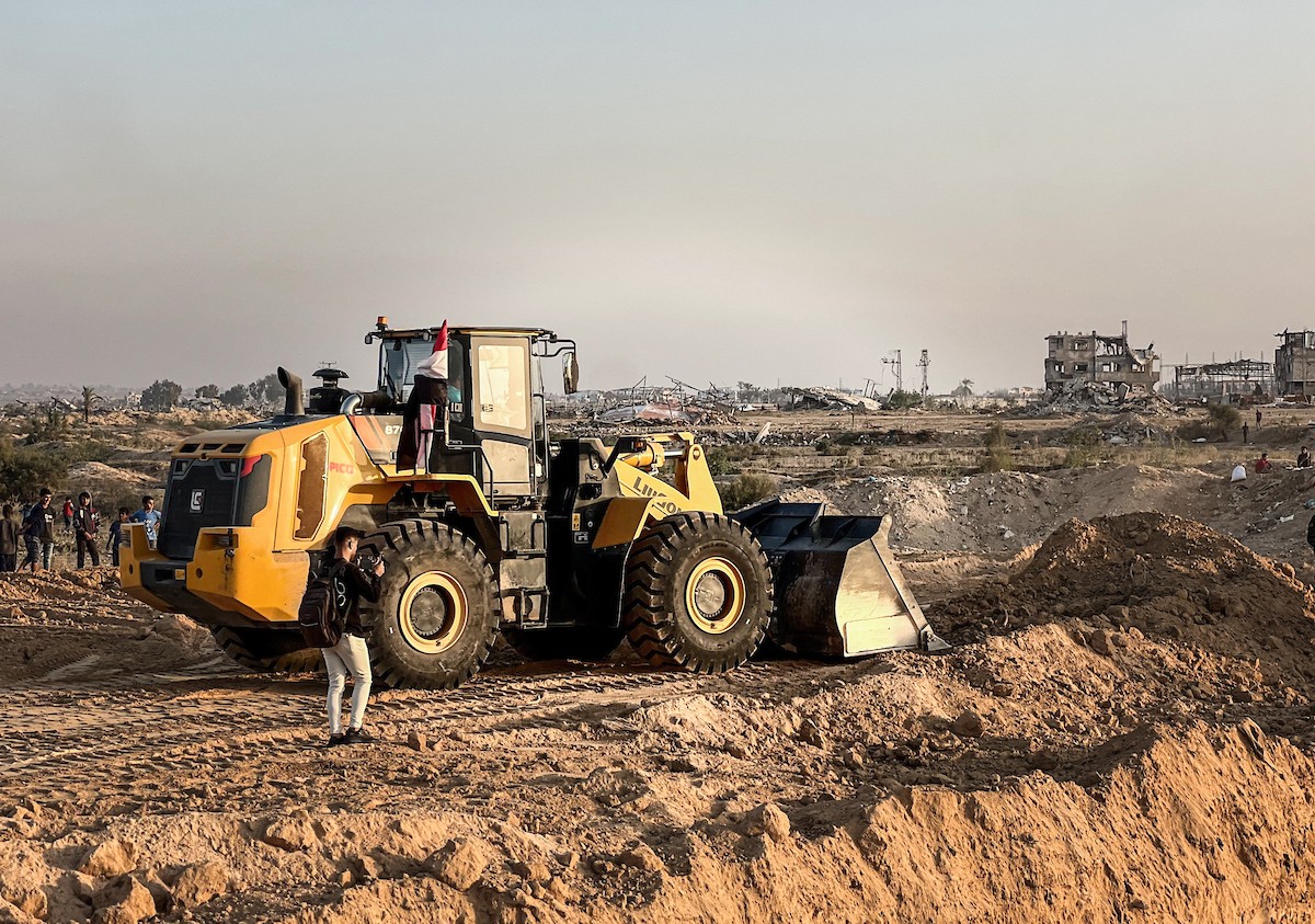 عناصر مسلحة من سرايا القدس وفرق تابعة للوفد المصري تعمل على البحث تحت الأنقاض عن رفات رهينة إسرائيلي في مخيم النصيرات وسط القطاع 20 نوفمبر 2025. تصوير: بلال أبو عامر