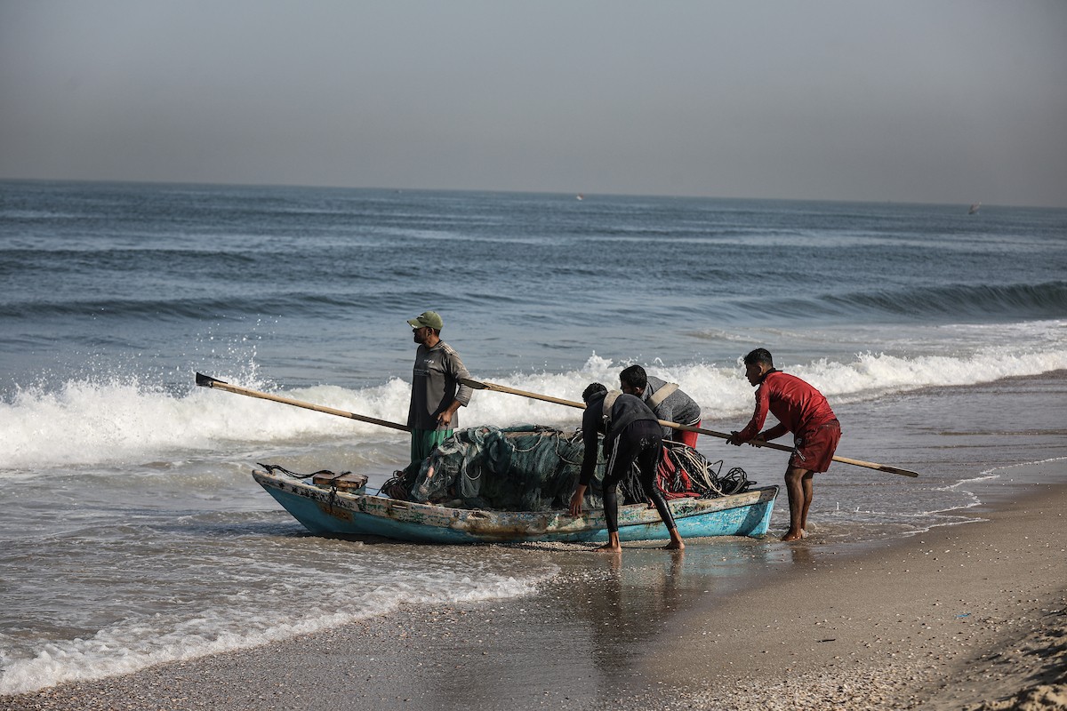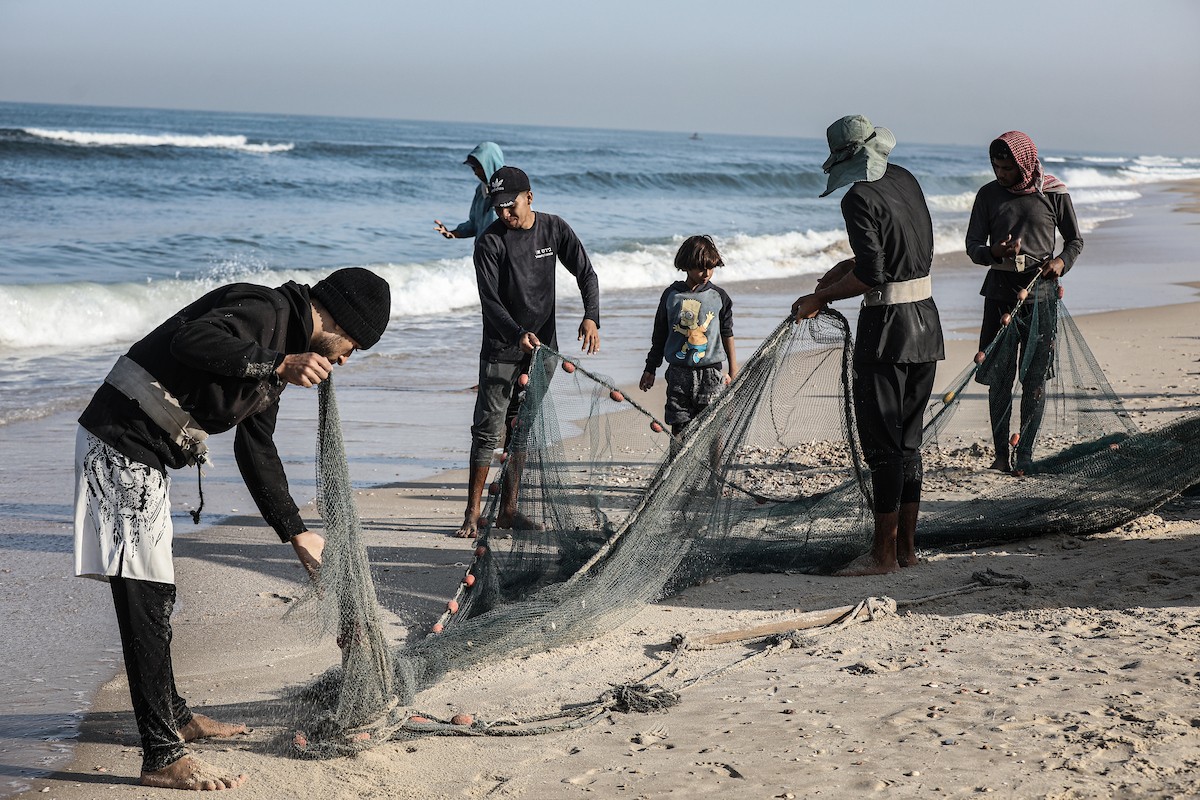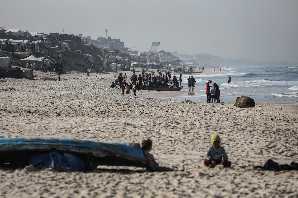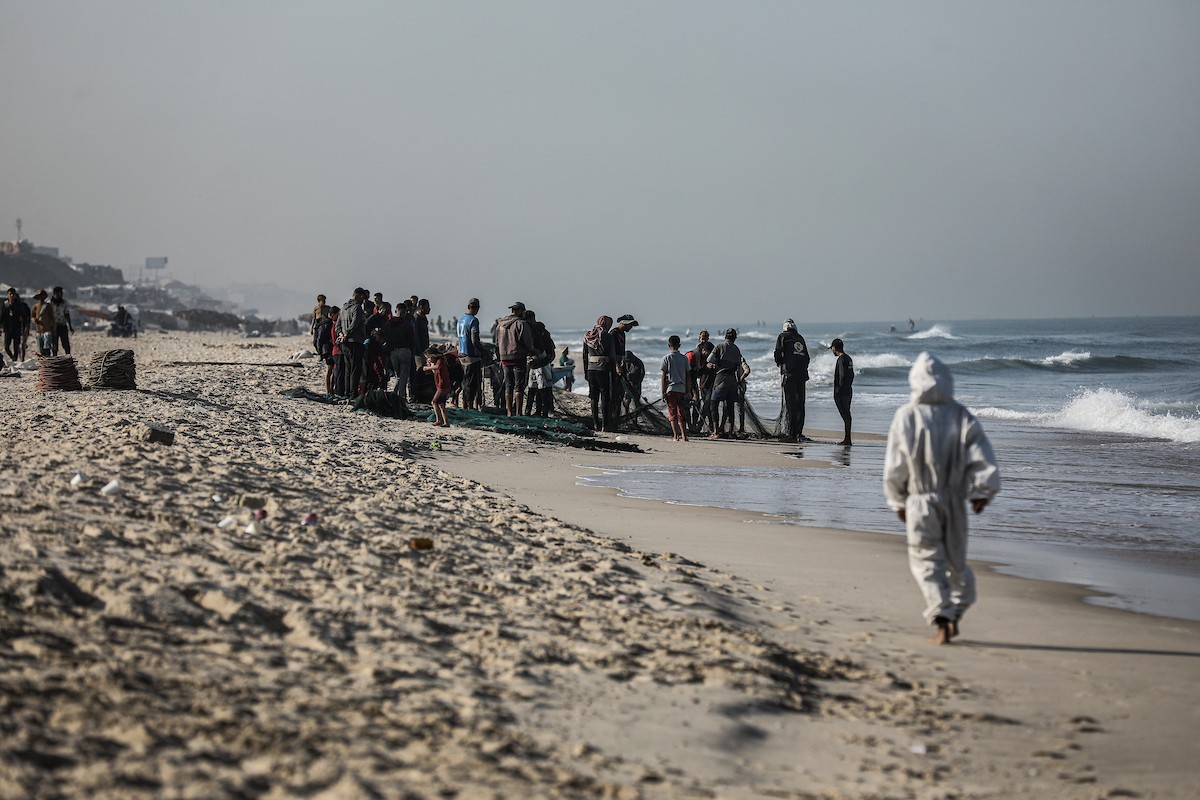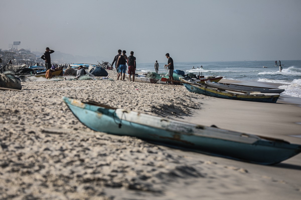 صيادون فلسطينيون نازحون على شاطئ دير البلح وسط قطاع غزة 20 نوفمبر/تشرين الثاني 2025. تصوير: رمزي أبو عامر