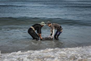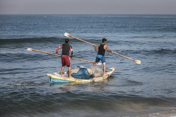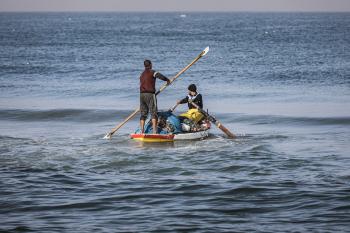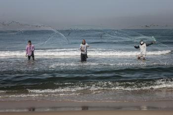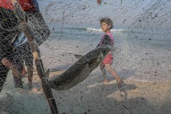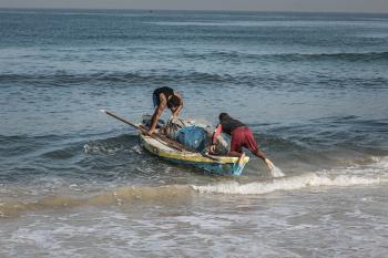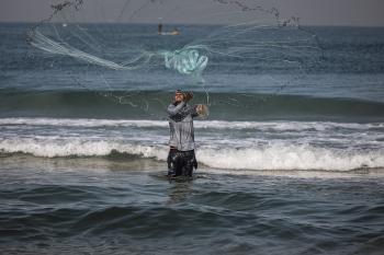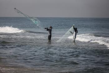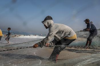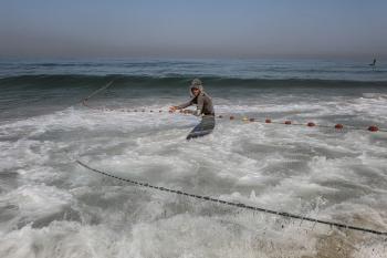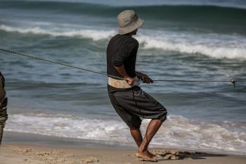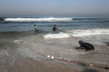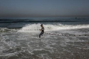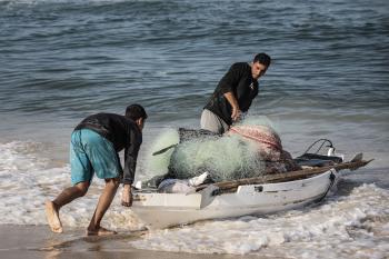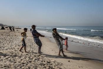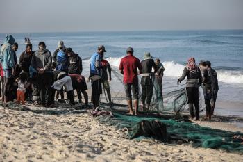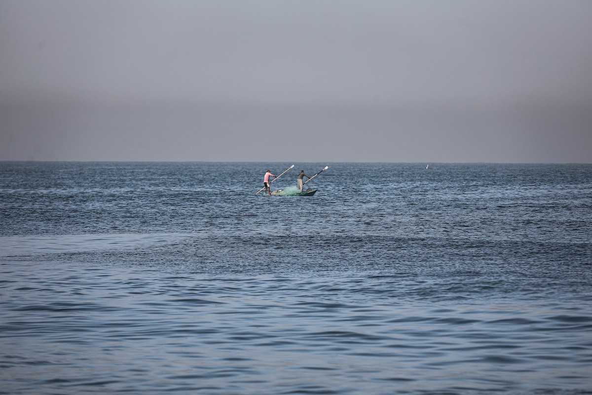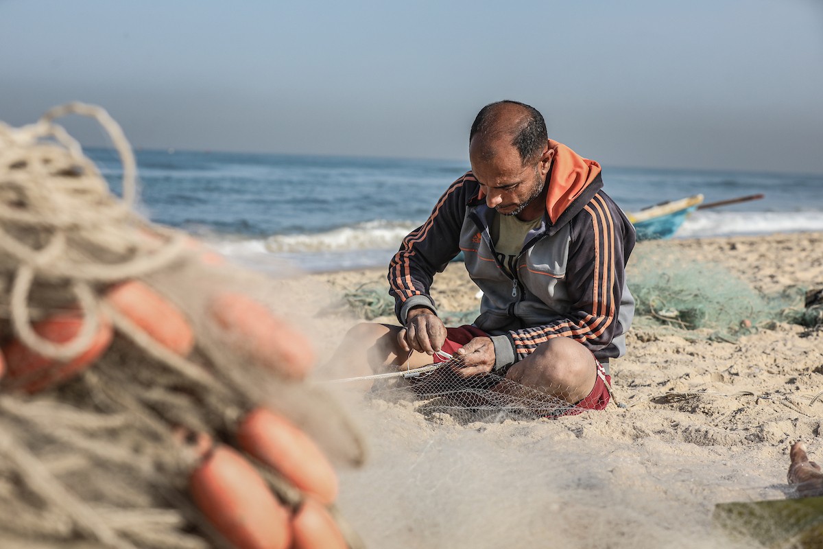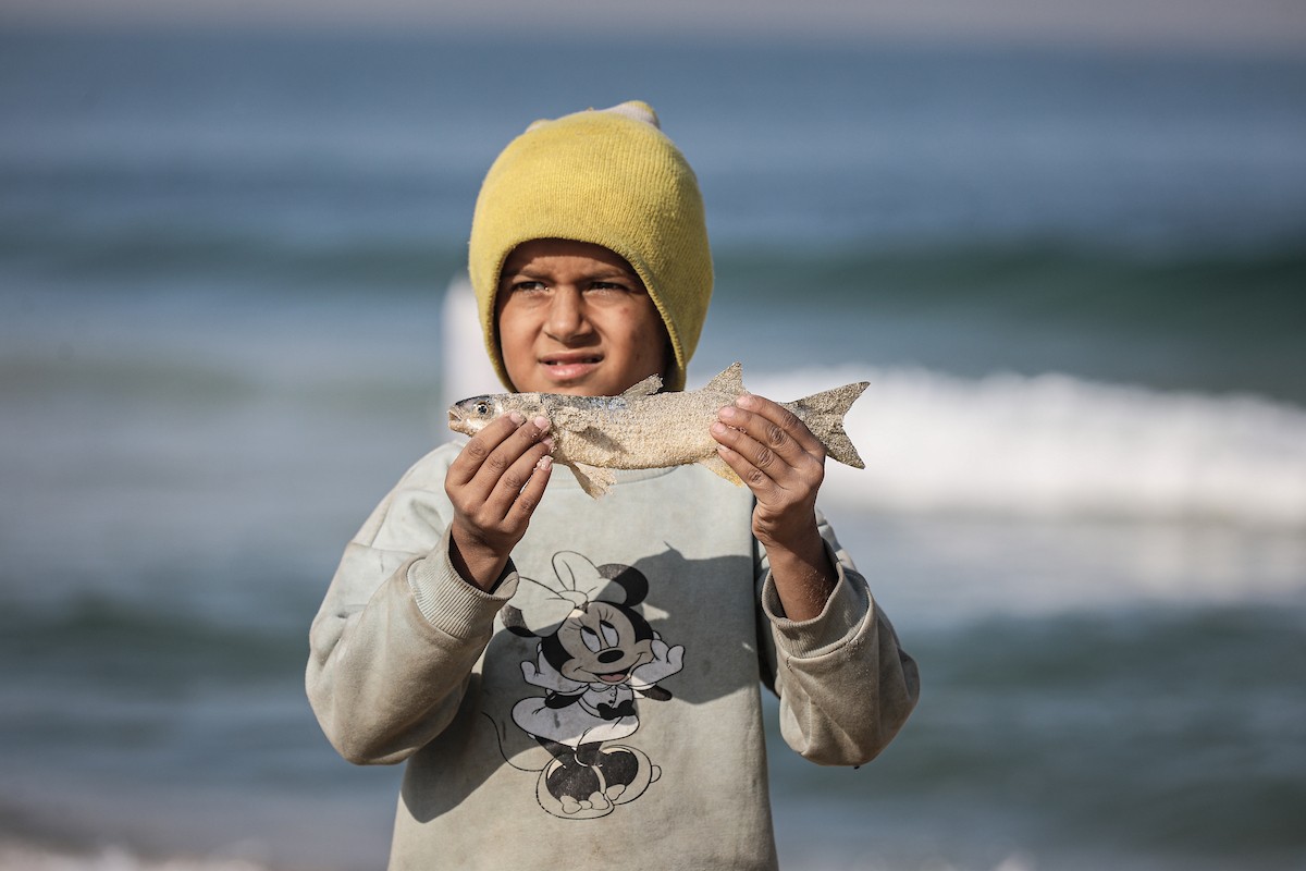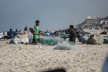 صيادون فلسطينيون نازحون على شاطئ دير البلح وسط قطاع غزة 20 نوفمبر/تشرين الثاني 2025. تصوير: رمزي أبو عامر