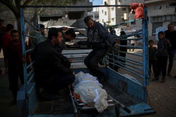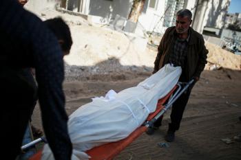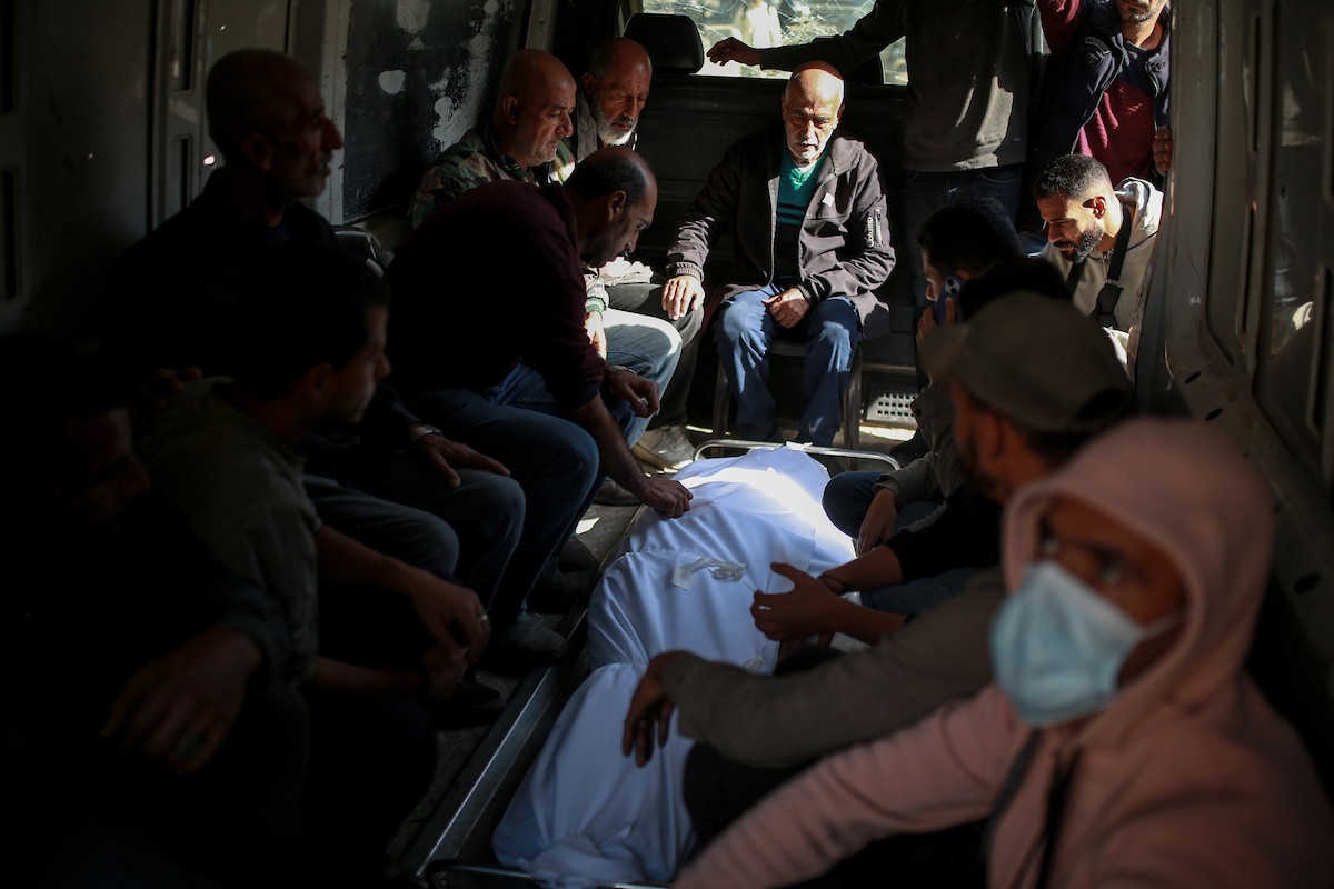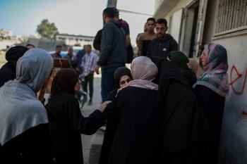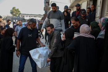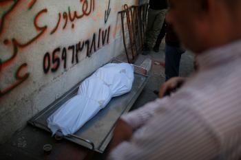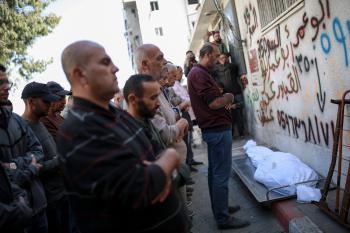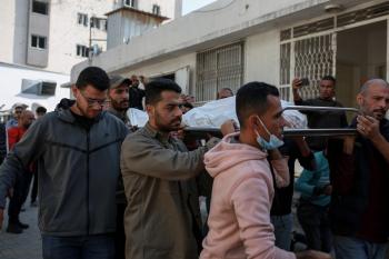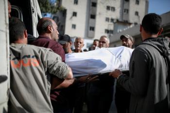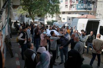 مراسم الجنازة التي أُقيمت في مستشفى الشفاء بمدينة غزة