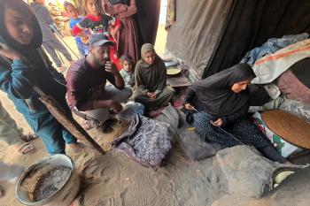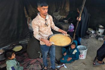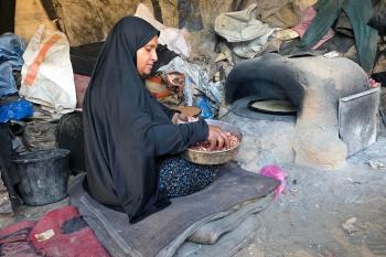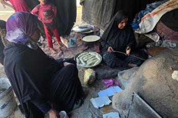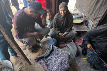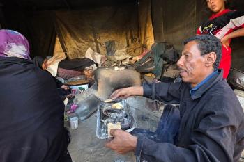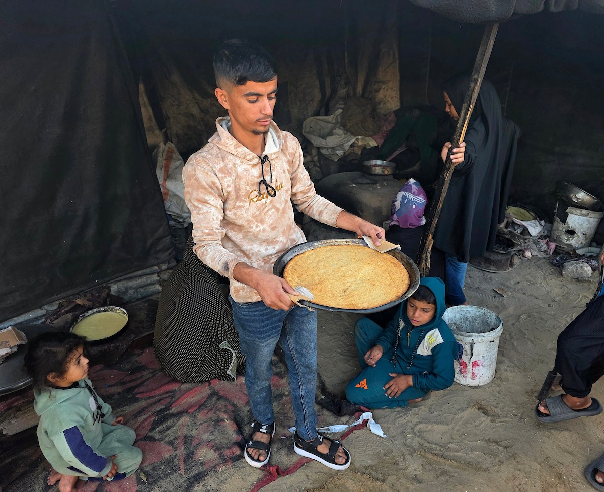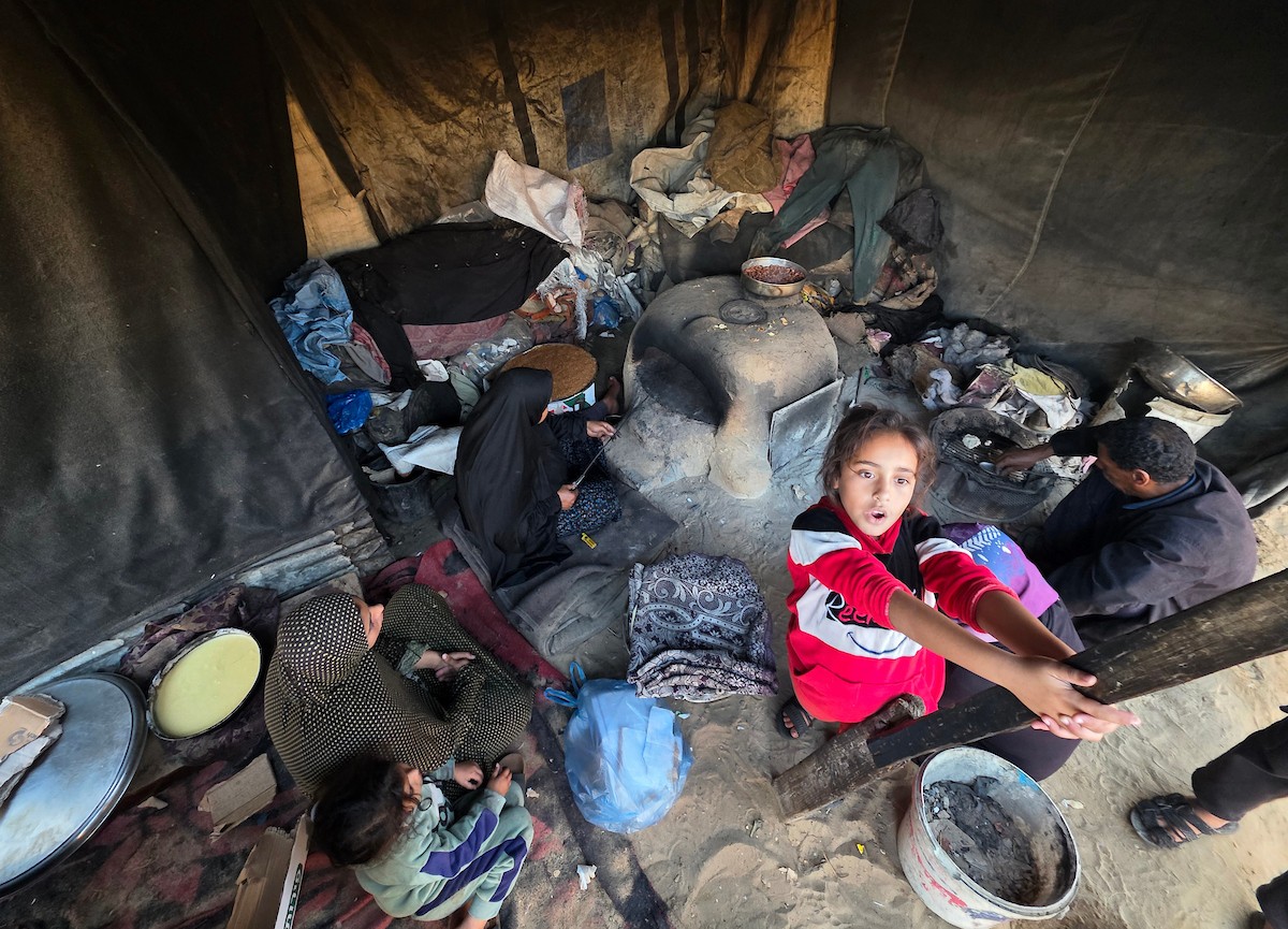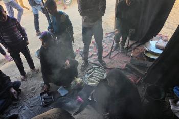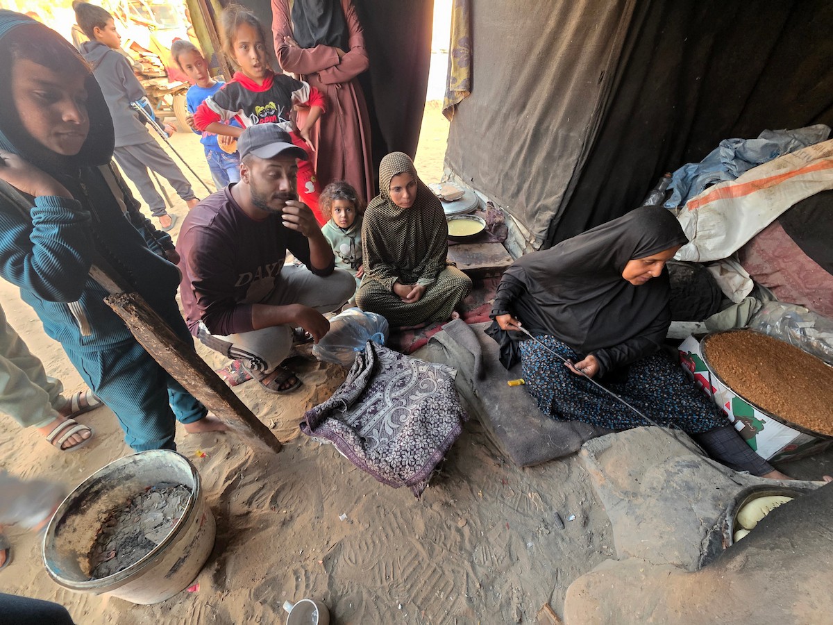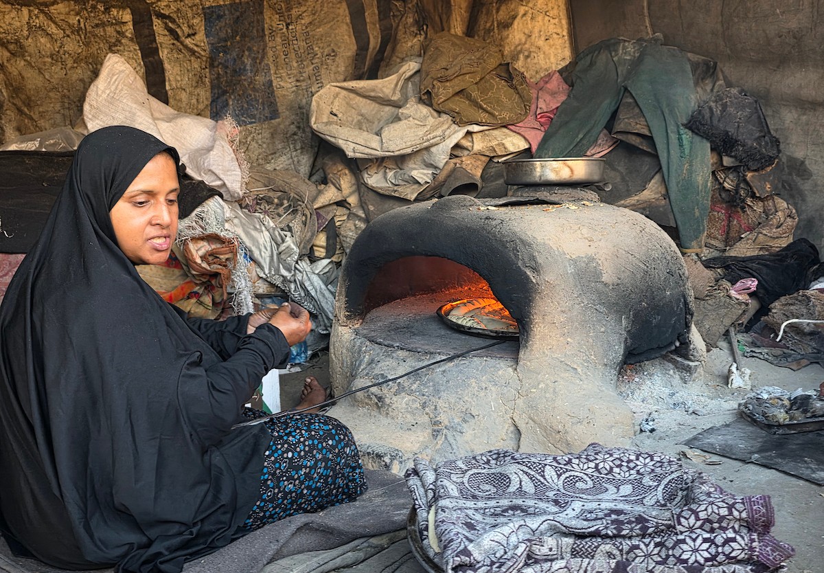 يتجمع فلسطينيون حول أفران طينية مؤقتة لطهي الطعام في قطاع غزة، بعد عشرة أسابيع من وقف إطلاق النار، في ظل شحّ غاز الطهي بسبب القيود الإسرائيلية على دخوله إلى القطاع. 2 ديسمبر/كانون الأول 2025 .تصوير: طارق محمد