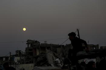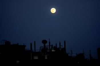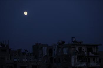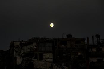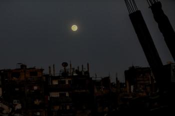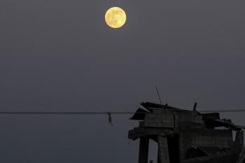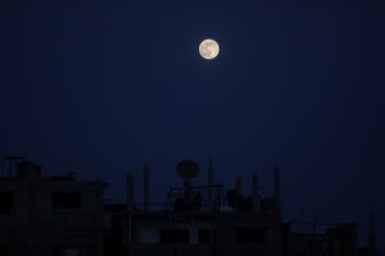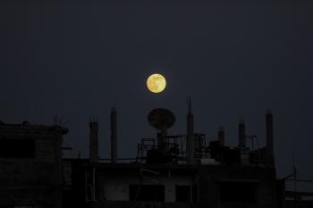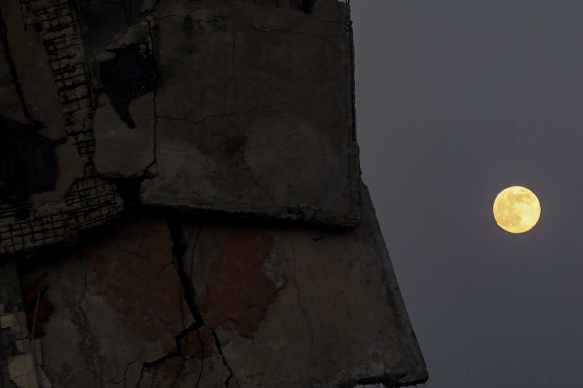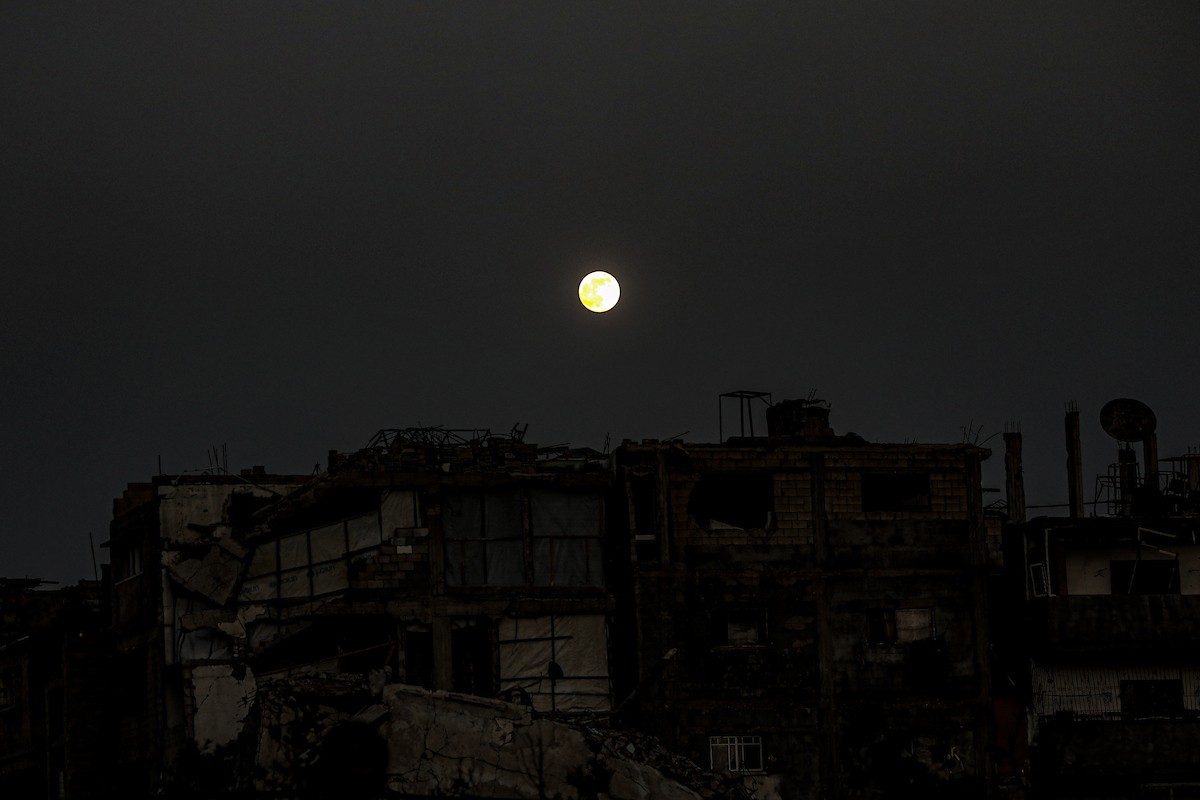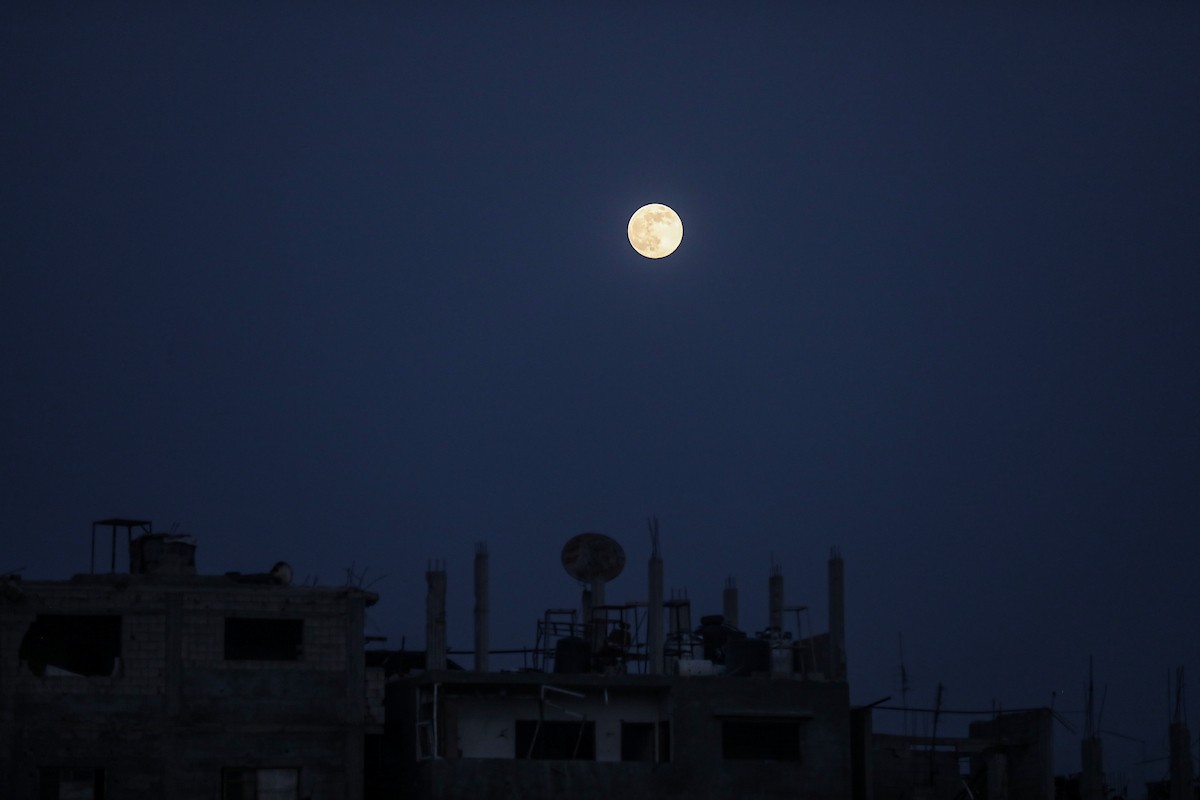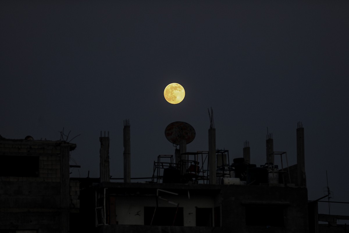 القمر البارد للغاية، آخر قمر عملاق لعام 2025، يظهر فوق سماء مدينة غزة، 4 ديسمبر/كانون الأول 2025. تصوير: عمر أشتوي