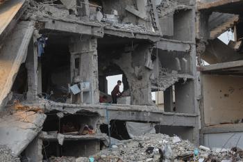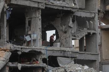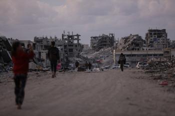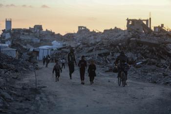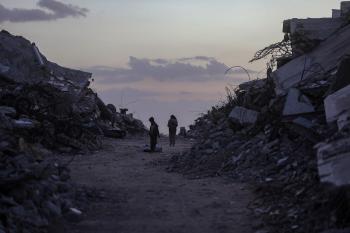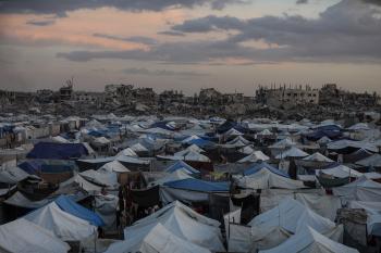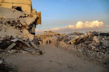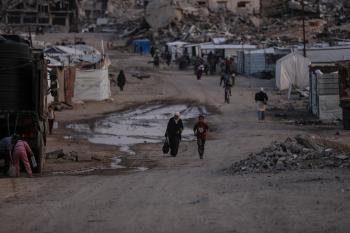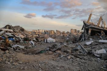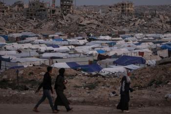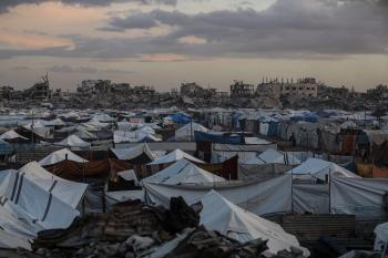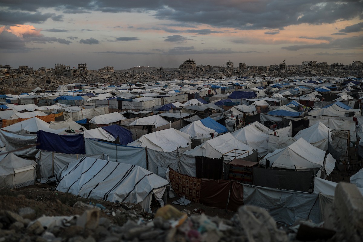 خيام النزوح المنتشرة وسط الدمار في حي الزيتون