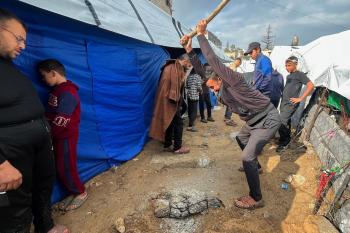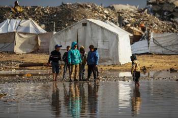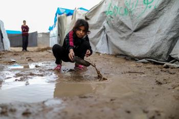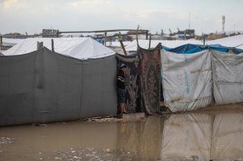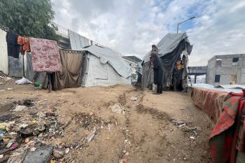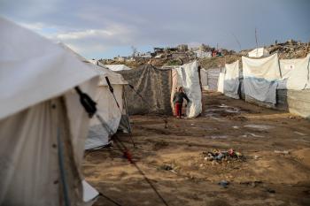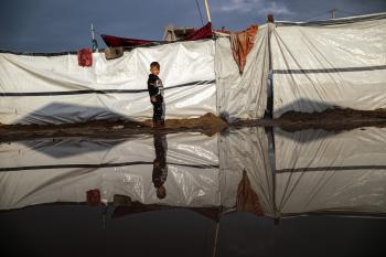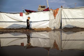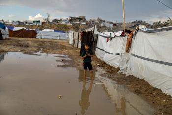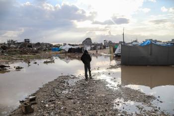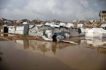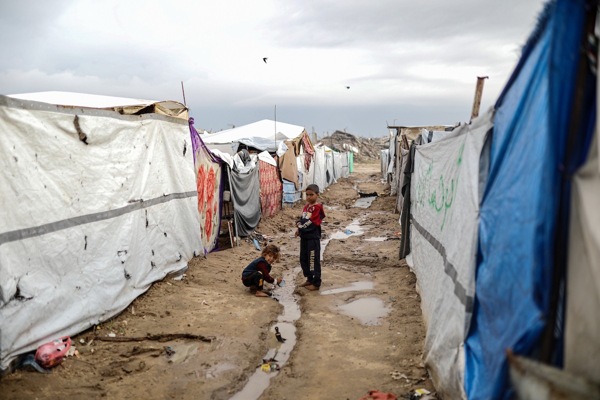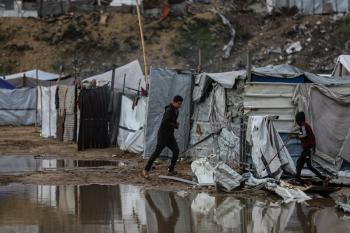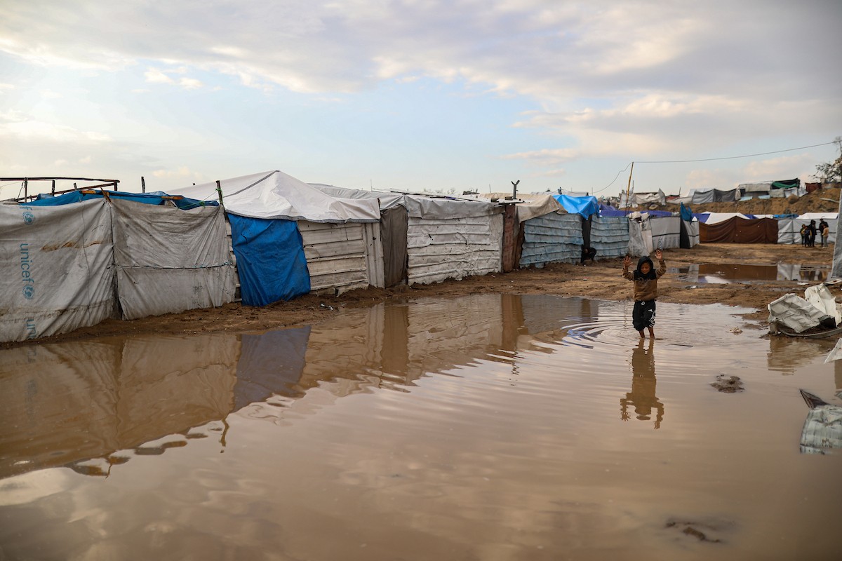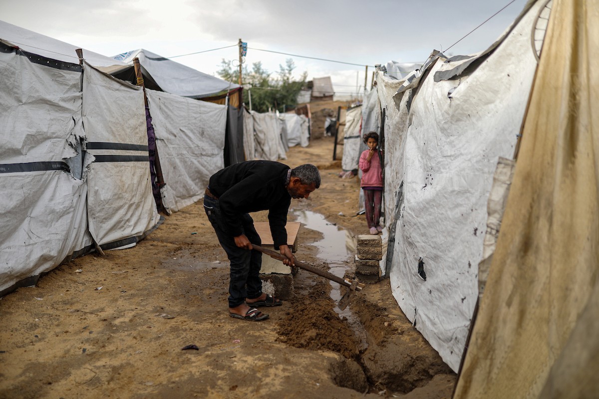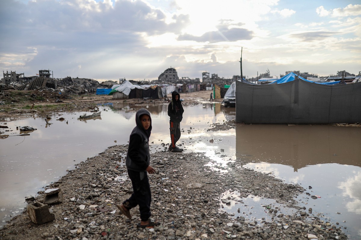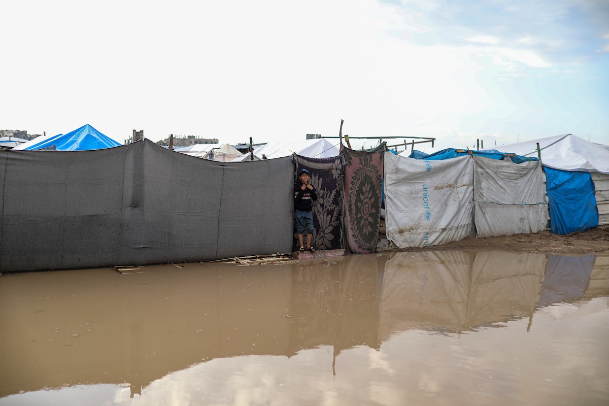 يُعاني النازحون الفلسطينيون من الفيضانات التي اجتاحت خيامهم إثر هطول أمطار غزيرة في غزة، 11 ديسمبر/كانون الأول 2025.
