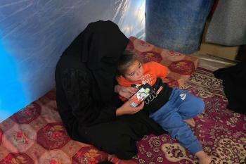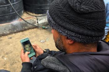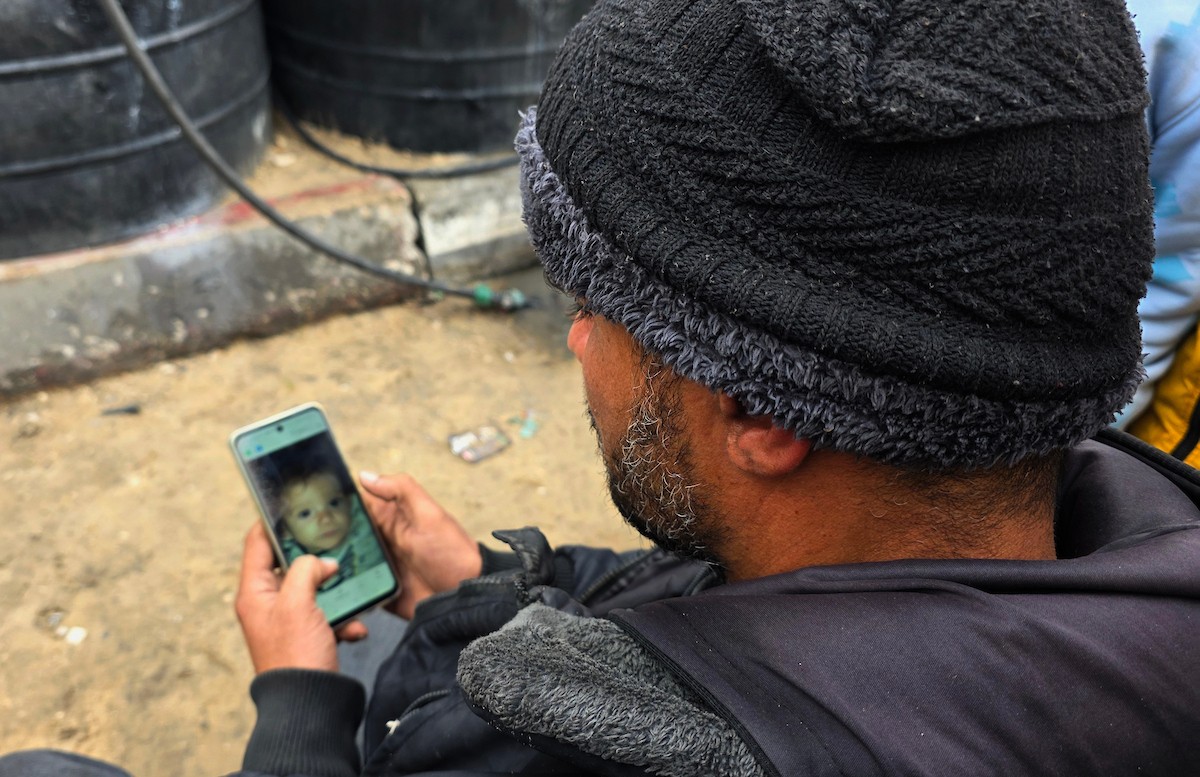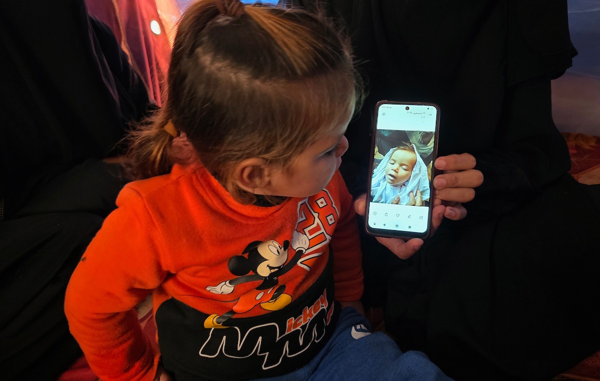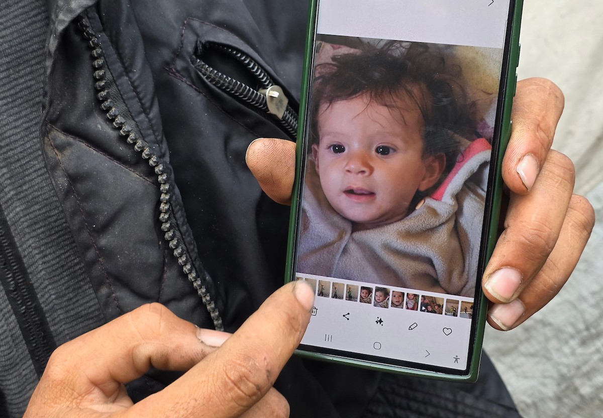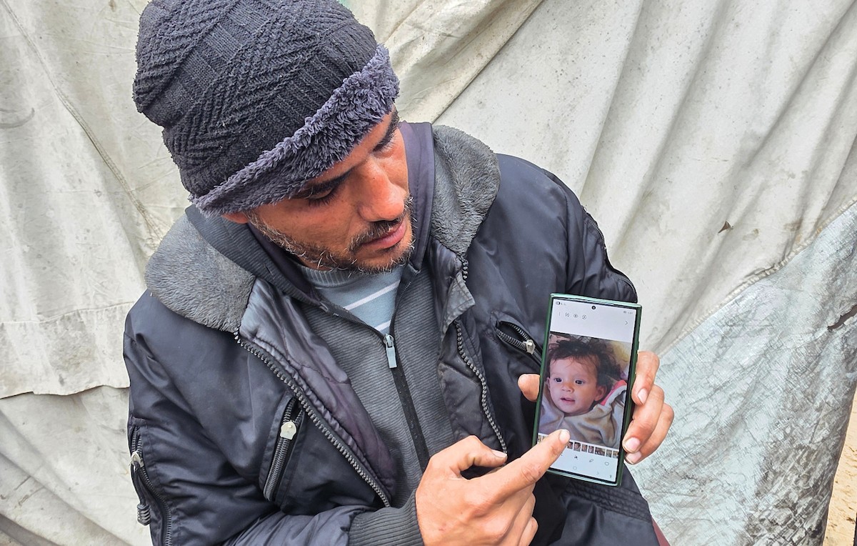 عائلة الرضيعة رهف أبو جزر تروي الساعات الأخيرة من حياتها قبل وفاتها بعد أن عانت من البرد القارس والأمطار الغزيرة في خيمة لجأوا إليها في خان يونس 12ديسمبر/كانون الأول 2025. صور: طارق محمد