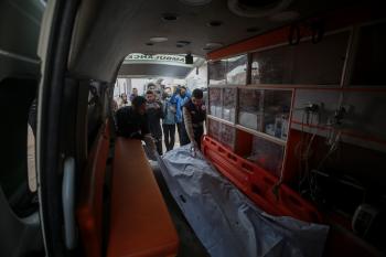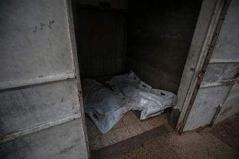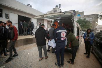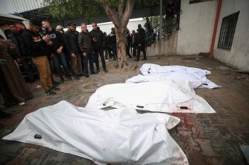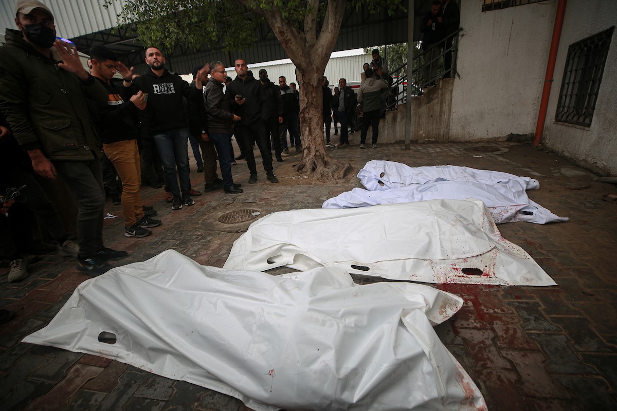 وصول عدد من الجثامين إلى مستشفى الشفاء في غزة عقب غارة جوية إسرائيلية استهدفت سيارة غرب مدينة غزة، في 13 ديسمبر/كانون الأول 2025.صور: عمر أشتوي