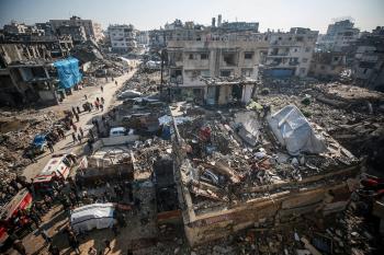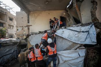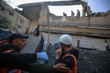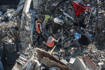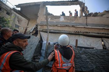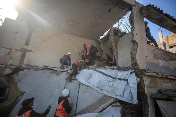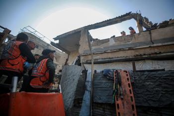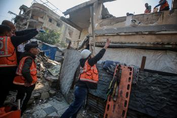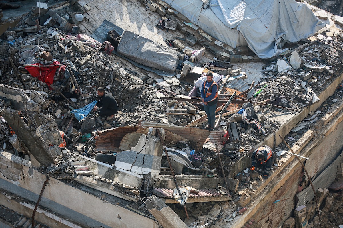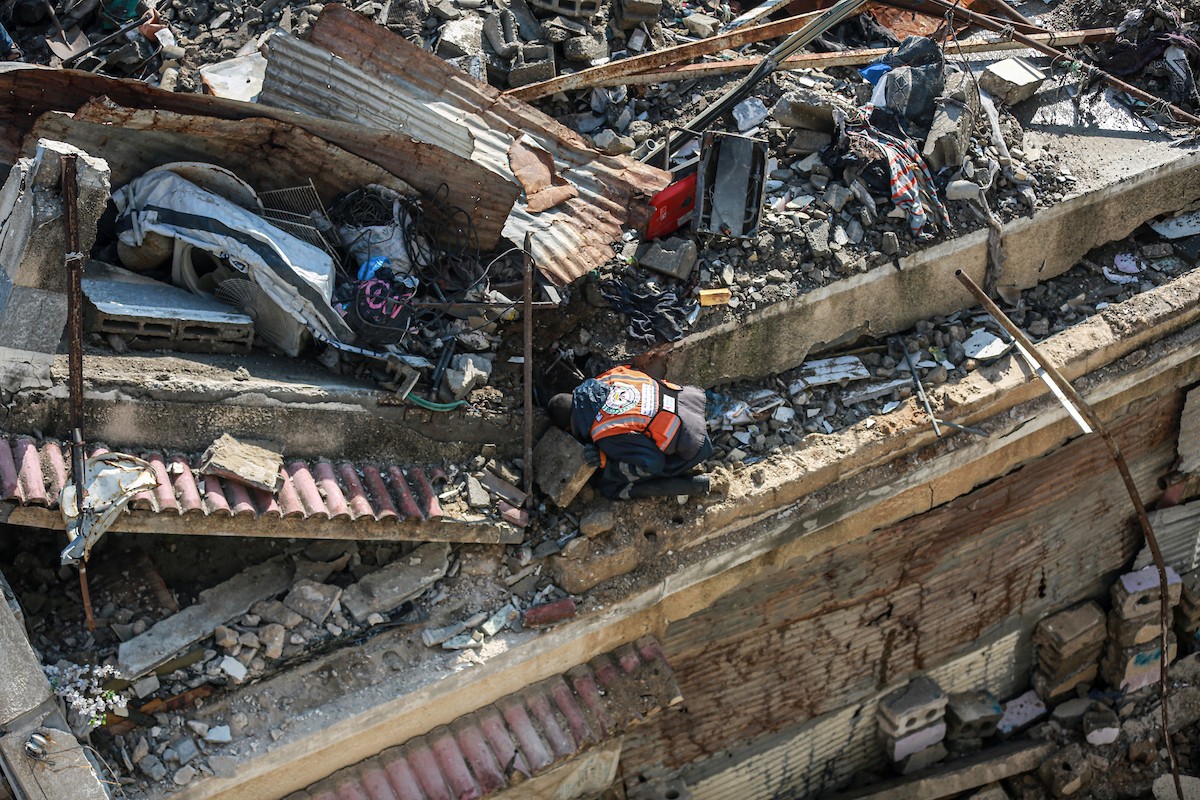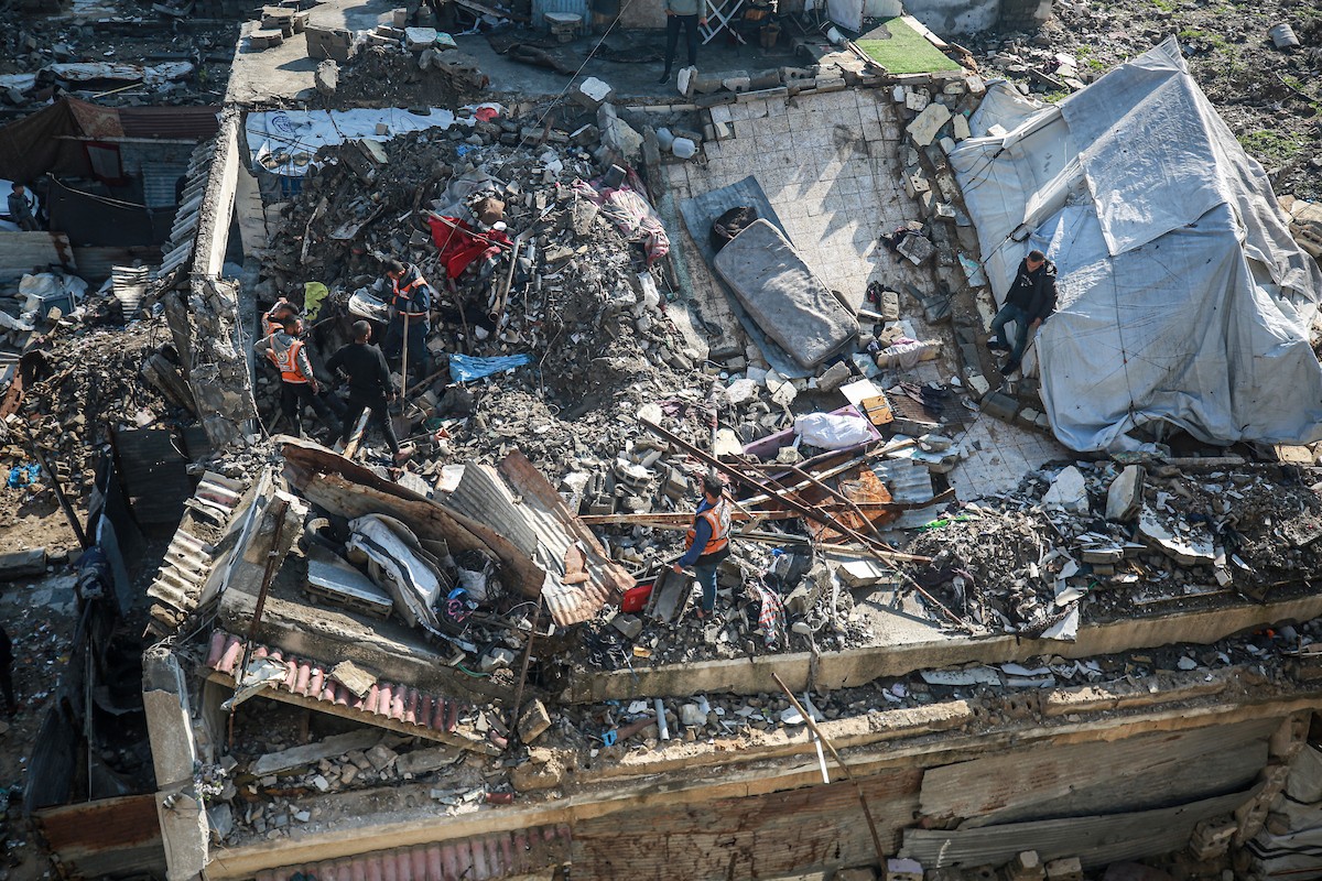 عمليات بحث وإنقاذ في مبنى سكني انهار في مخيم الشاطئ، مدينة غزة، 16 ديسمبر/كانون الأول 2025. صور : عمر أشتوي