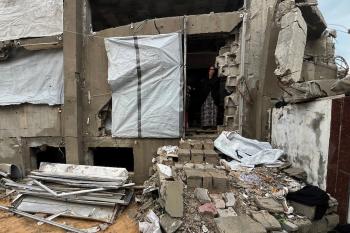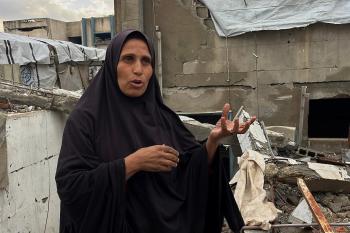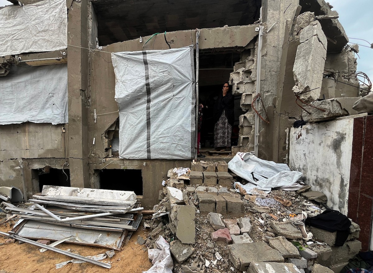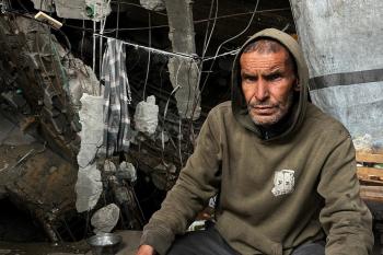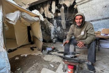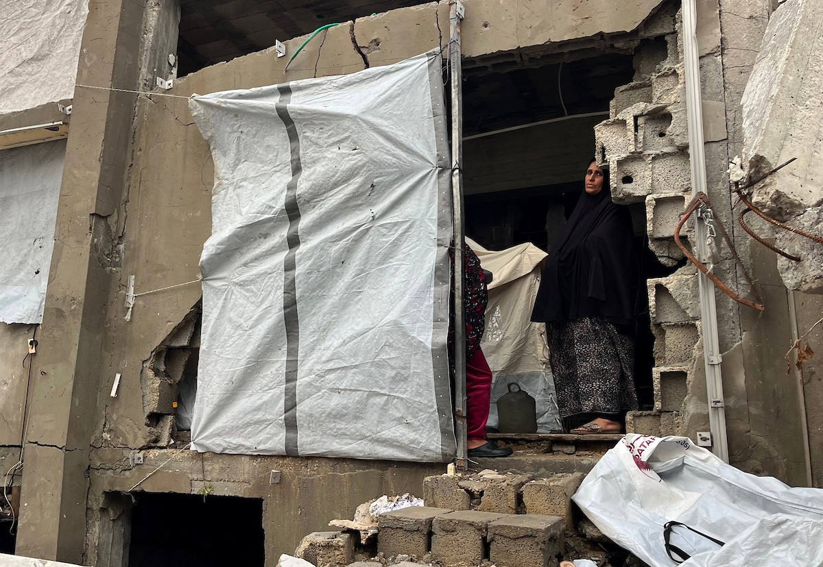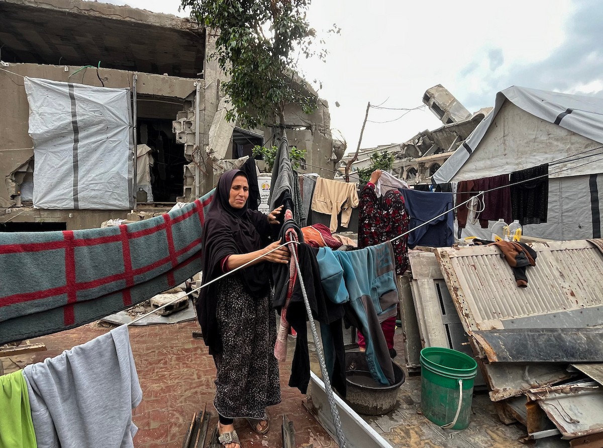 يعيش الزوجان الفلسطينيان أشرف وشادية السرساوي مع أحفادهما العشرة داخل خيمة مؤقتة نُصبت في مبنى غير آمن إنشائياً غرب مدينة غزة، وسط تدهور الأوضاع الإنسانية، 18 ديسمبر/كانون الأول 2025.صور: مطر الزاق