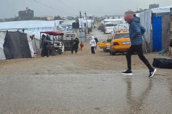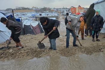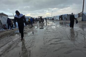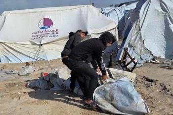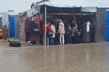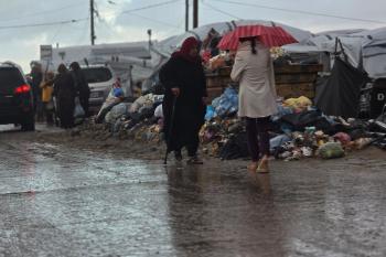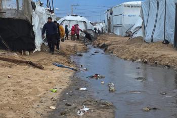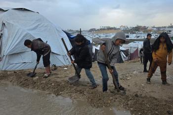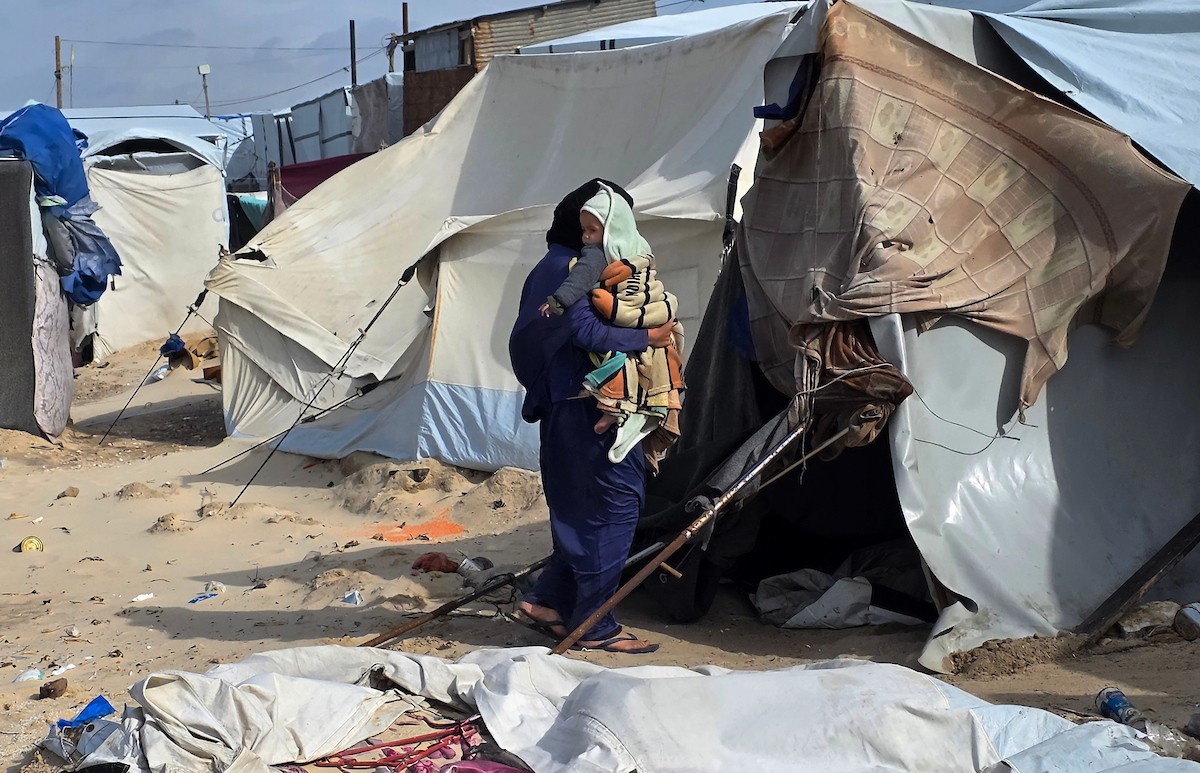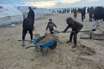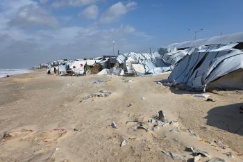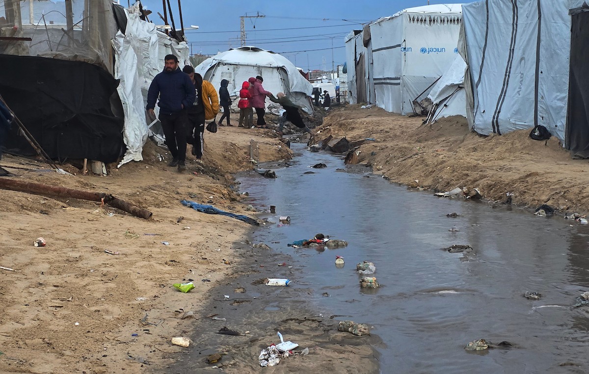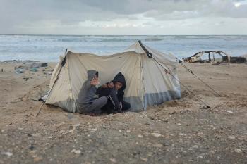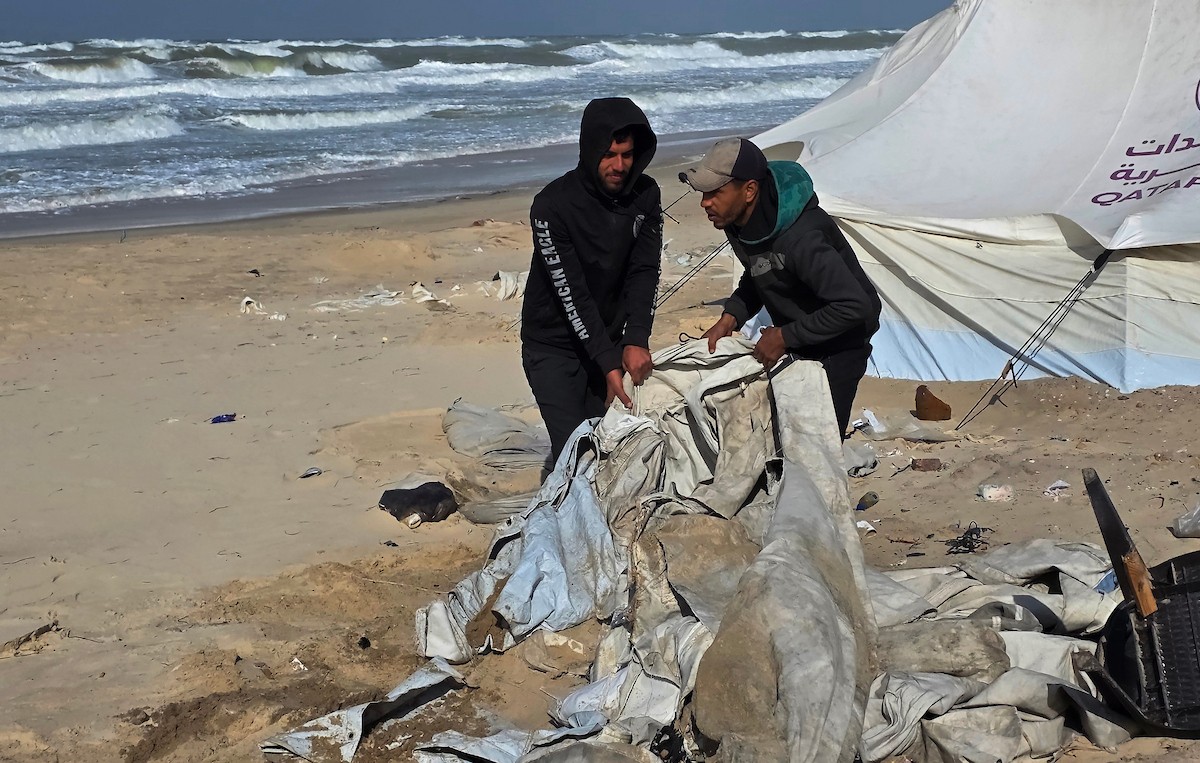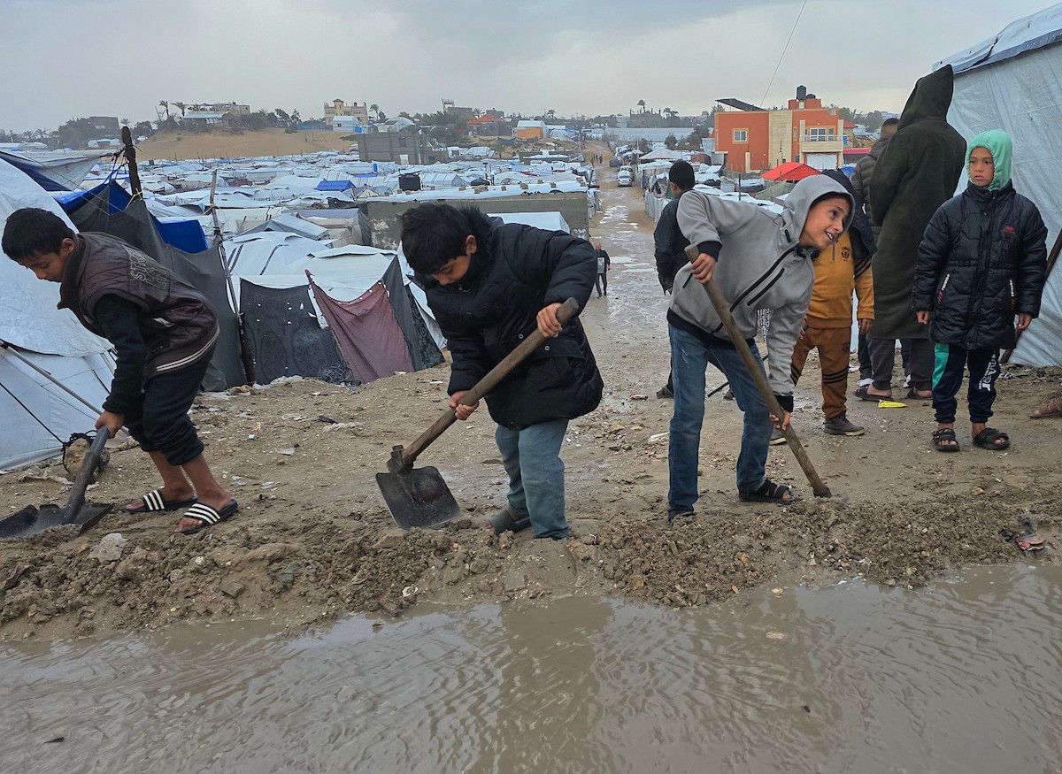 تواجه آلاف العائلات التي تعيش في خيام على شاطئ المواصي في خان يونس، جنوب قطاع غزة، مأساة إنسانية بعد أن جرفت مياه البحر خيامها، تاركةً الأطفال والنساء بلا مأوى.، 29 ديسمبر/كانون الأول 2025.صورة: طارق محمد