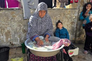 تهدد عمليات تشغيل الرافعات الإسرائيلية حياة العائلات الفلسطينية النازحة قرب مجمع ناصر الطبي والملاجئ المجاورة في خان يونس، جنوب قطاع غزة،1 يناير/كانون الثاني 2026. صورة: طارق محمد