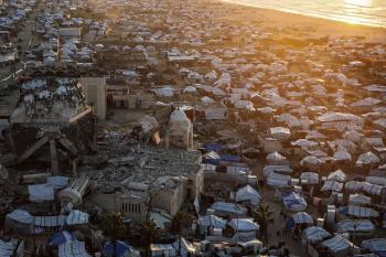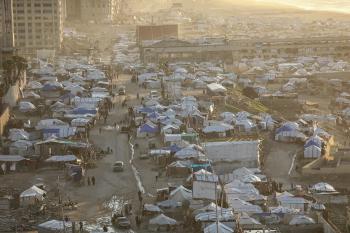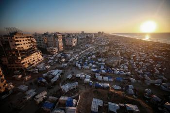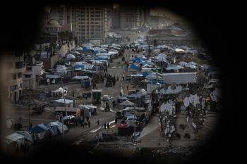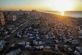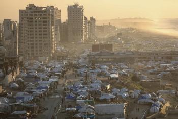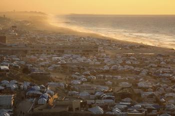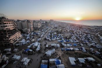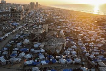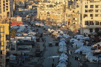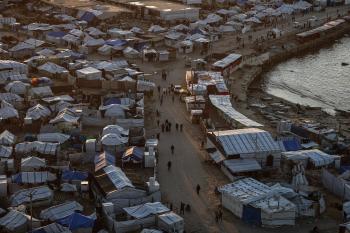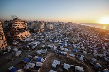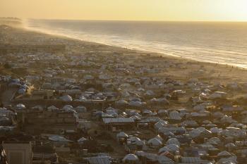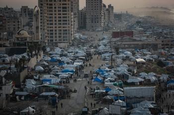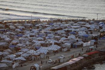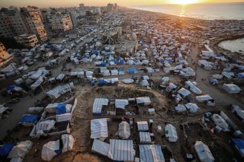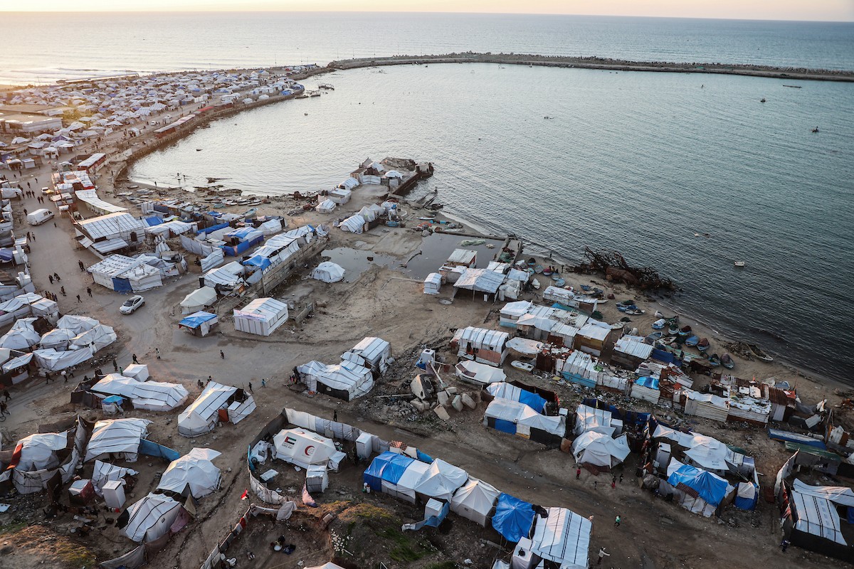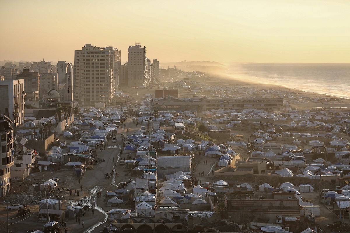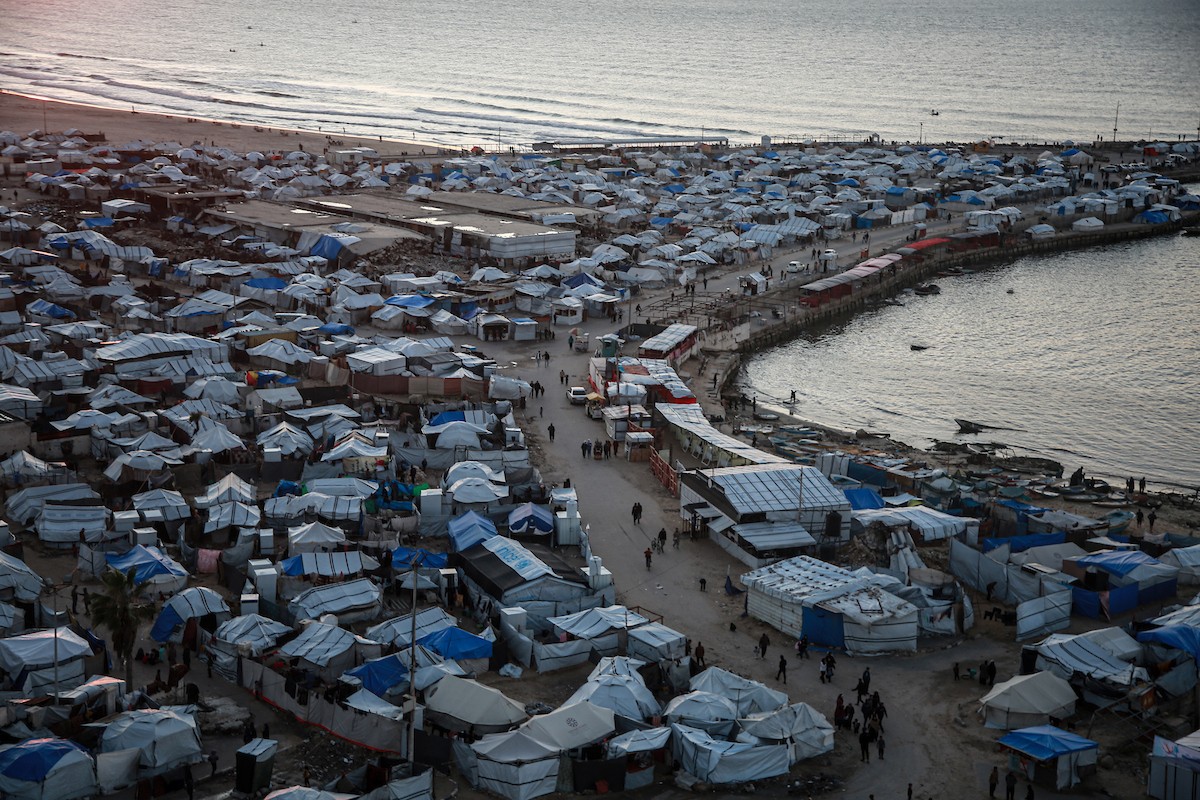 مشاهد عامة لخيام النازحين الفلسطينيين على شاطئ مدينة غزة. يعاني النازحون معاناة مضاعفة من ويلات النزاع وقسوة الأحوال الجوية، إذ لا توفر الخيام أي حماية من برد الشتاء القارس والأمطار الغزيرة، 3 يناير/كانون الثاني 2026. تصوير: عمر أشتوي