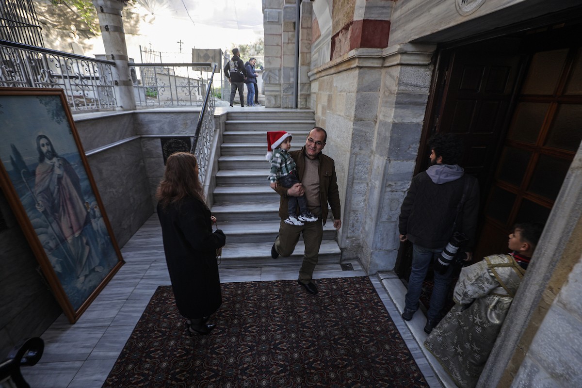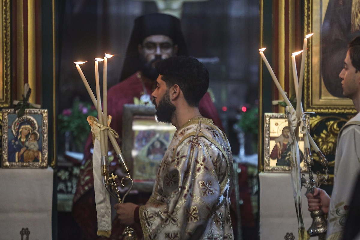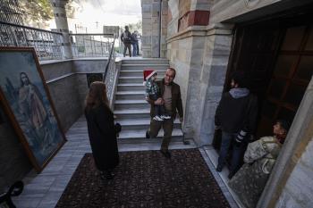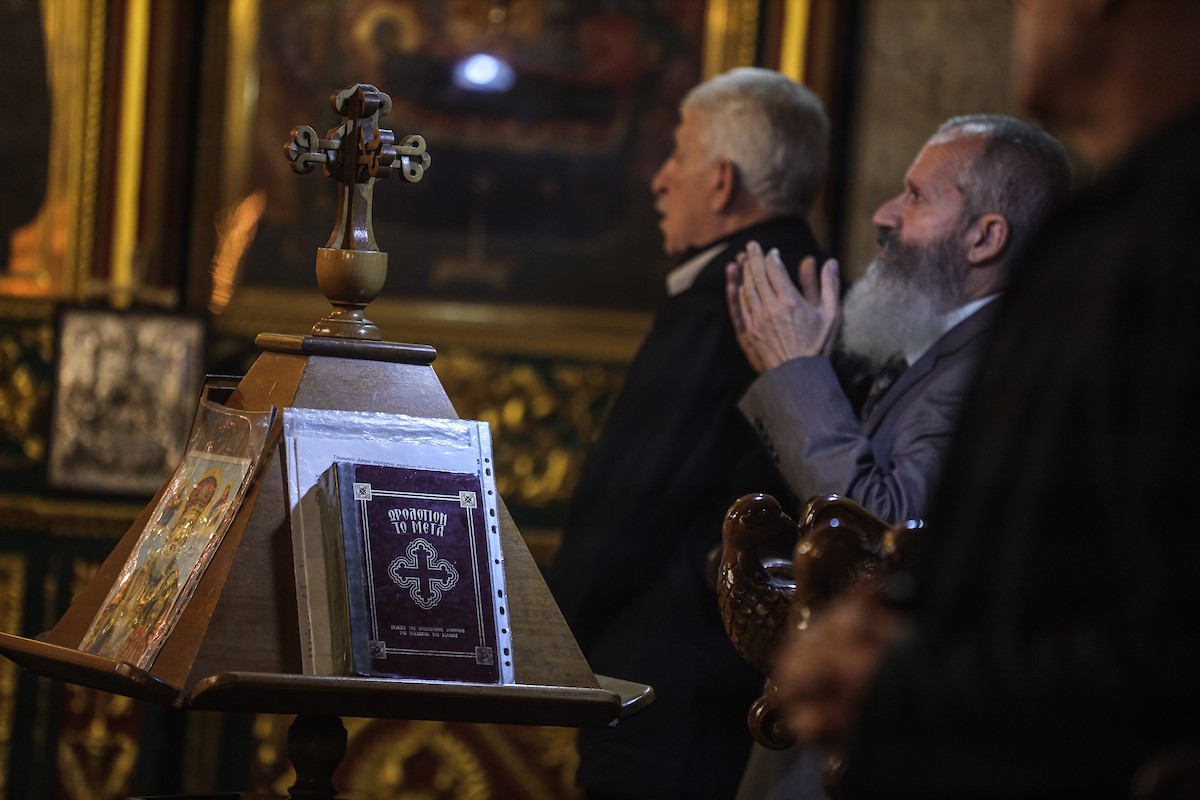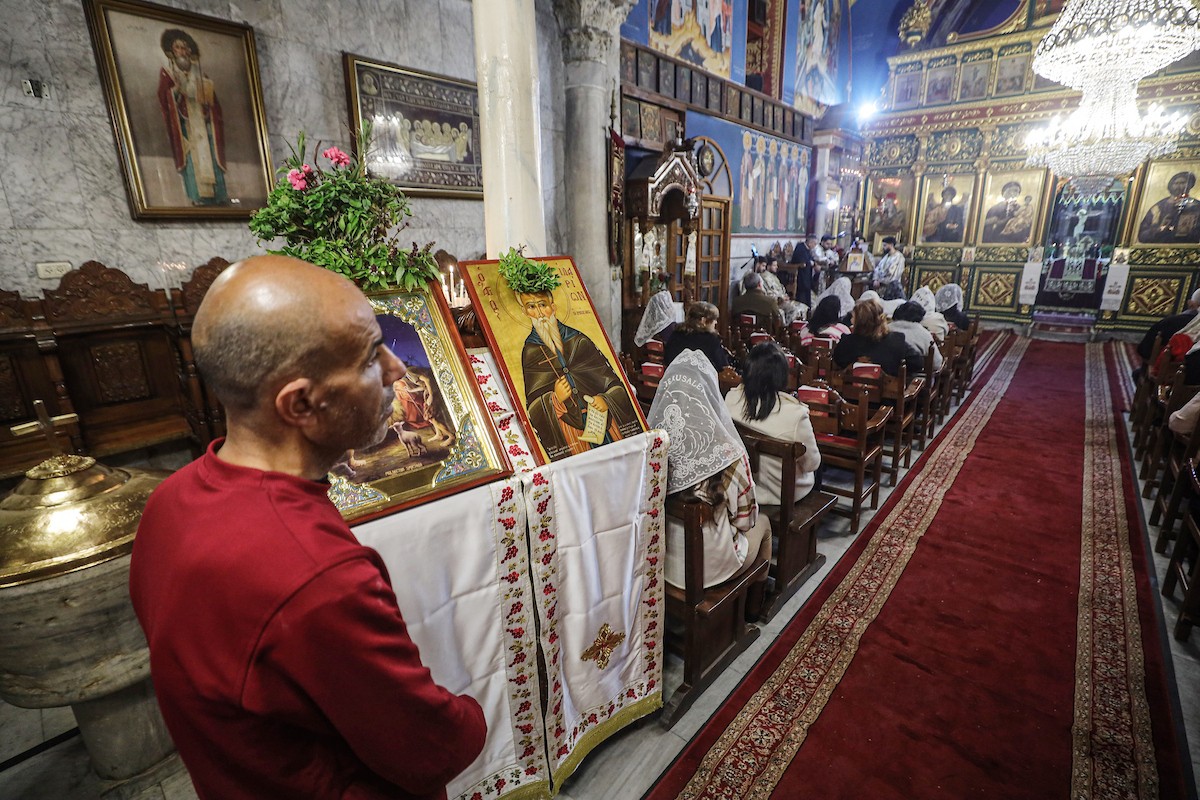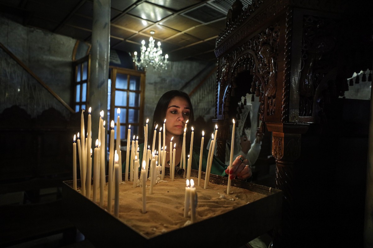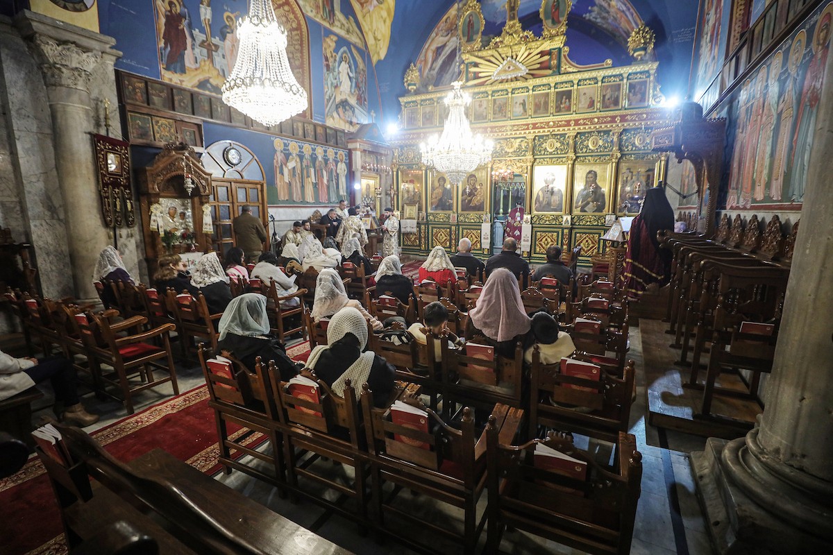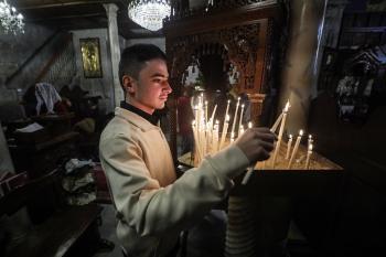 حضر مسيحيون أرثوذكس يحتفلون بعيد الميلاد وفقًا للتقويم الشرقي قداسًا في كنيسة القديس بورفيريوس اليونانية الأرثوذكسية في غزة في 7 يناير/كانون ثاني 2026. صورة من عمر أشتوي