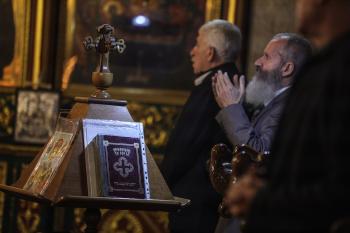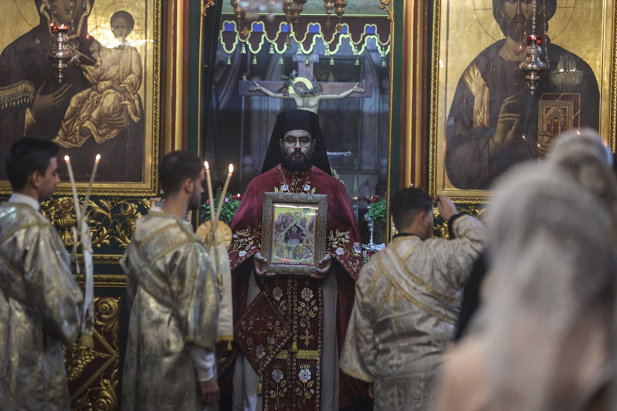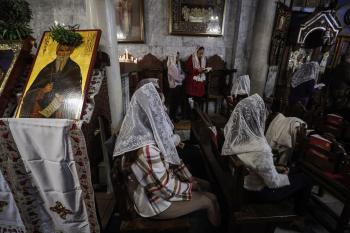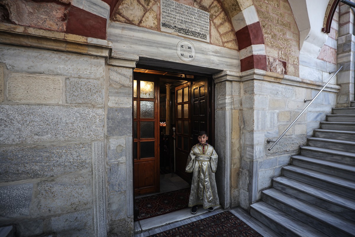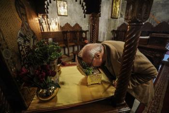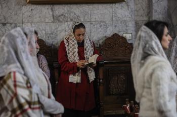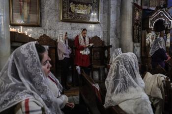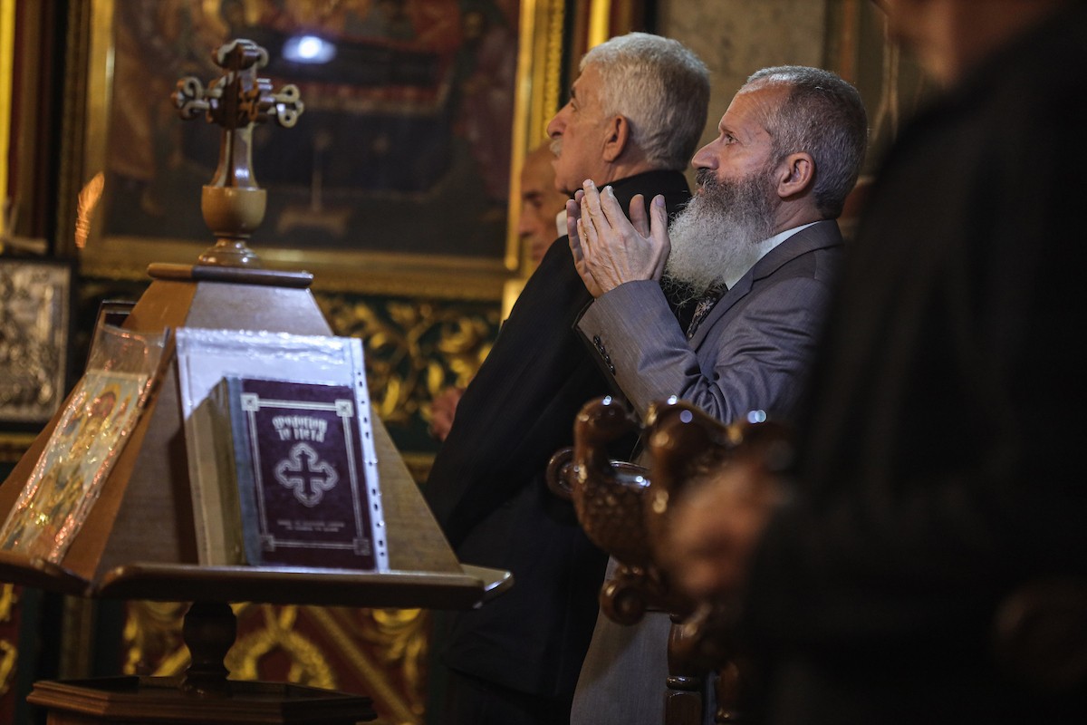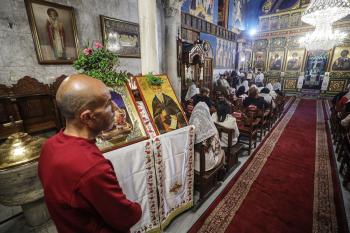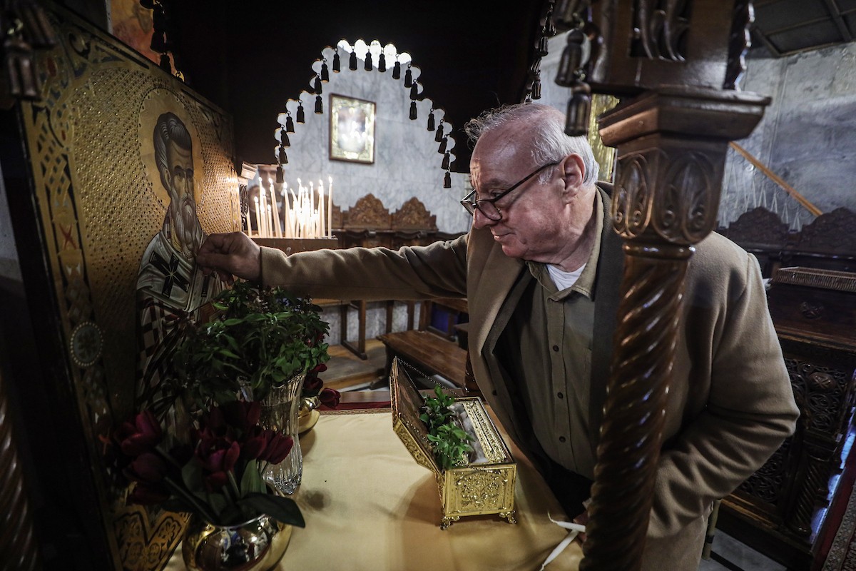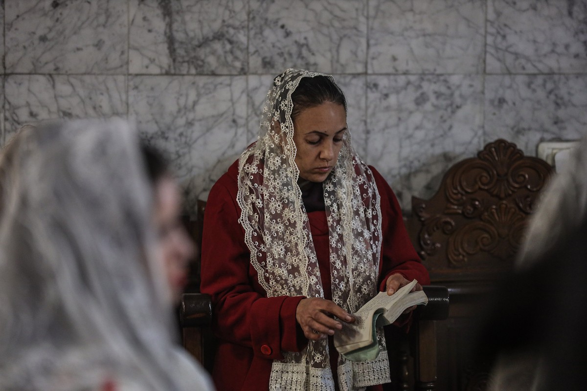 حضر مسيحيون أرثوذكس يحتفلون بعيد الميلاد وفقًا للتقويم الشرقي قداسًا في كنيسة القديس بورفيريوس اليونانية الأرثوذكسية في غزة في 7 يناير/كانون ثاني 2026. صورة من عمر أشتوي