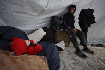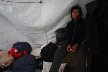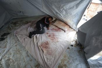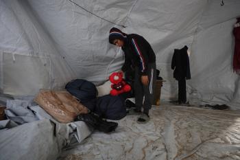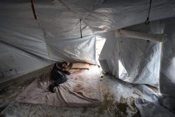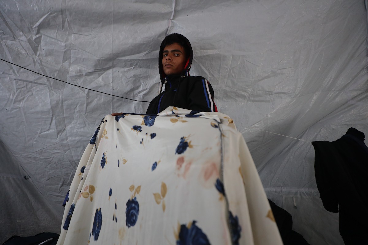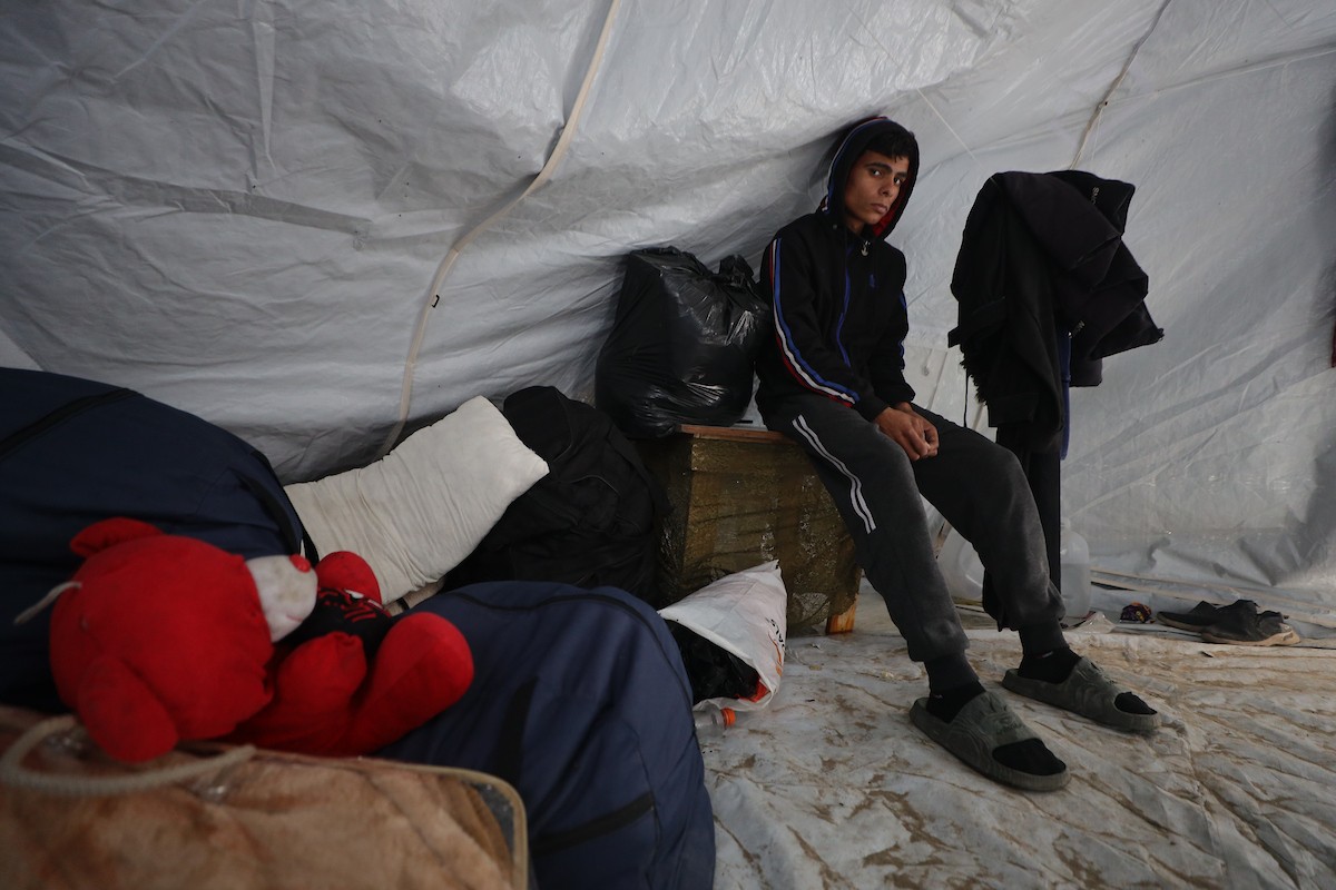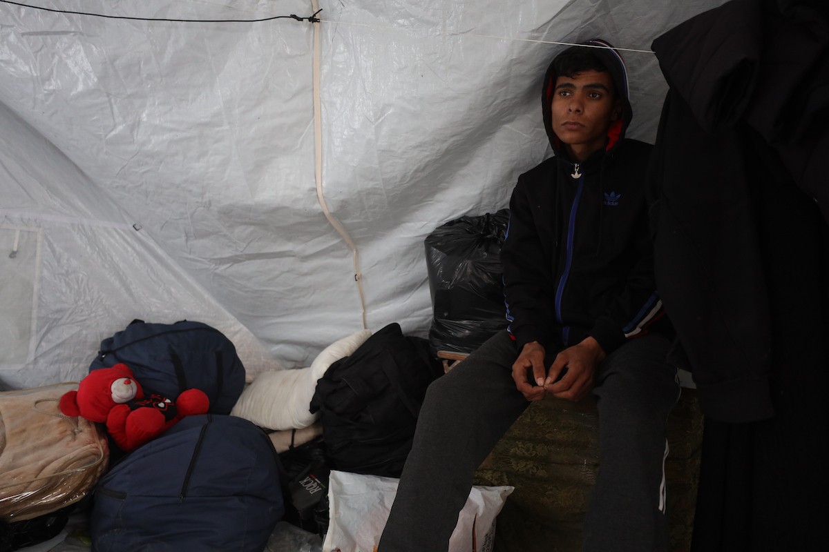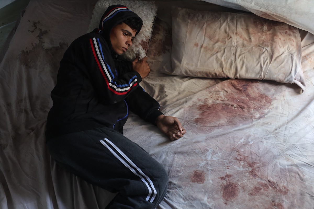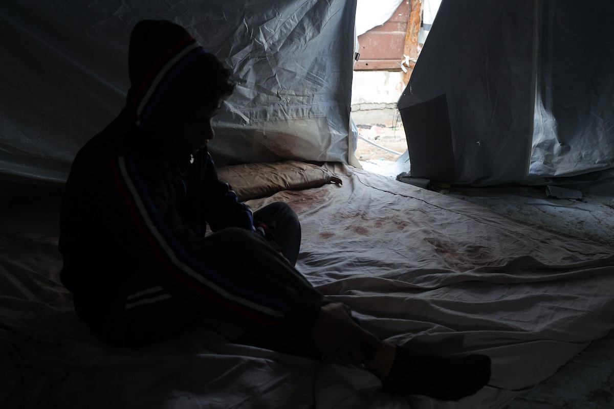 الشاب الفلسطيني أحمد أبو سعادة (20عاماً) يفقد القدرة على الكلام نتيجة الصدمة التي ألمّت به جراء فقدان زوجته ولاء جحا، إثر غارة جوية إسرائيلية على غزة، بعد ثلاثة أيام فقط من زفافهما، 7 يناير/كانون الثاني 2025. صورة: عمر أشتوي