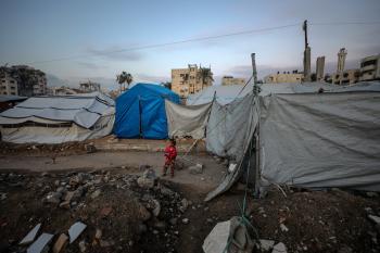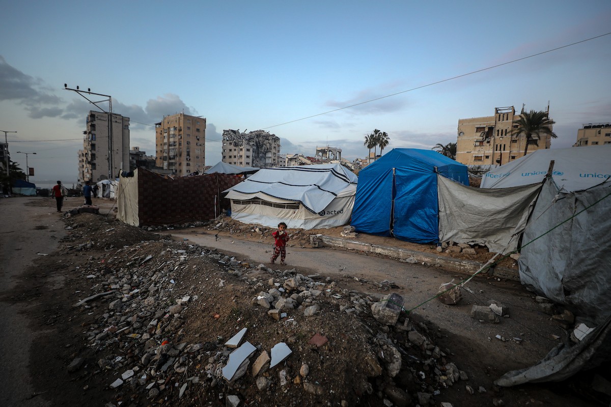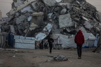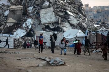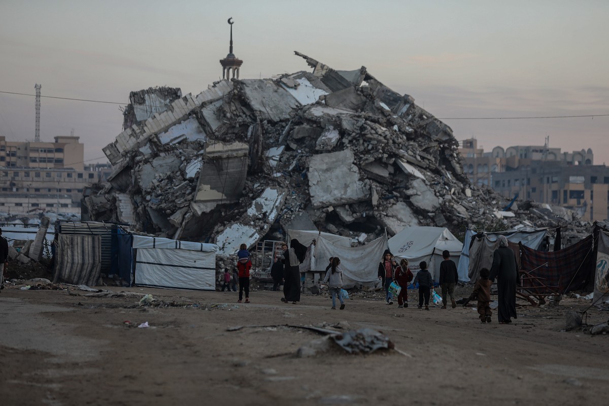 يسير فلسطينيون في شوارع مدينة غزة، وسط الأنقاض والدمار الذي خلفته الحرب الإسرائيلية، في 10 يناير/كانون الثاني 2026، بينما تستمر الحياة اليومية في ظل ظروف صعبة. صورة: عمر أشتوي