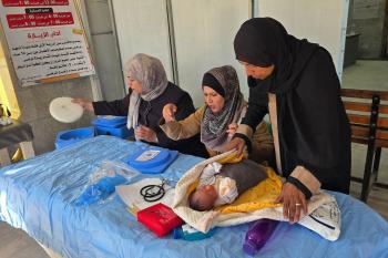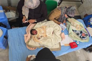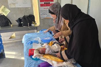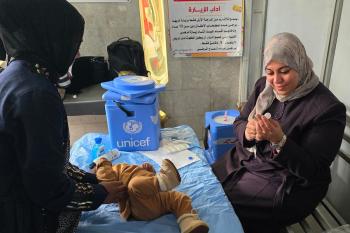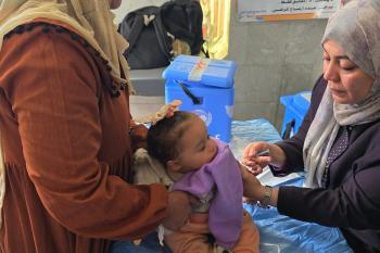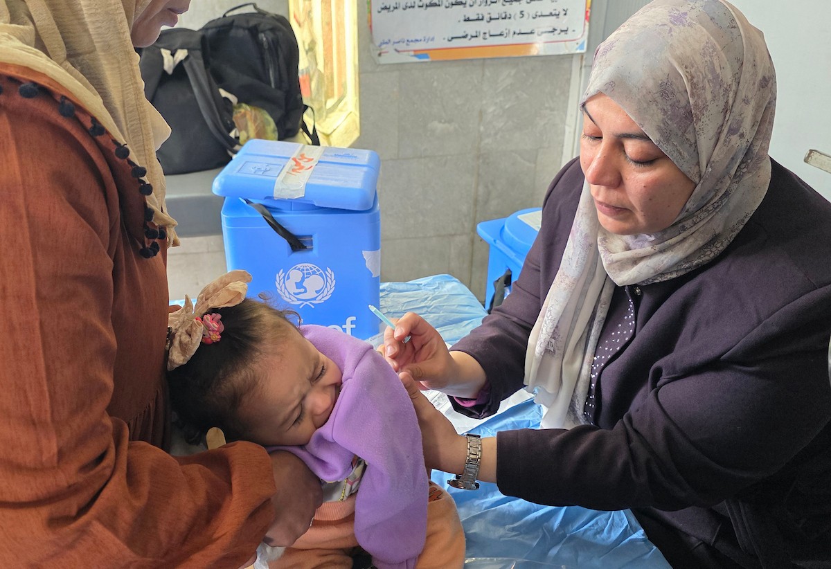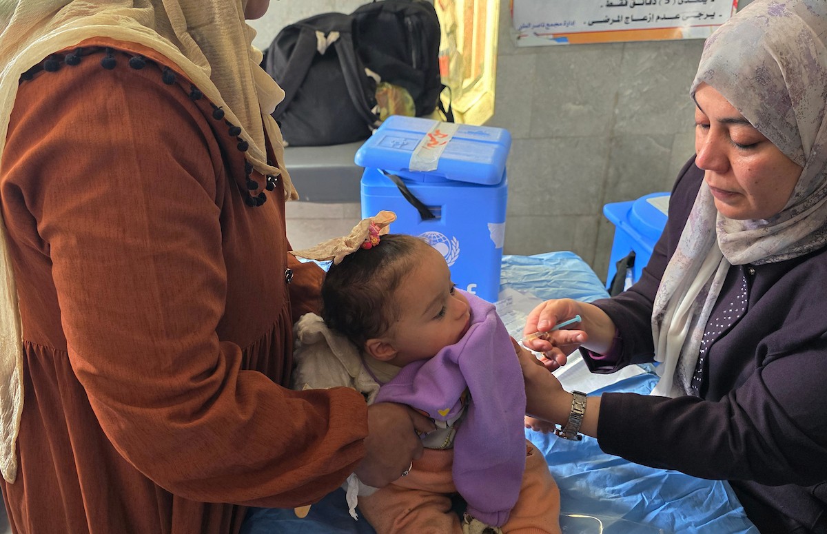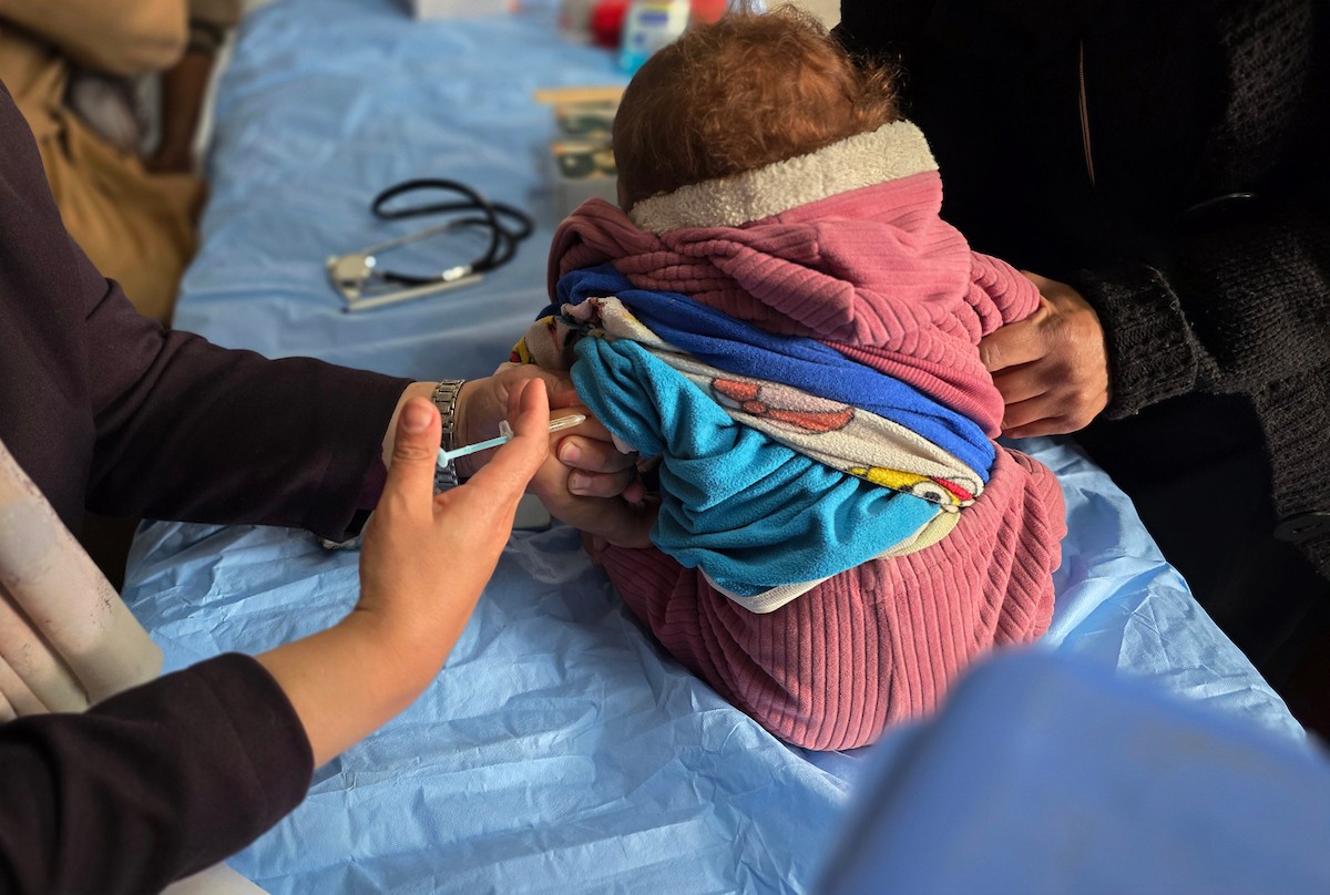 حملة تطعيم تكميلية للأطفال بمستشفى ناصر في خان يونس جنوب قطاع غزة وسط تدهور حاد في الأوضاع الصحية والمعيشية في مخيمات النازحين ومخاوف من تفشي الأمراض 18 يناير/كانون الثاني 2026. تصوير: طارق محمد