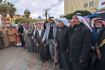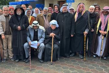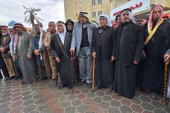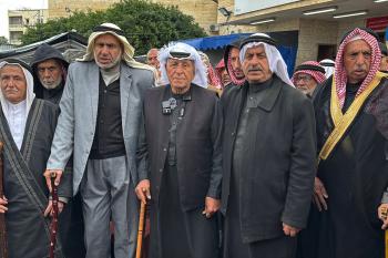 التجمع الوطني للقبائل والعشائر والعائلات الفلسطينية ينظم وقفة في دير البلح دعمًا للجنة الوطنية الفلسطينية لإدارة قطاع غزة، ١٨ يناير/كانون ثاني ٢٠٢٦. صورة: أحمد إبراهيم