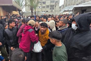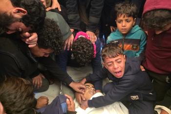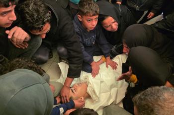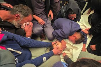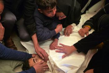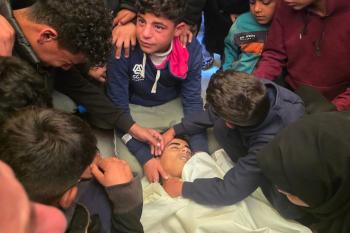 ودّع الفلسطينيون جثمان الطفل حسين أبو سبلة، البالغ من العمر 17 عامًا، في مستشفى ناصر بمدينة خان يونس جنوب قطاع غزة. وقد استشهد أبو سبلة بنيران الجيش الإسرائيلي قرب منطقة التحلية، شرق خان يونس. 19 يناير/كانون الثاني 2026.صورة:(طارق محمد)