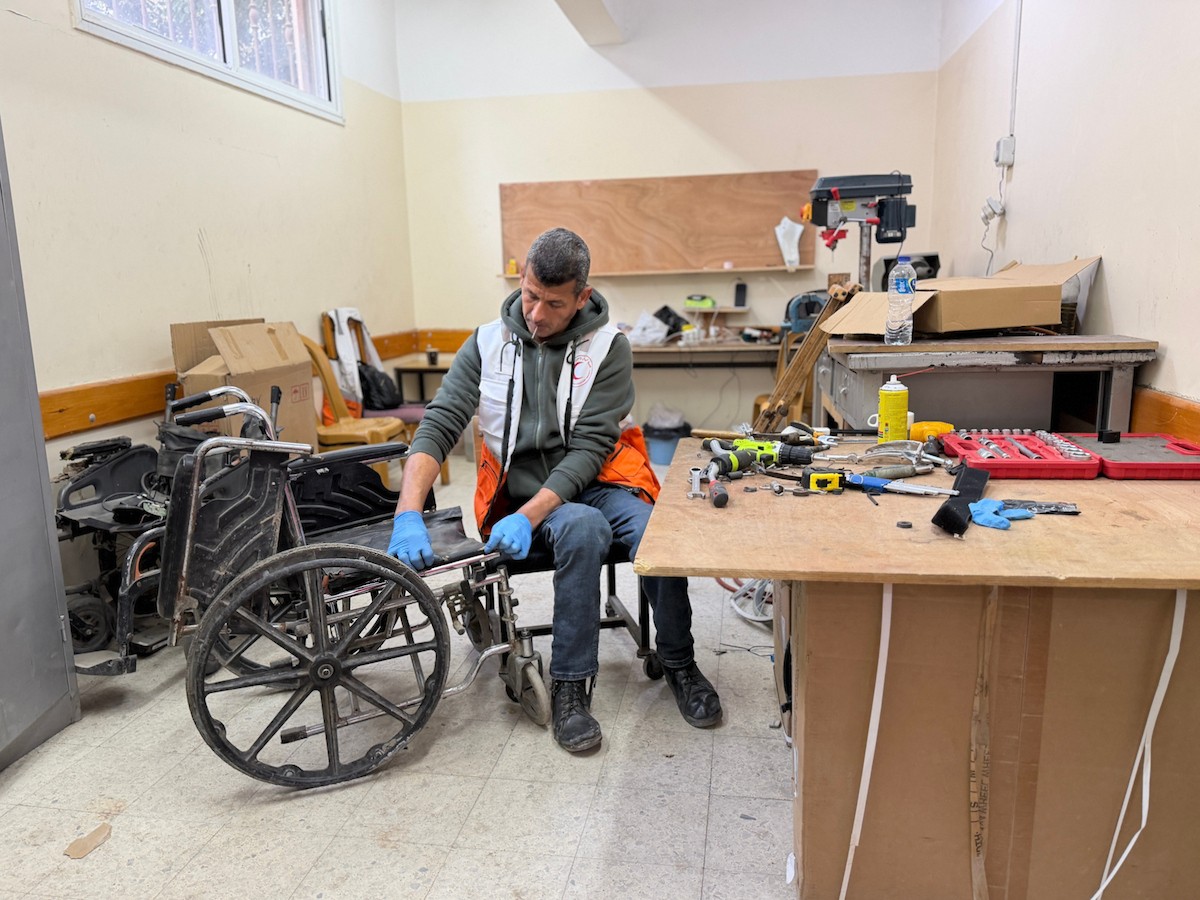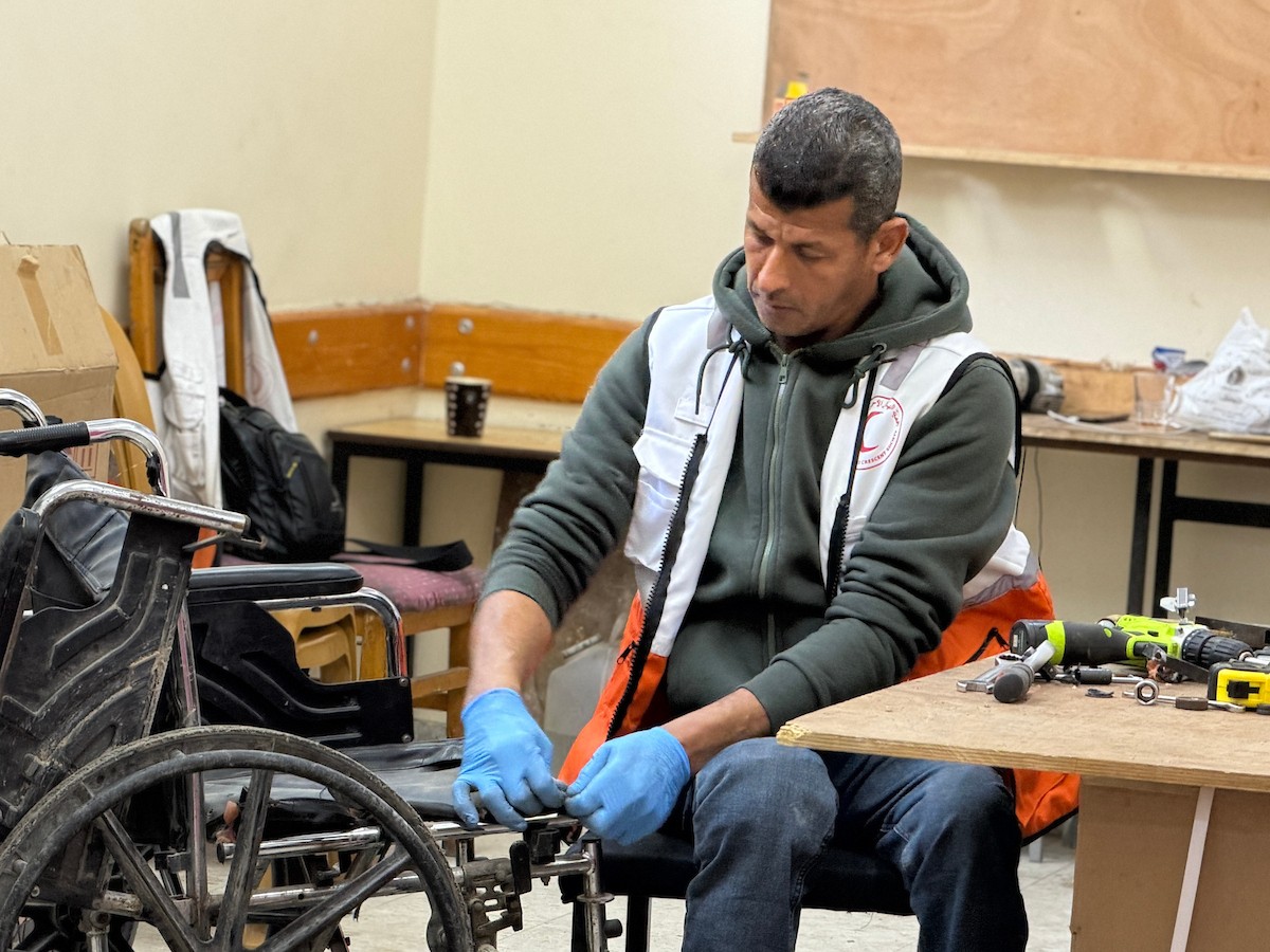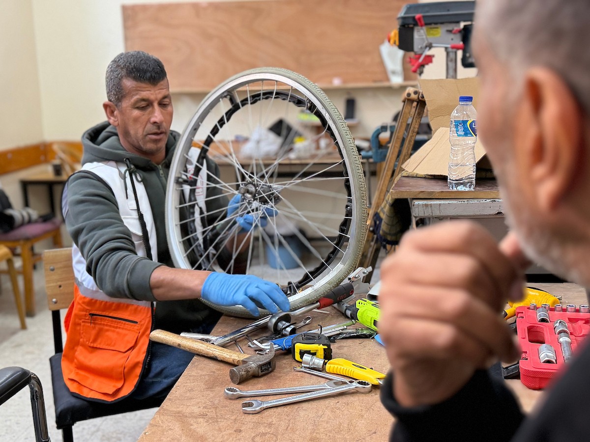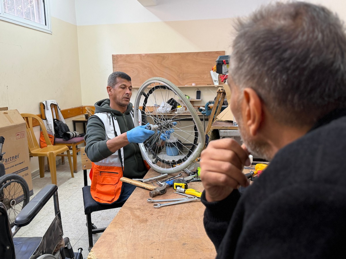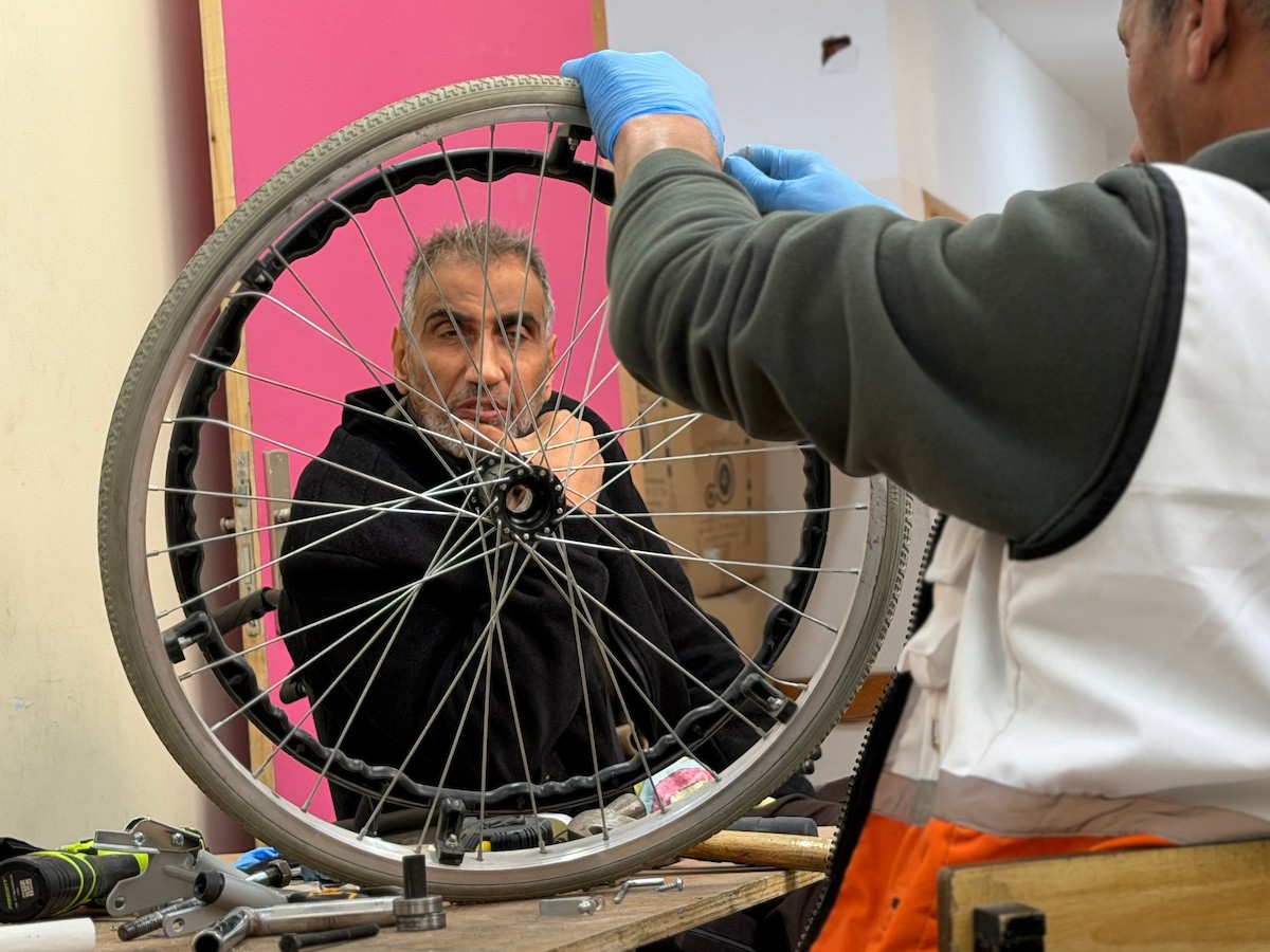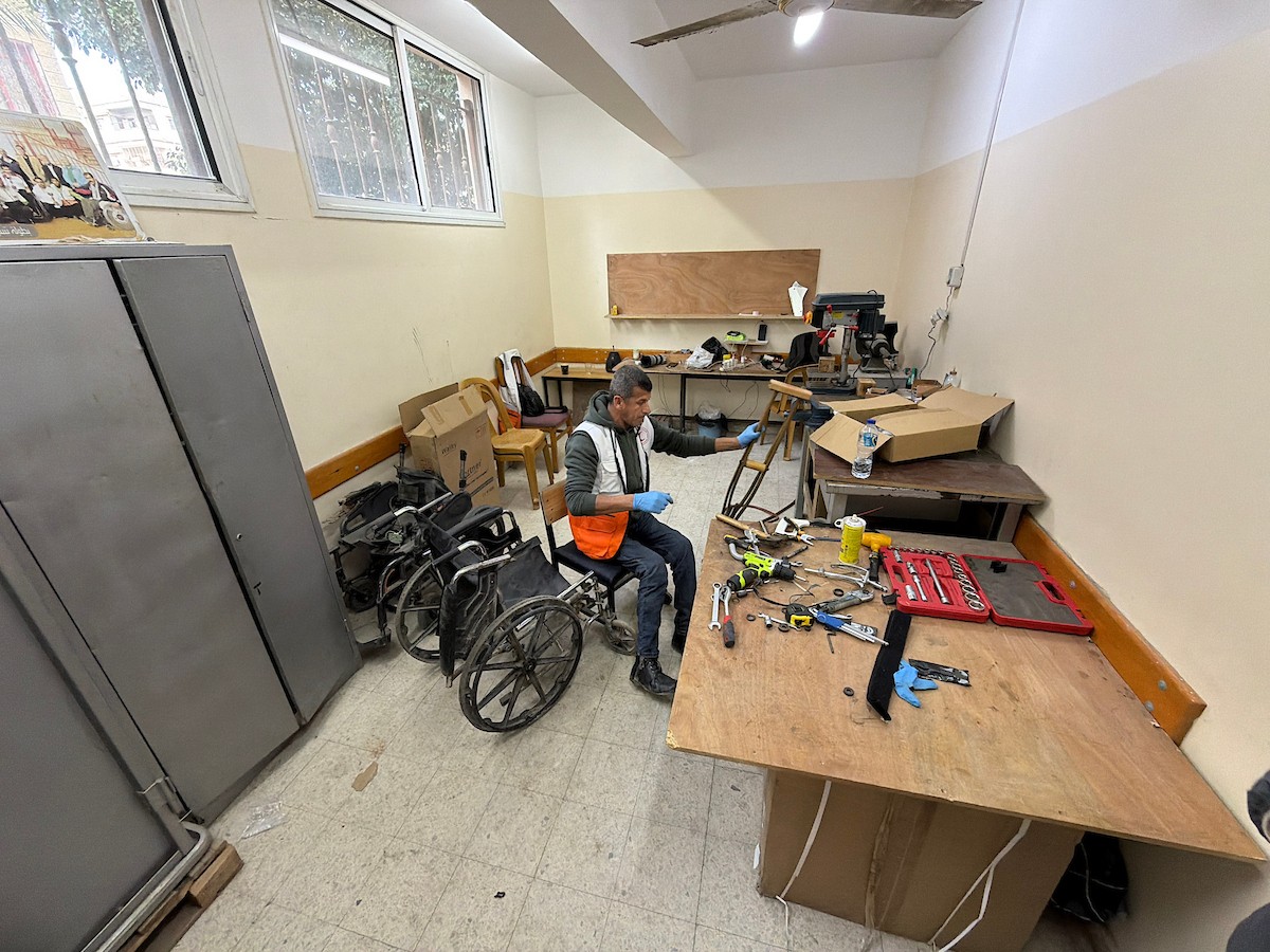 الفلسطيني رمزي الفجم يصلح كراسي متحركة لجرحى قطاع غزة متحديا إعاقته الشخصية ونقص المعدات الطبية ، خان يونس، جنوب قطاع غزة، 20 يناير/كانون الثاني 2026 تصوير: محمد سلامة / وكالة الأنباء الفلسطينية (APA Images)