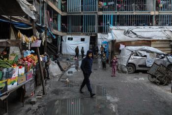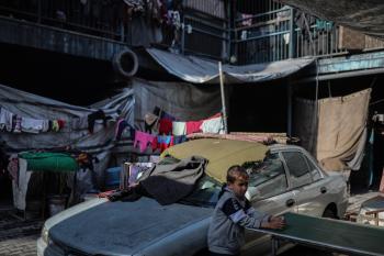 غزة: لا تزال الحياة اليومية للنازحين في خيام وملاجئ مؤقتة صعبة للغاية مع قلة المساعدات ونقص المياه والغذاء.مدينة غزة، 20 يناير/كانون الثاني 2026. تصوير: عمر أشتوي