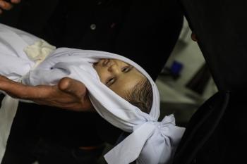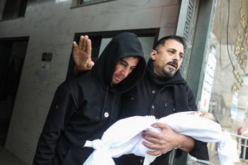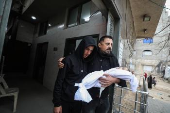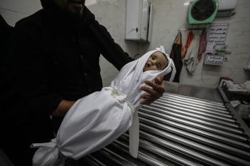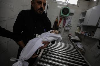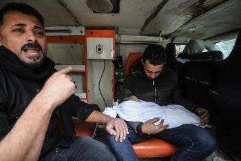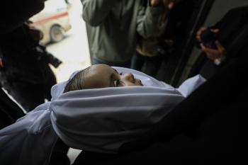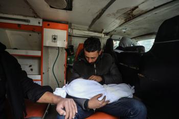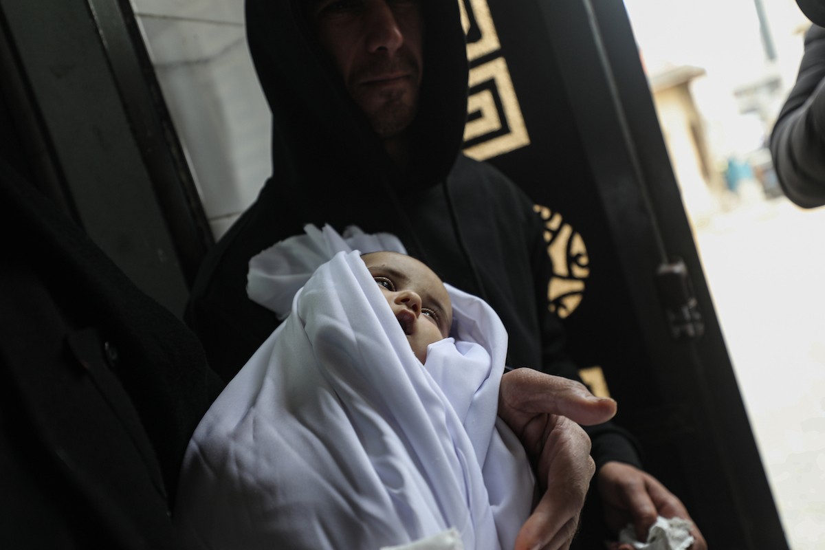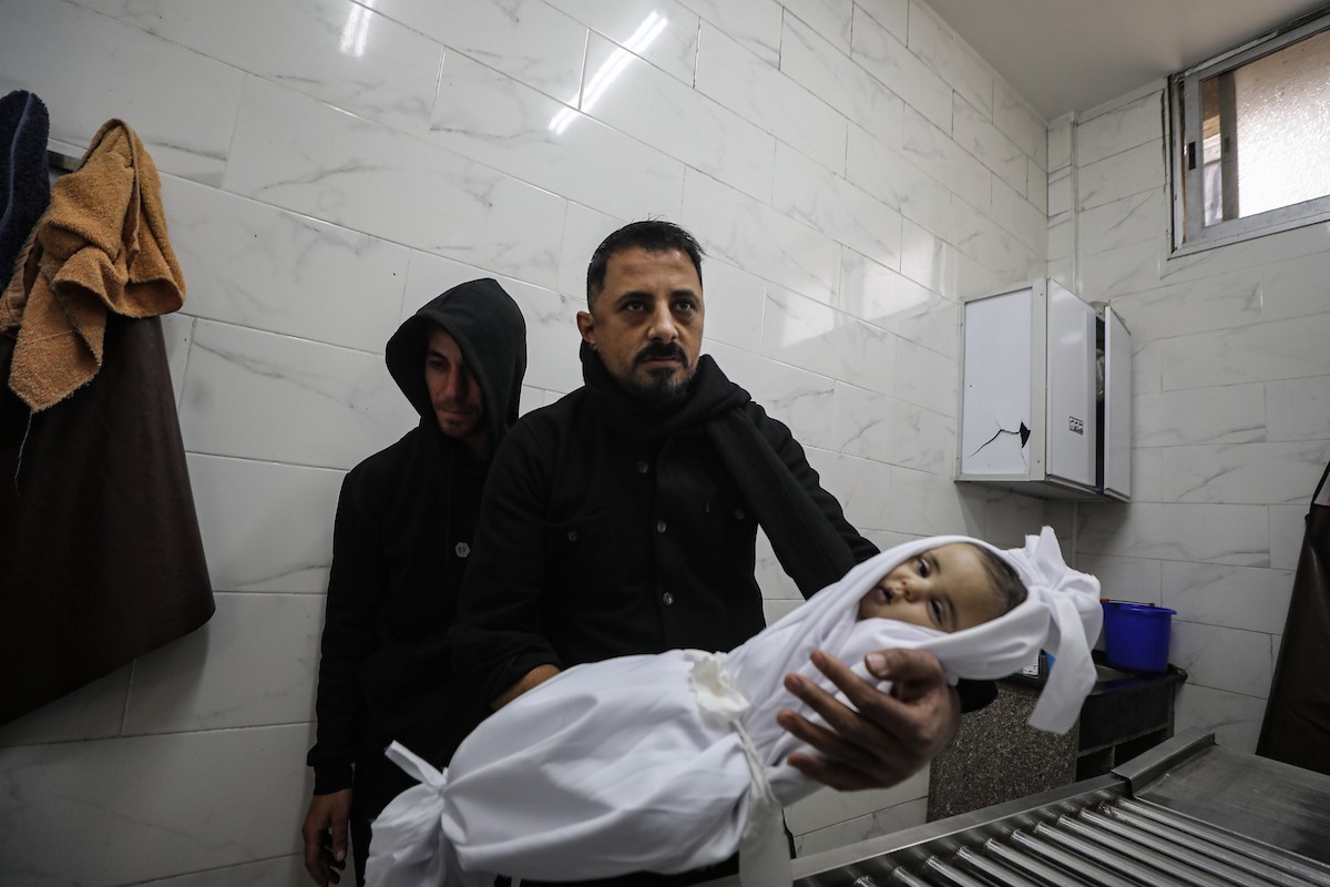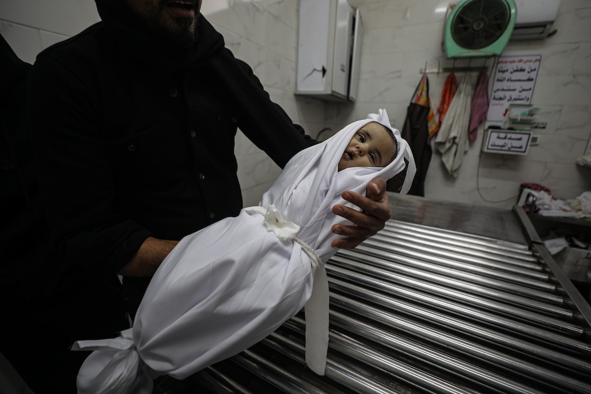 توفي الطفل علي أبو زور، البالغ من العمر ثلاثة أشهر، والذي وصل إلى مستشفى الشفاء في مدينة غزة، متأثراً بموجة البرد القارس التي ضربت مخيمات النازحين في غزة. 22 يناير/كانون الثاني 2026. صورة: عمر أشتوي