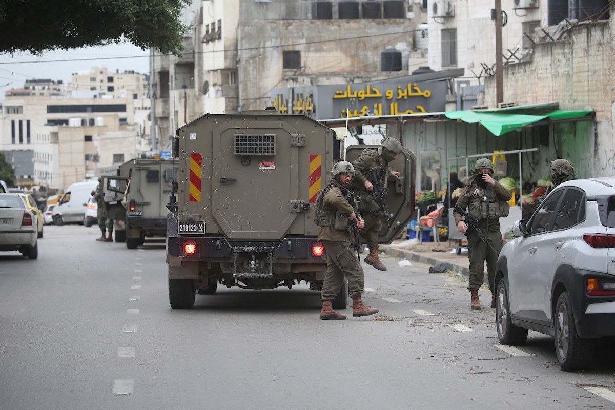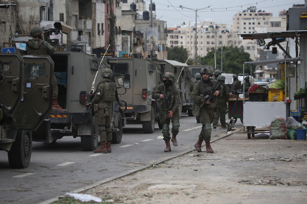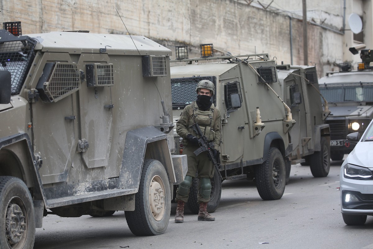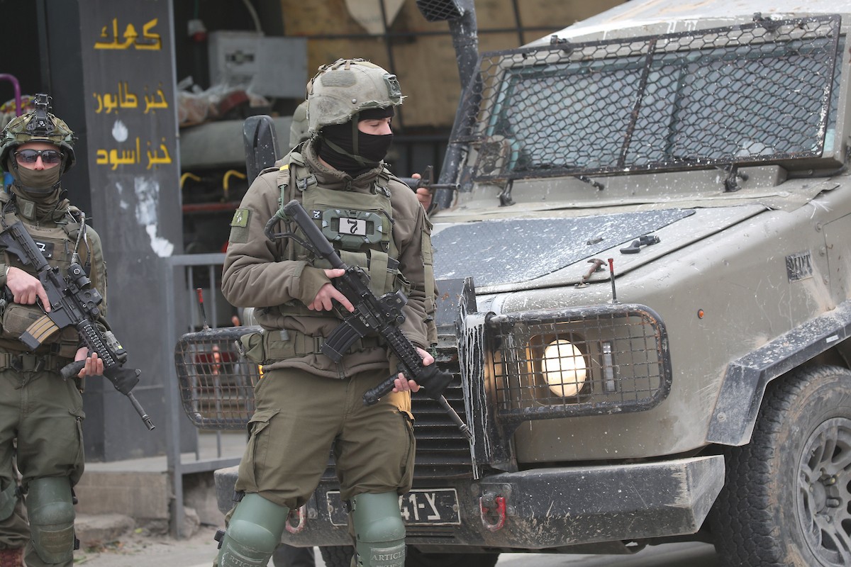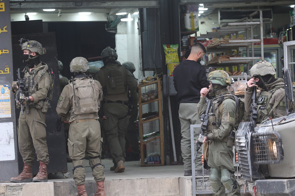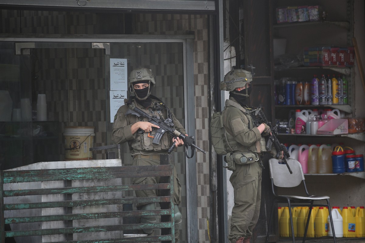 قوات الجيش الإسرائيلي تنفذ عملية عسكرية في مخيم العين للاجئين غرب نابلس، ٢٢ يناير/كانون الثاني ٢٠٢٦. صورة: محمد ناصر