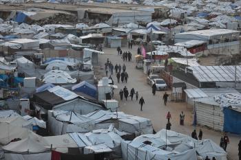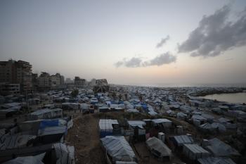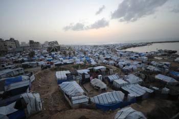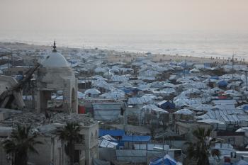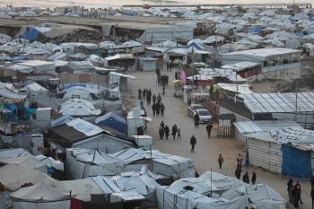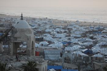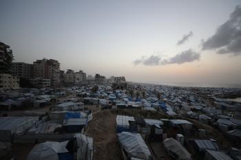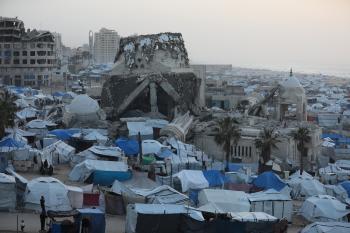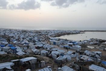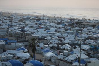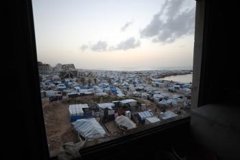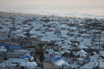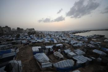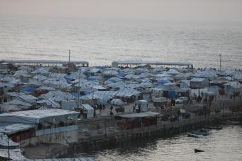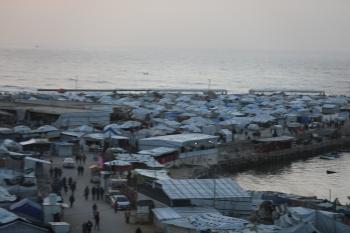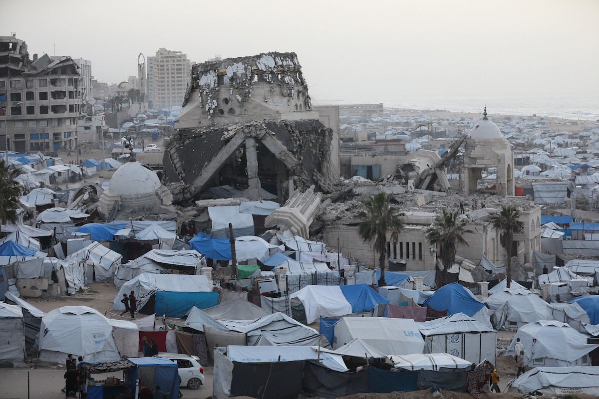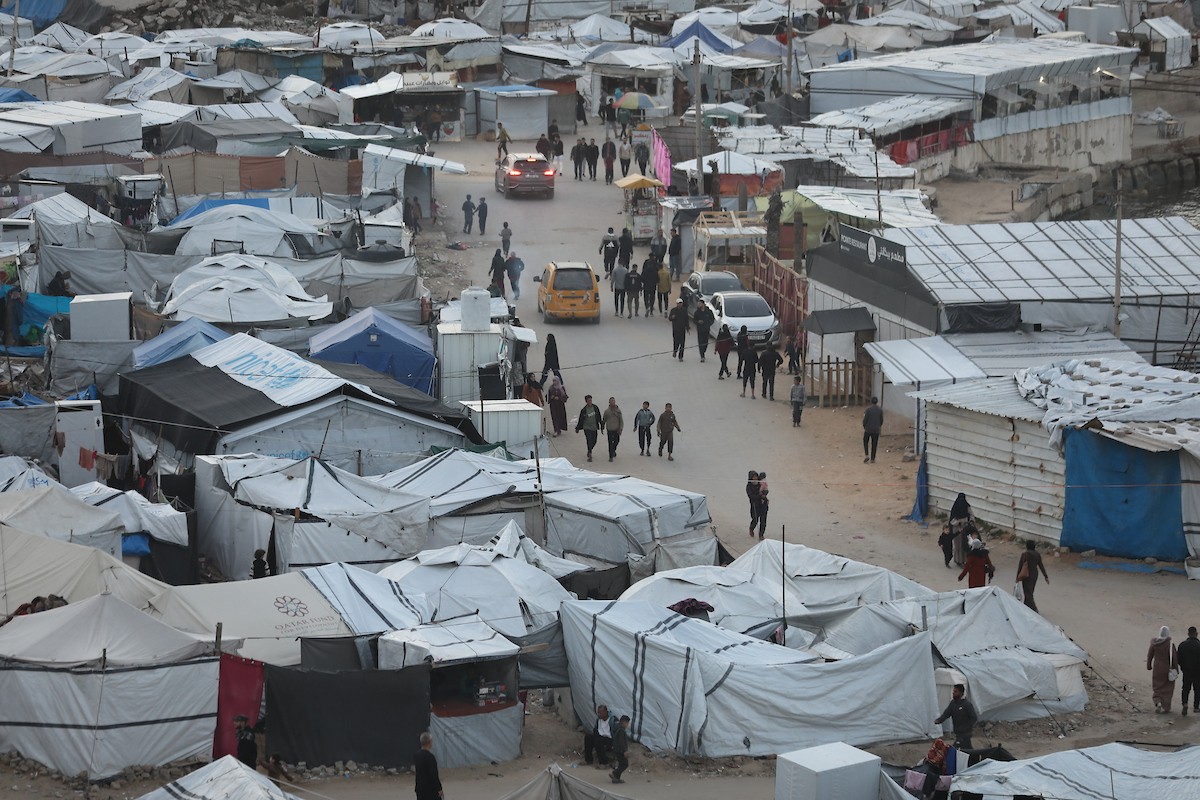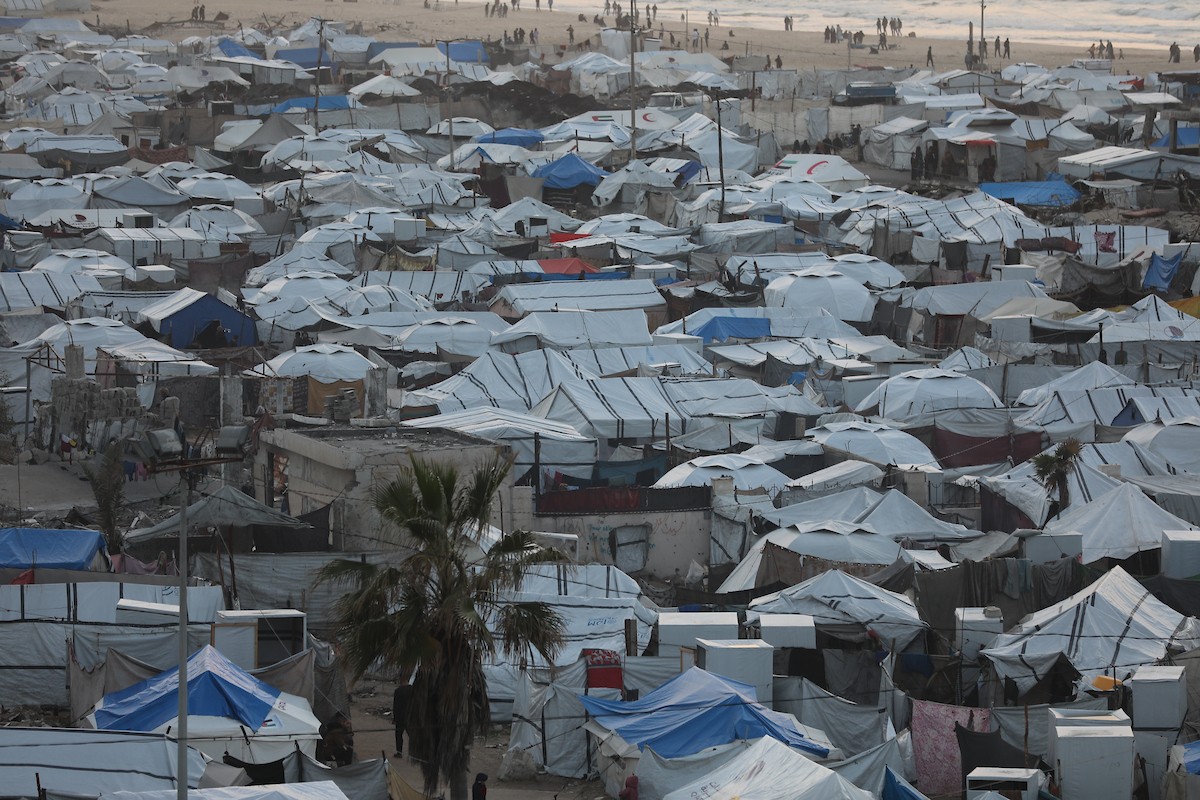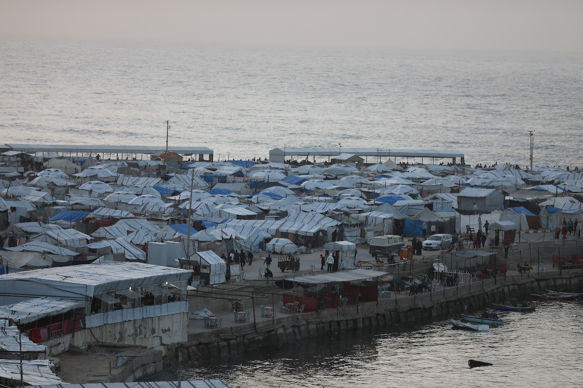 تُظهر لقطاتٌ عامةٌ خيامَ النازحين مُكدّسةً في ميناء مدينة غزة المُدمّر، ما يعكس ظروفًا معيشيةً مُزرية. ولا تزال الحياة اليومية صعبةً للغاية بالنسبة لغالبية السكان، 23 يناير/كانون الثاني 2026.صورة: عمر أشتوي