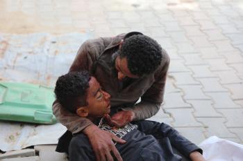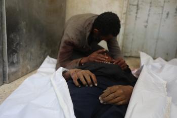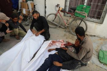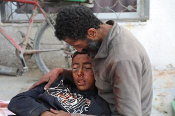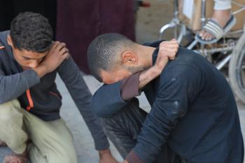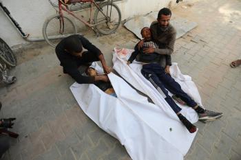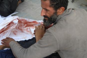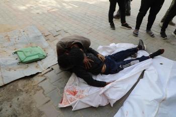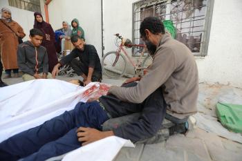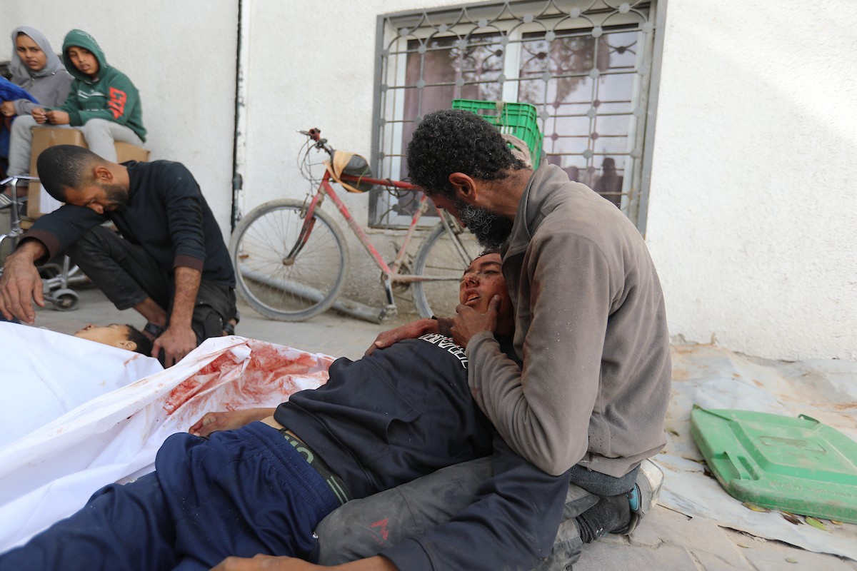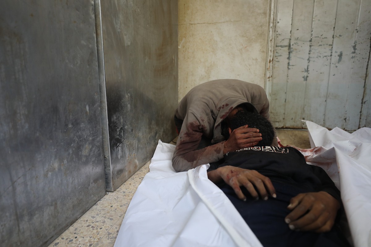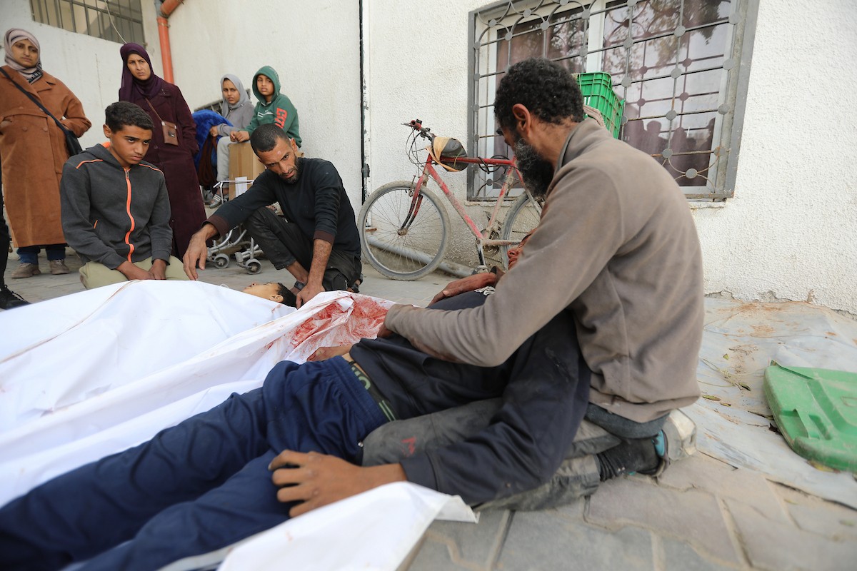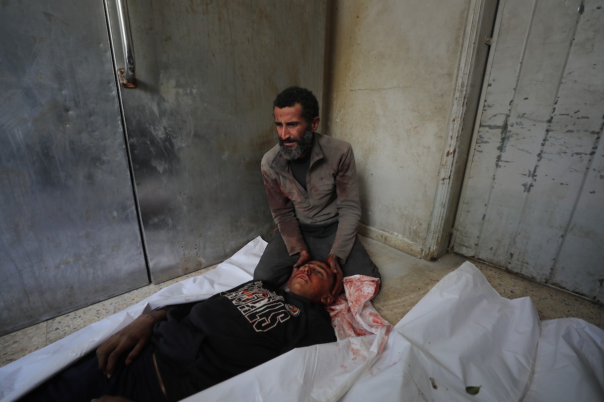 حضر أقارب شاب فلسطيني، قُتل بنيران الجيش الإسرائيلي، مراسم الدفن التي أقيمت في مستشفى الشفاء بمدينة غزة، في 24 يناير/كانون الثاني 2026. (صورة: عمر أشتوي)