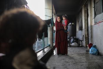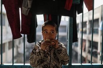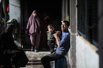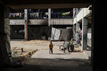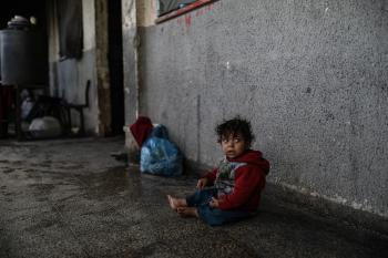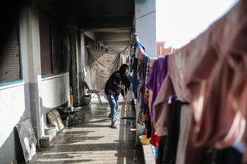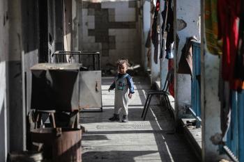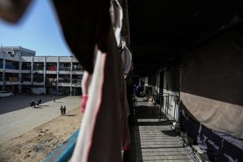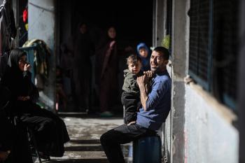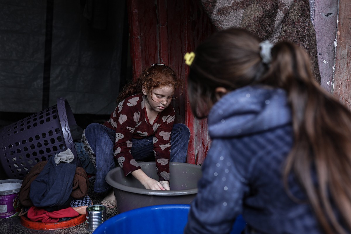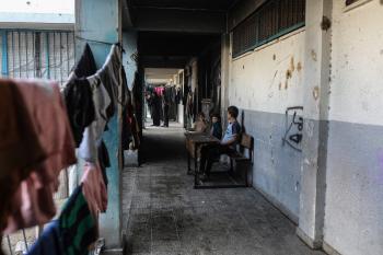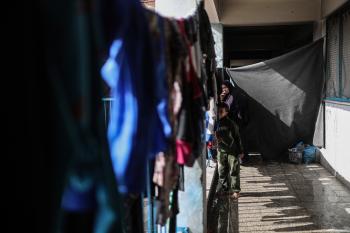 عائلات فلسطينية نزحت جراء الهجمات الإسرائيلية منذ 7 أكتوبر/تشرين الأول 2023، تعيش ظروف صعبة ومكتظة في مدرسة تابعة لوكالة الأونروا في حي تل الهوى بمدينة غزة، 26 يناير/كانون الثاني 2026، بعدسة عمر أشتوي