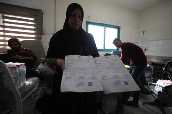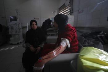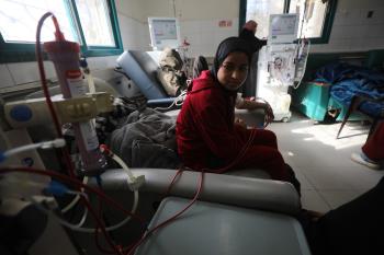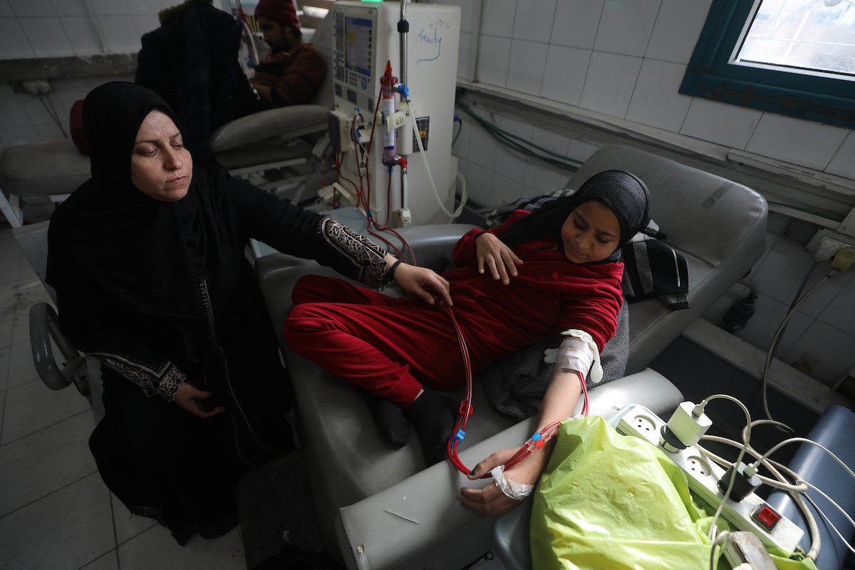 الفلسطينية صابرين الدعمة تنتظر فتح معبر رفح لتتبرع بكليتها لابنتها المريضة آلاء الدمعة، في ظل انهيار القطاع الصحي ونقص الأجهزة والعلاج بسبب الحرب. مستشفى الشفاء بمدينة غزة، 29 يناير/كانون الثاني 2026. صورة: عمر أشتوي