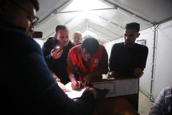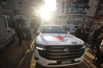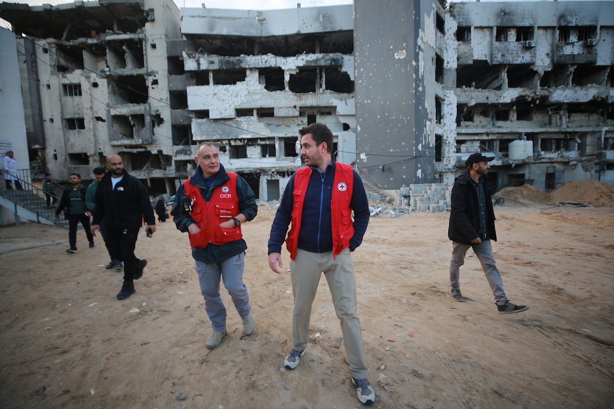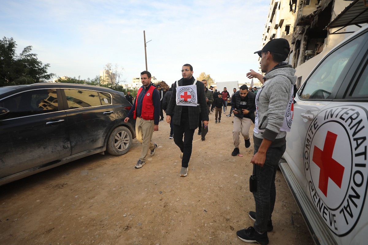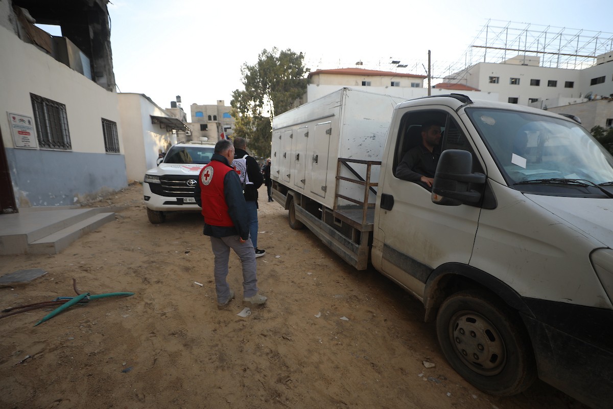 اللجنة الدولية للصليب الأحمر تنقل 15 جثة لفلسطينيين، كان يحتجزها الجيش الإسرائيلي، إلى مجمع الشفاء الطبي في مدينة غزة، 29 يناير/كانون الثاني 2026. تصوير: عمر أشتوي