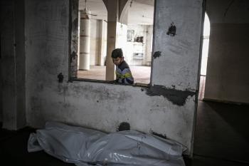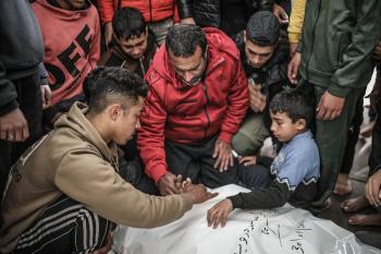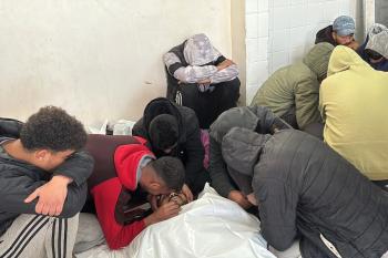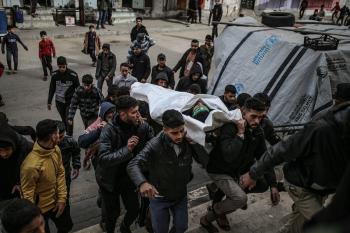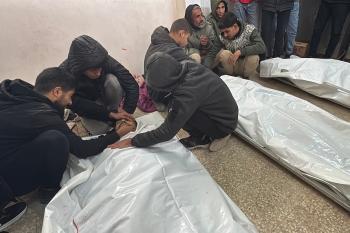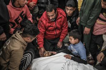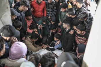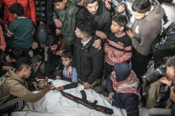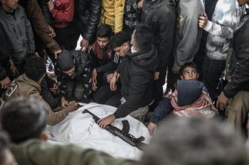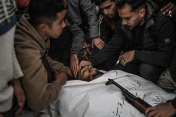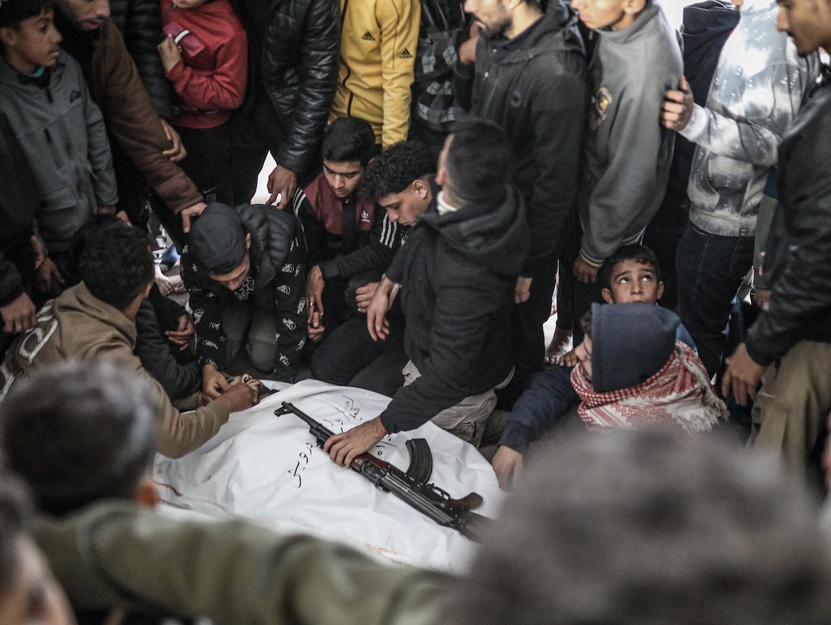 موكب جنازة فلسطينيين اثنين استشهدا في هجوم إسرائيلي على مخيم المغازي للاجئين وسط قطاع غزة. 30 يناير/كانون الثاني 2026. تصوير: رمزي أبو عامر
