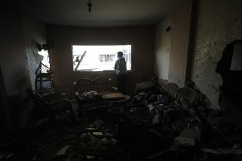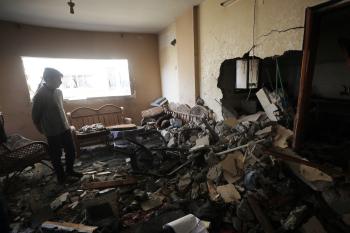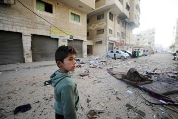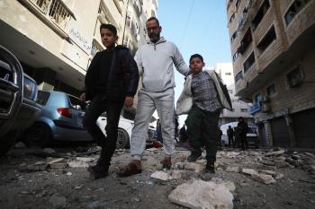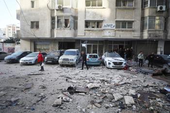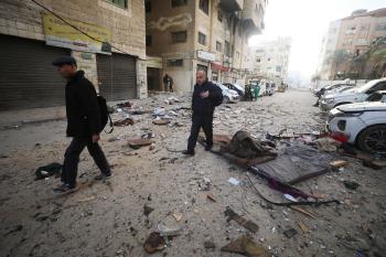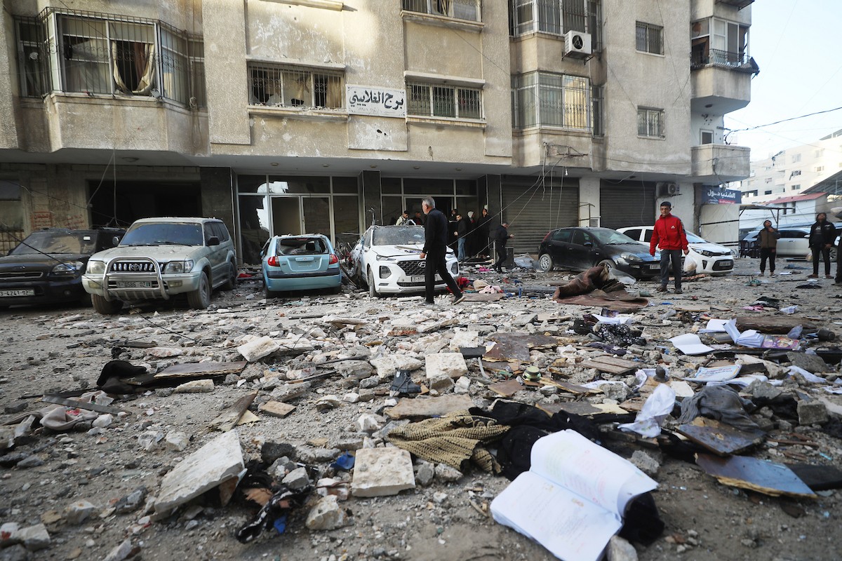 فلسطينيون يمرون أمام مبنى سكني تضرر جراء غارة عسكرية إسرائيلية أسفرت عن سقوط عدد من الضحايا في مدينة غزة، السبت 31 يناير/كانون الثاني 2026. صورة: عمر أشتوي