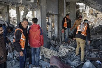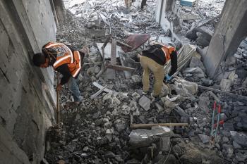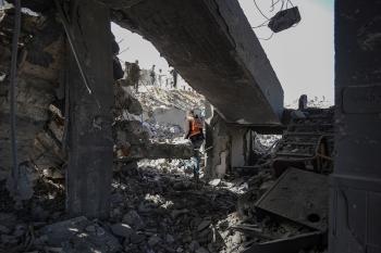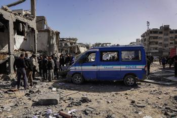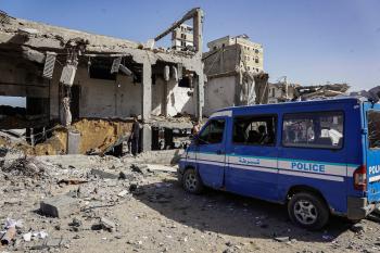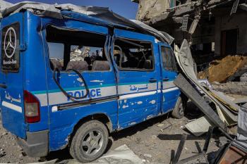 صورة للدمار الذي لحق بمركز شرطة في حي الشيخ رضوان بمدينة غزة، بعد استهداف الجيش الإسرائيلي له في 31 يناير/كانون الثاني 2026. تصوير: عمر أشتوي