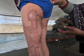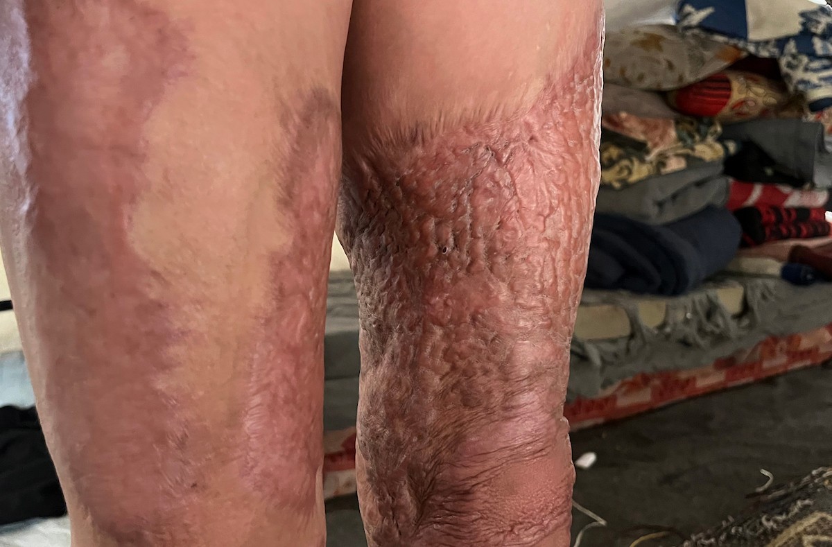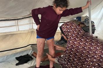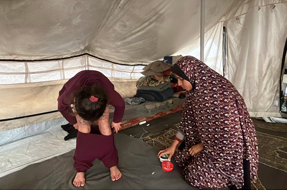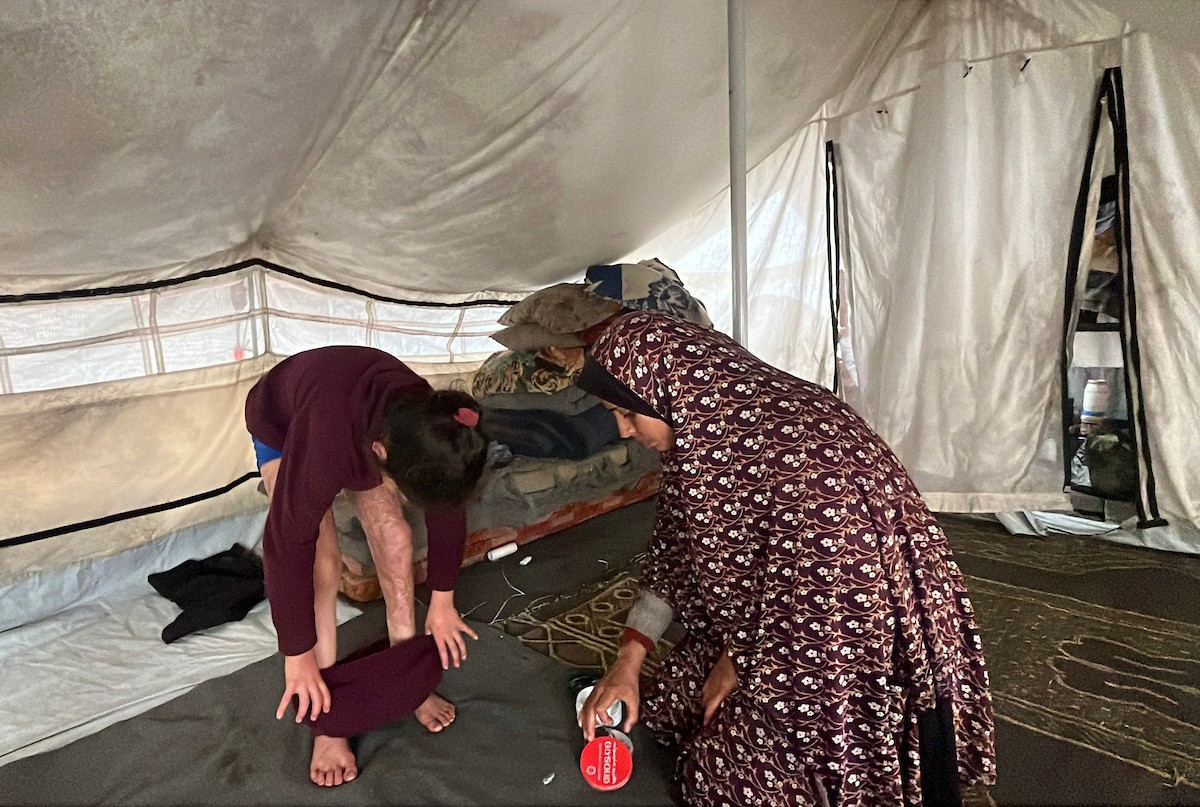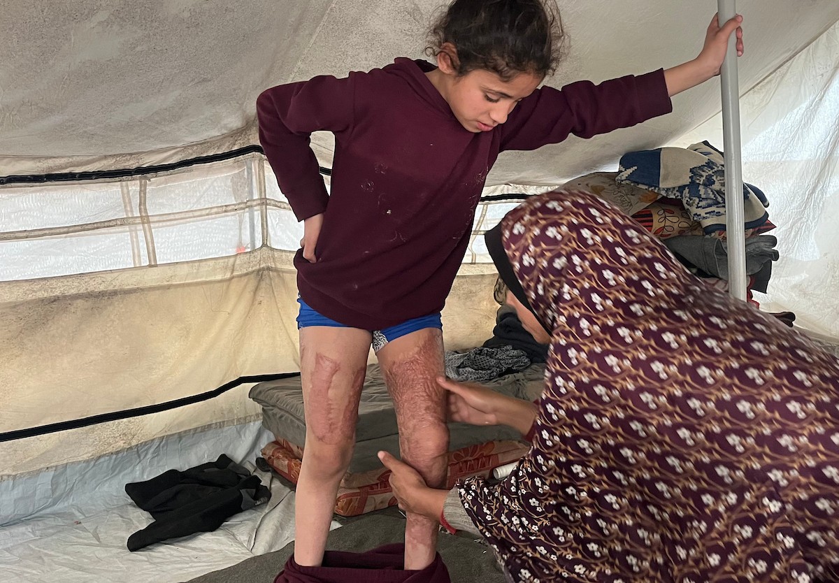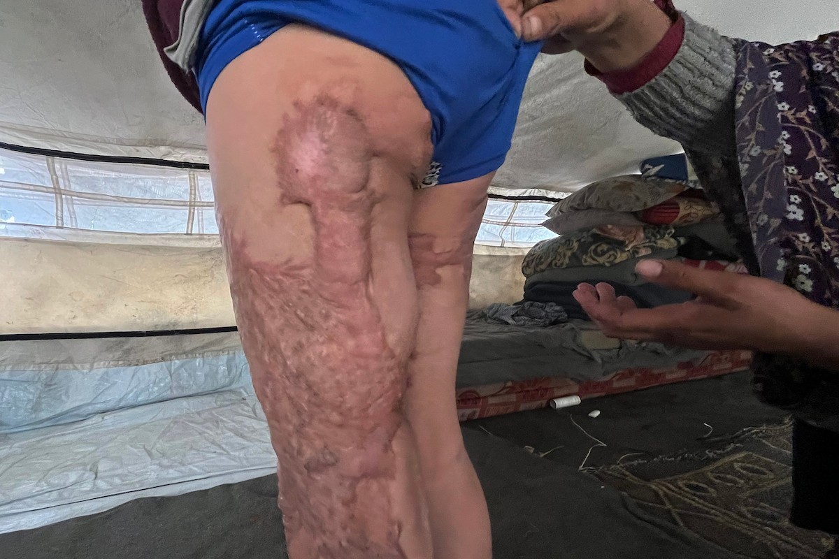 الطفلة رنين جندية مصابة بحروق في جسدها جراء غارة جوية إسرائيلية استهدفت خيمة قرب مخيمها في خان يونس، وتحتاج إلى استكمال العلاج خارج قطاع غزة.مدينة غزة، 1 فبراير/شباط 2026. صورة: مطر الزاق.