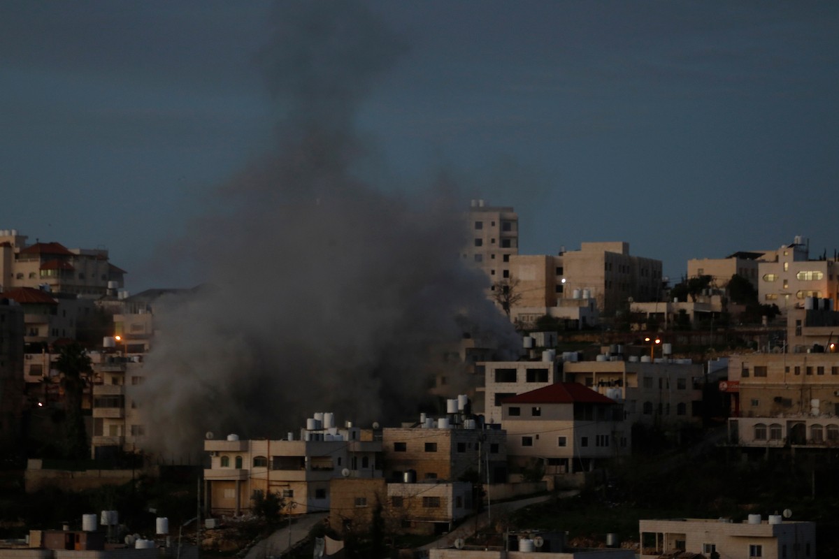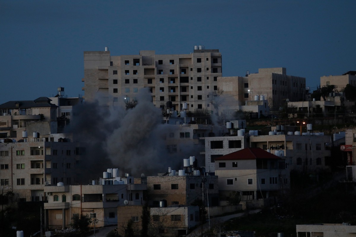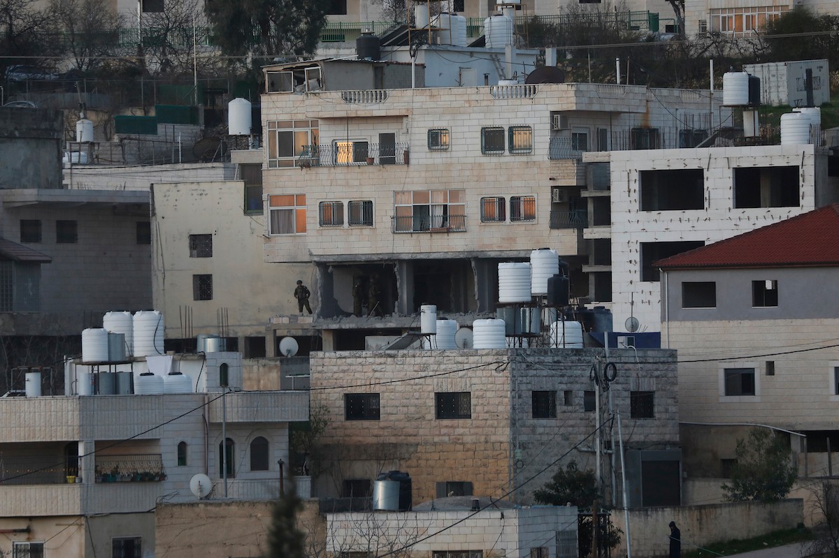قوات الجيش الإسرائيلي تفجر منزل الشهيد محمود يوسف عابد في بلدة حلحول شمال الخليل، 2 فبراير/شباط 2026. صورة: مأمون وزواز