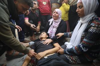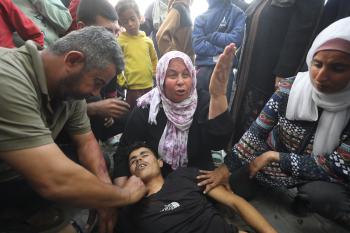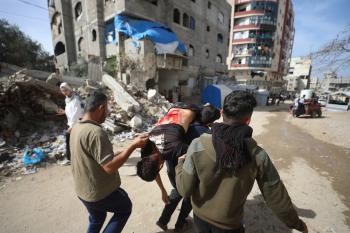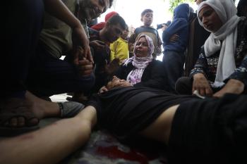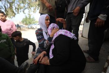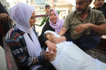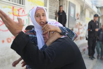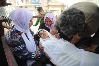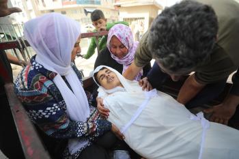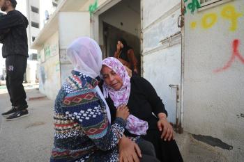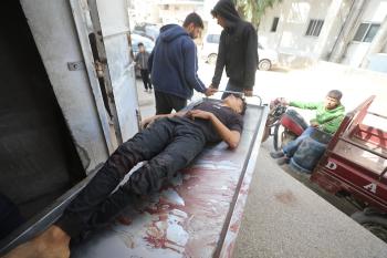 ودّاع جثمان وصل إلى مستشفى الشفاء في مدينة غزة. وكان قد استشهد بنيران الجيش الإسرائيلي أثناء جمعه الحطب في بيت لاهيا، شمال قطاع غزة، 8 فبراير/شباط 2026. تصوير: عمر أشتوي