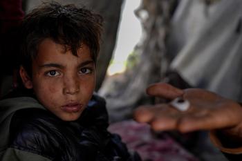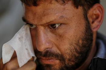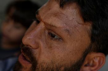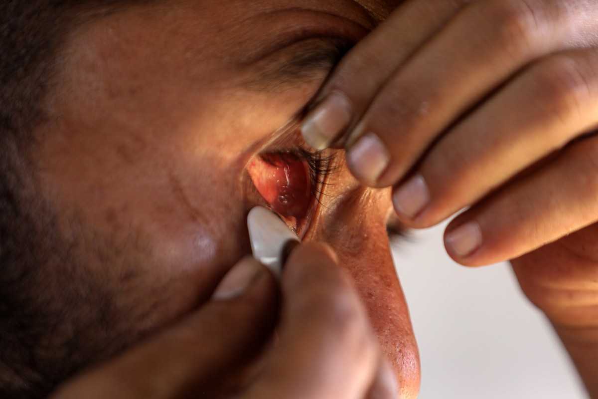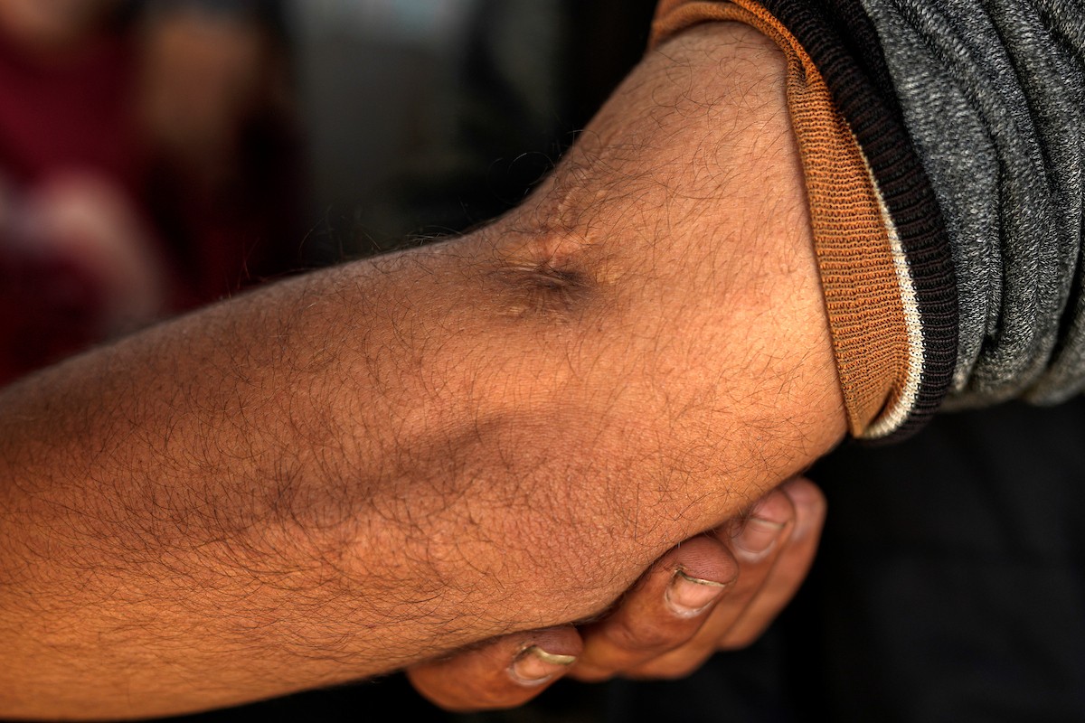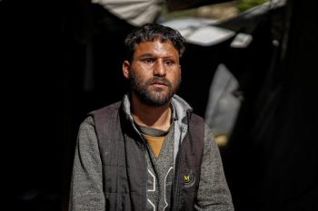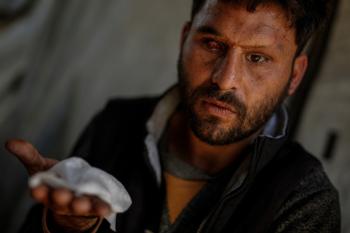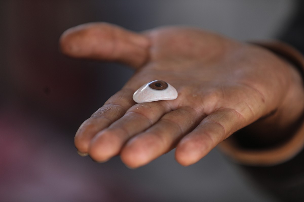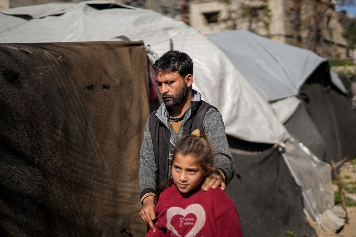 الفلسطيني لؤي أسامة صبح، 27 عامًا، أصيب بإعاقات دائمة وفقد بصره تمامًا جراء هجمات إسرائيلية، يكافح من أجل مواصلة حياته اليومية داخل خيمته في مدينة غزة في 11 فبراير/شباط 2026. صورة: عمر أشتوي