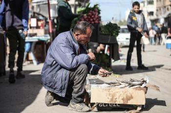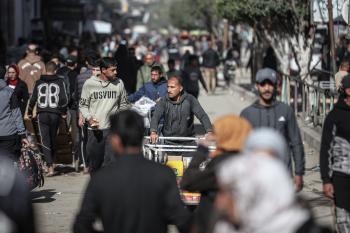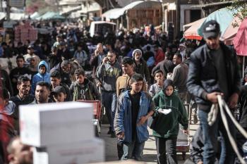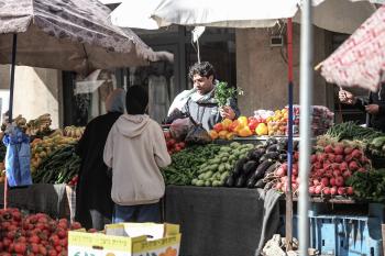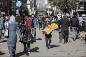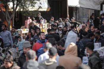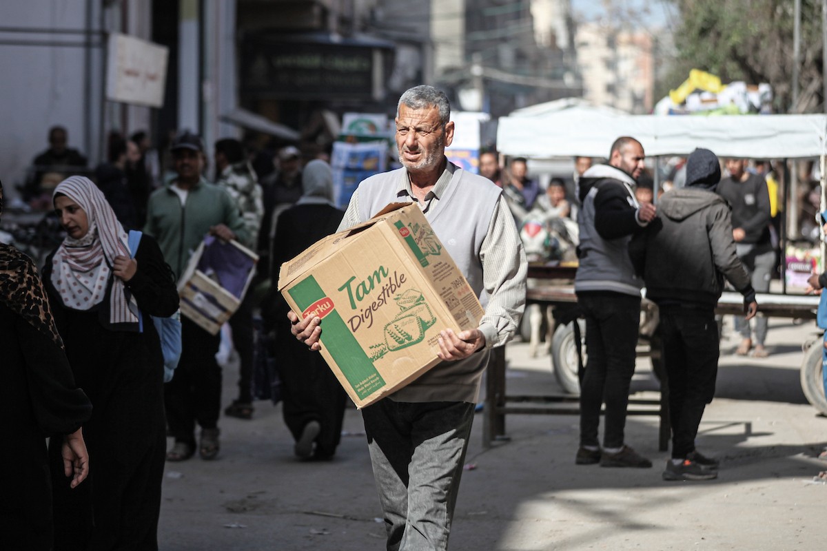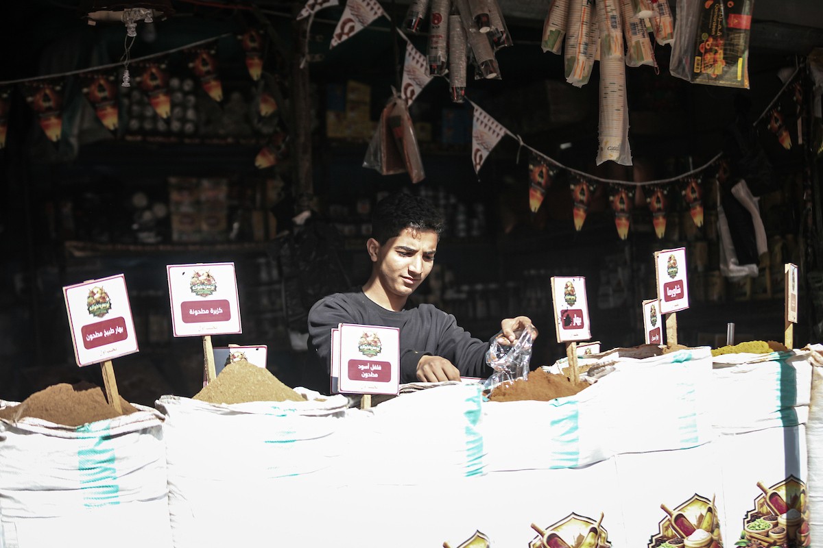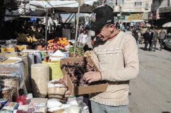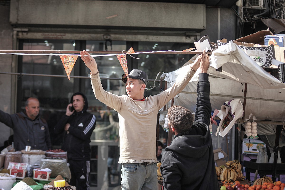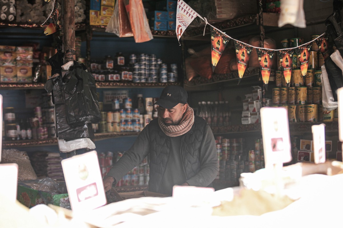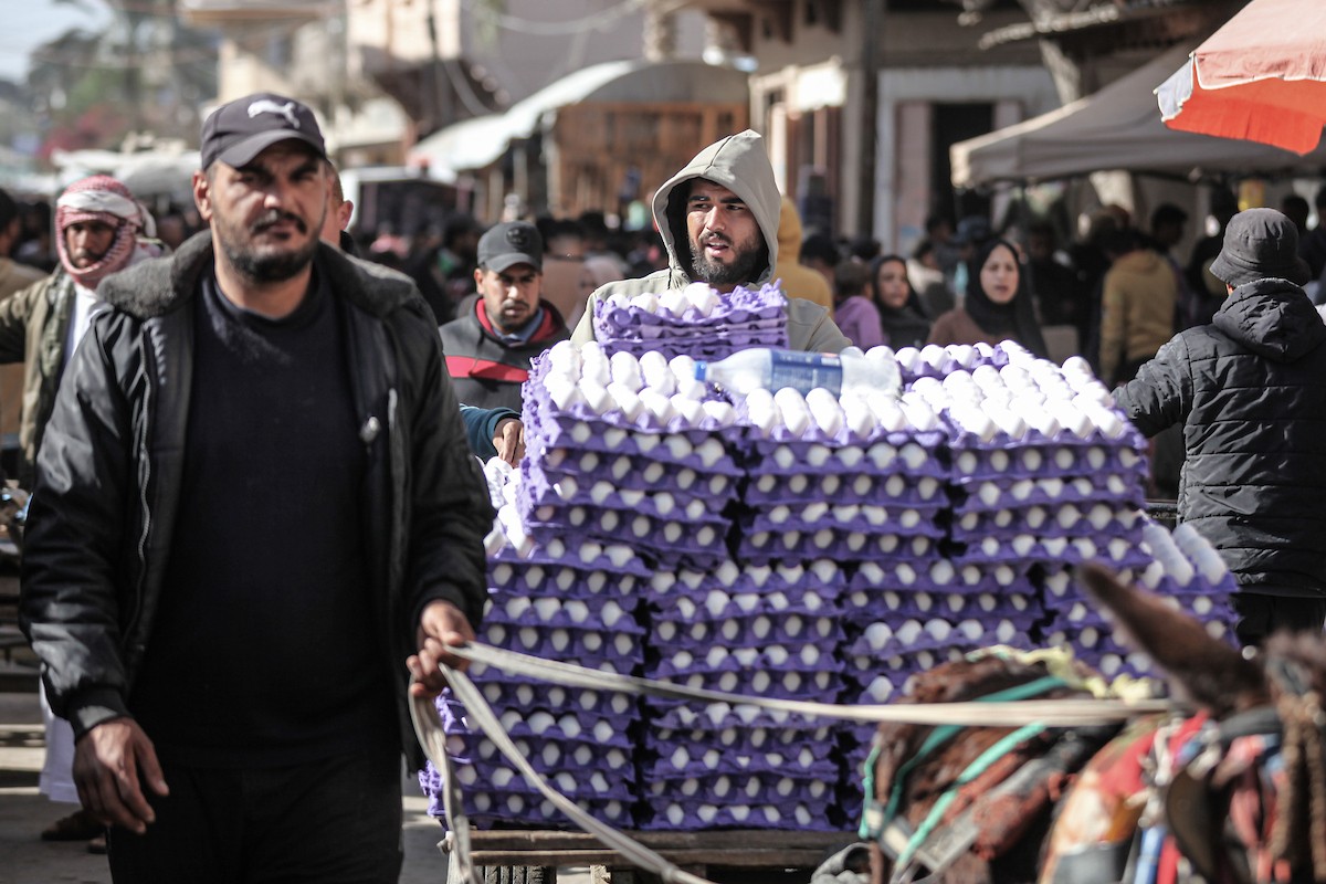 توافد الفلسطينيون باعداد غفيرة إلى السوق الشعبي في دير البلح، وسط قطاع غزة، في الأيام التي تسبق حلول شهر رمضان المبارك، 12 فبراير/شباط 2026. تصوير: معز صالحي