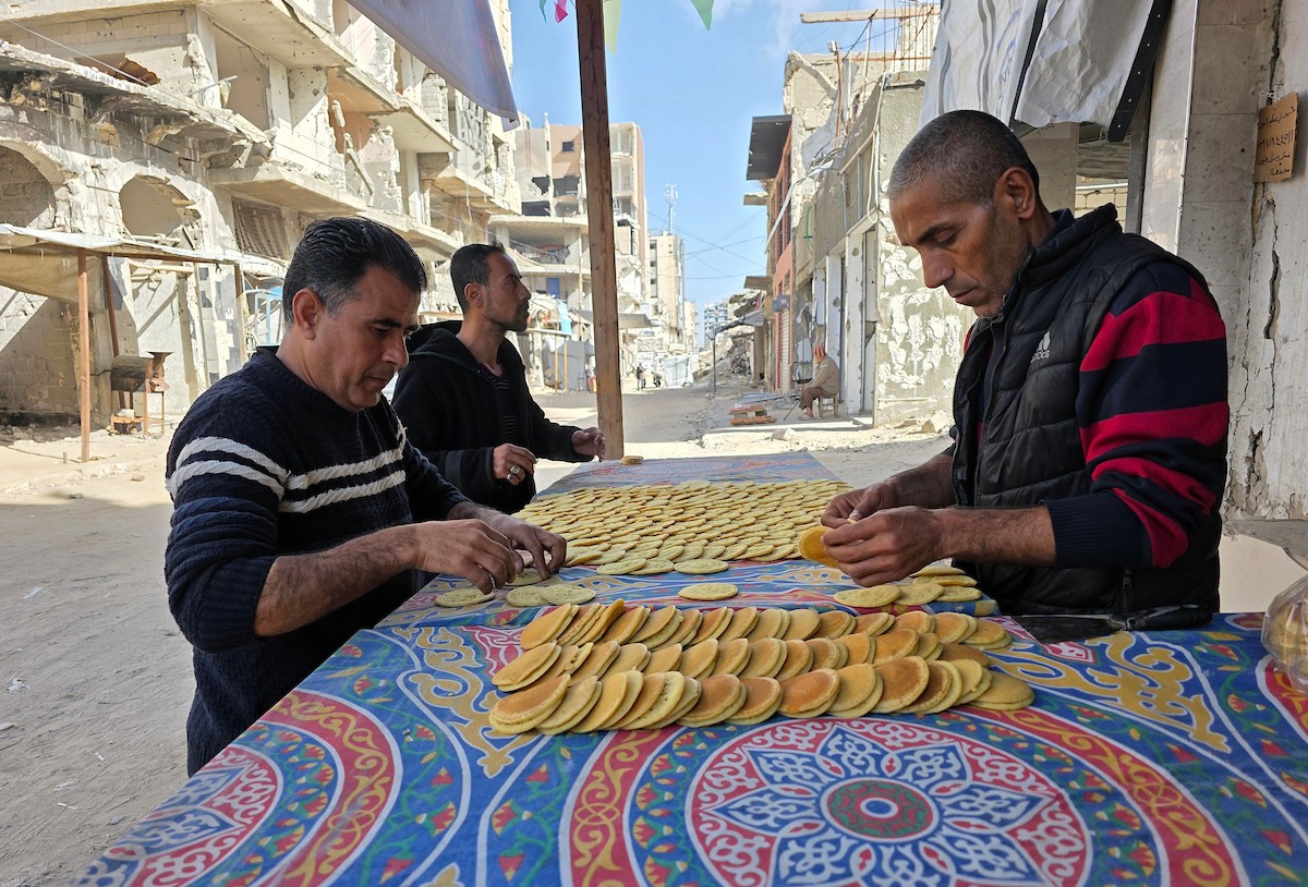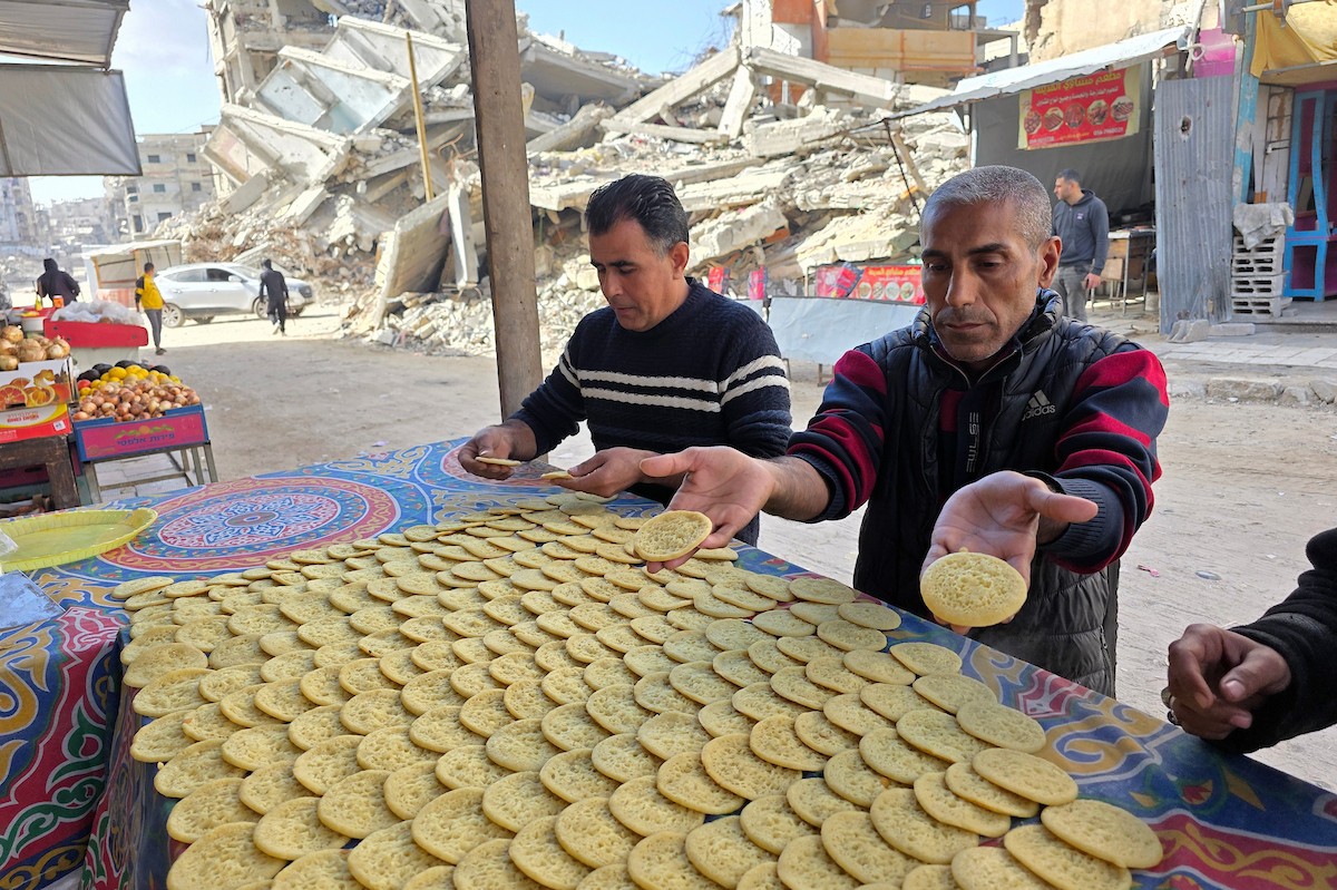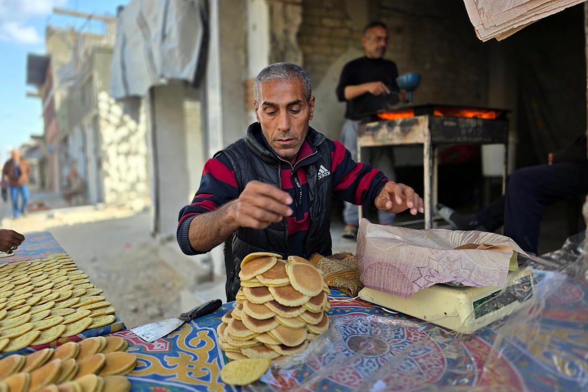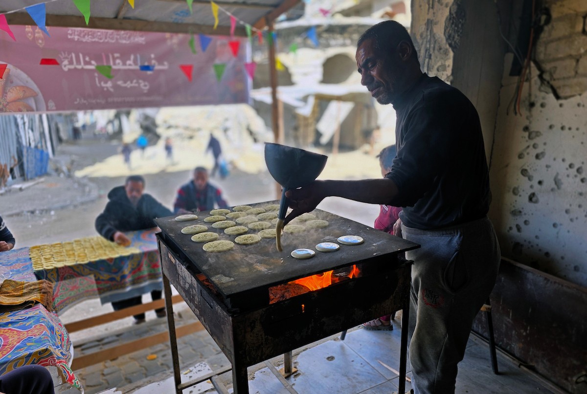 سليم البيوك ُيعدّ معجنات القطايف التقليدية باستخدام أساليب بدائية تعتمد على الحطب والنار، مُواصلاً إحياء تقاليد شهر رمضان منذ أكثر من 20 عاماً، في سوق كراج رفح في خان يونس، جنوب قطاع غزة، في 12 فبراير/شباط 2026.تصوير: طارق محمد