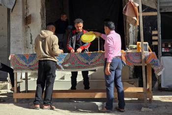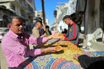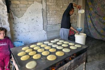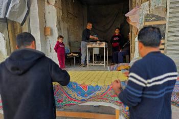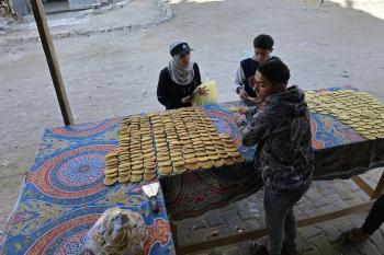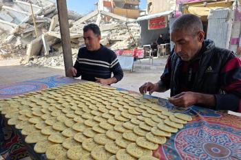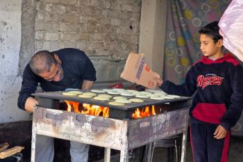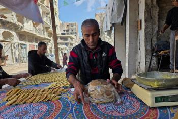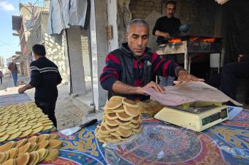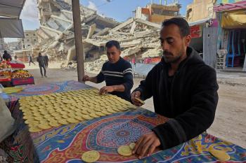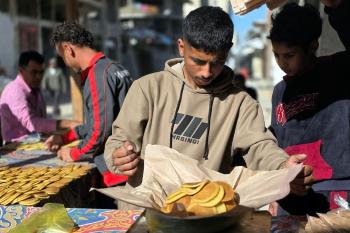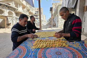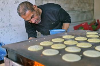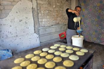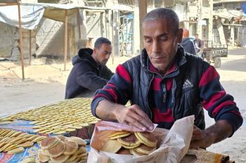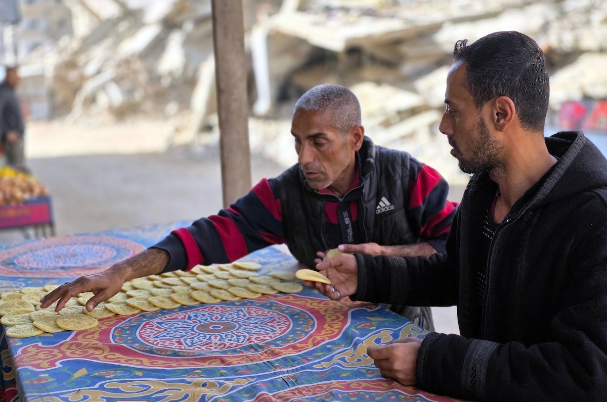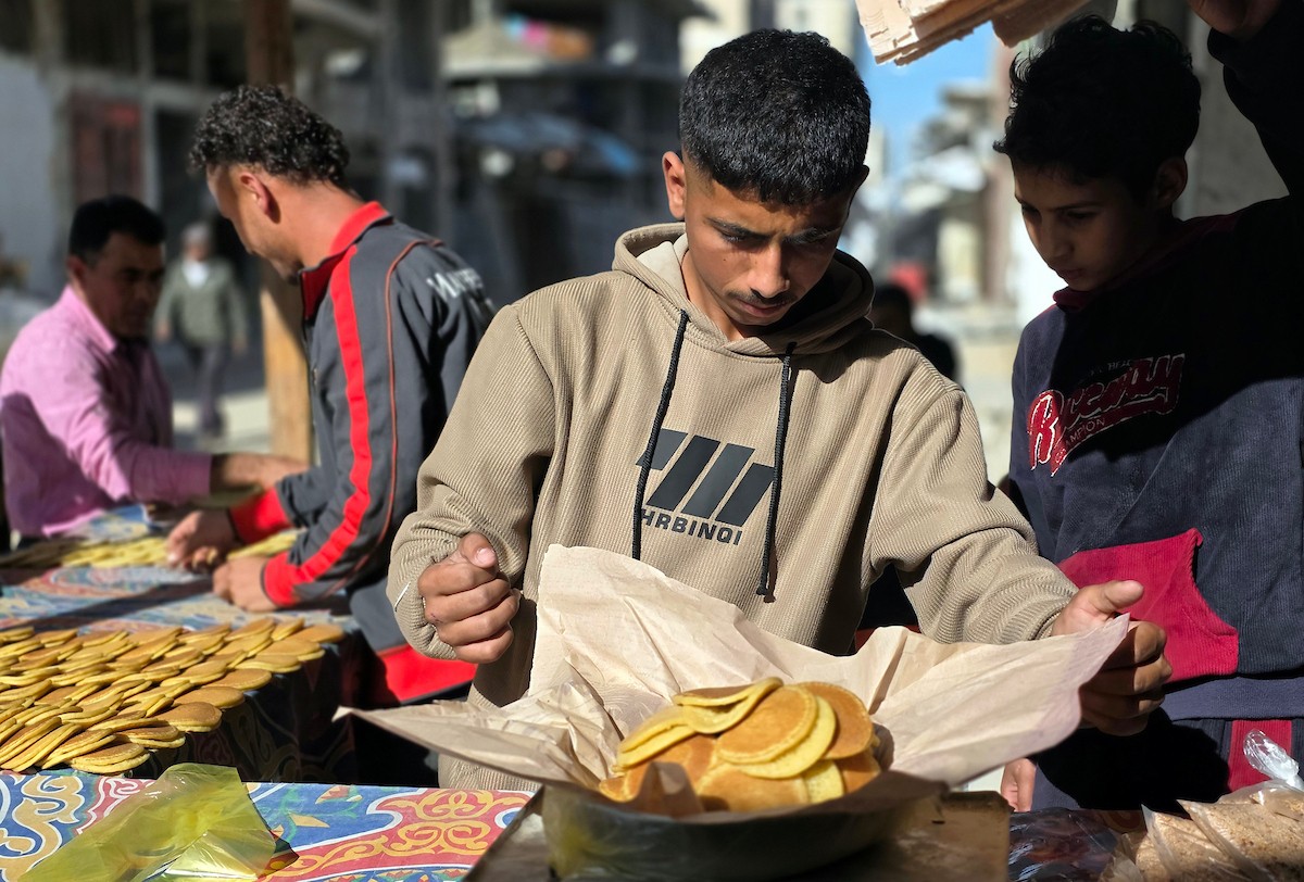 سليم البيوك ُيعدّ معجنات القطايف التقليدية باستخدام أساليب بدائية تعتمد على الحطب والنار، مُواصلاً إحياء تقاليد شهر رمضان منذ أكثر من 20 عاماً، في سوق كراج رفح في خان يونس، جنوب قطاع غزة، في 12 فبراير/شباط 2026.تصوير: طارق محمد