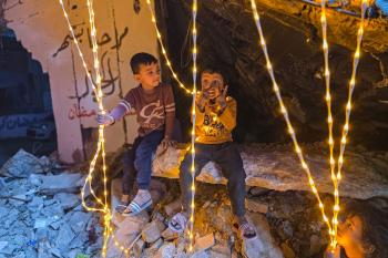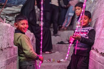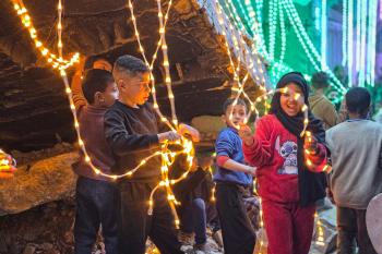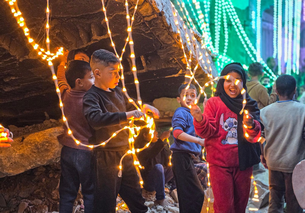 يحتفل الفلسطينيون في خان يونس جنوب قطاع غزة بشهر رمضان المبارك، مستقبلين قدومه بأمل وفرح، في 17 فبراير/شباط 2026. صورة: تامر إبراهيم