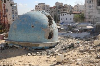 يستقبل الفلسطينيون شهر رمضان وسط دمار غير مسبوق في المساجد التي يؤدون فيها شعائرهم الدينية. مدينة غزة، 19 فبراير/شباط 2026. صورة: عمر أشتوي