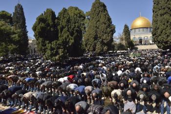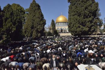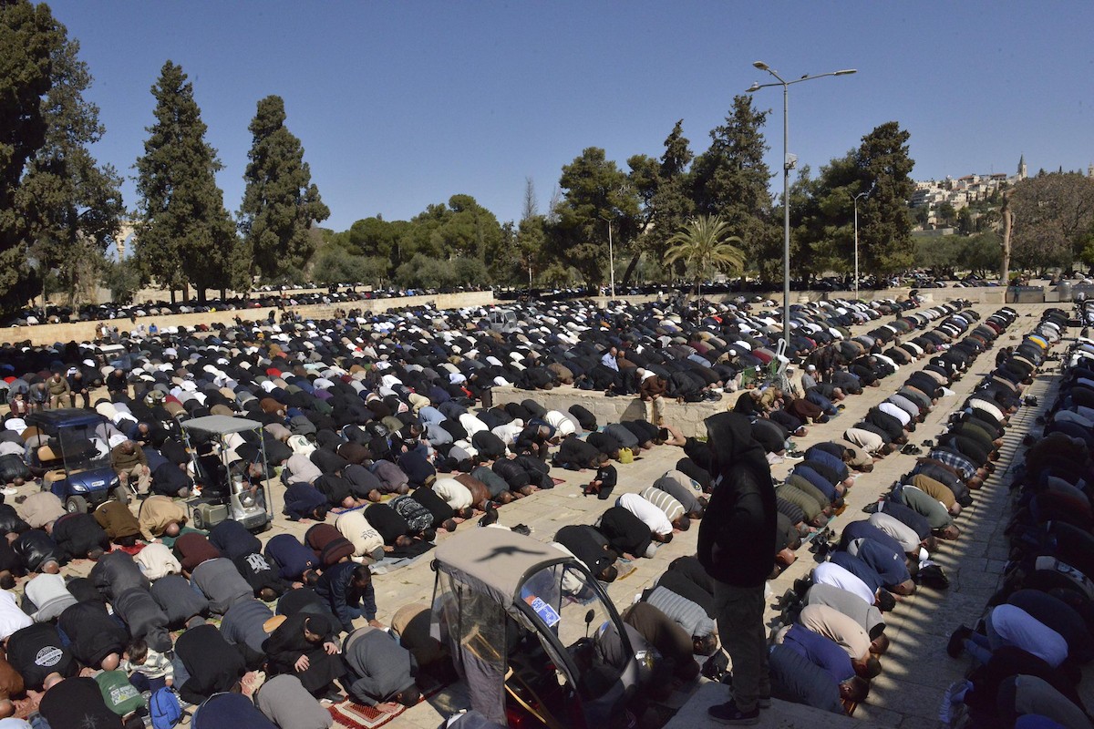أدى الفلسطينيون أول صلاة جمعة من شهر رمضان في المسجد الأقصى بالقدس، في 20 فبراير/شباط 2026. صورة من دائرة الأوقاف الإسلامية بالقدس