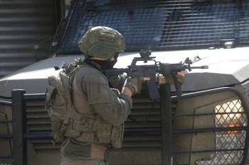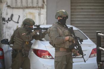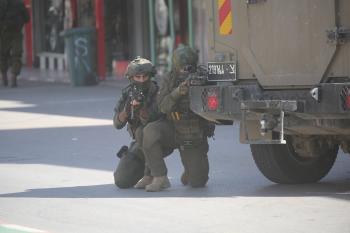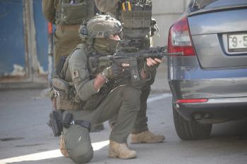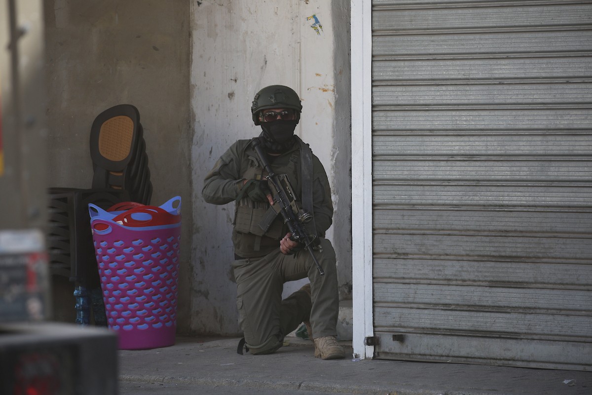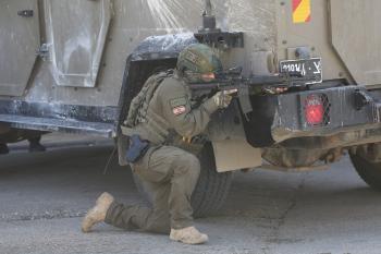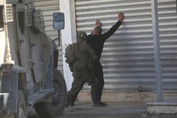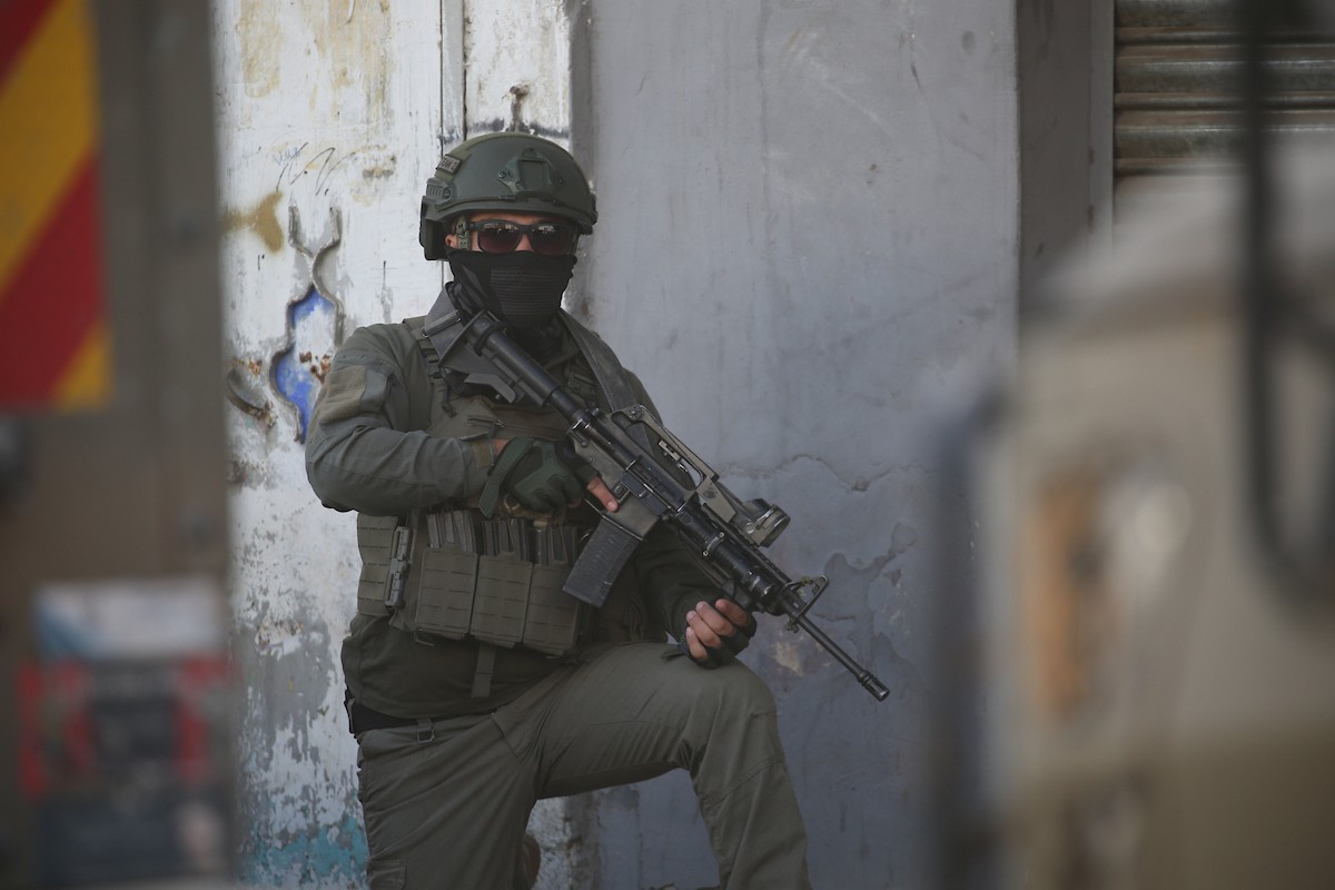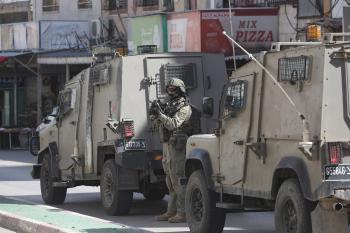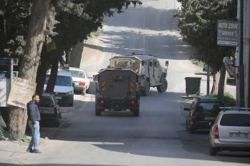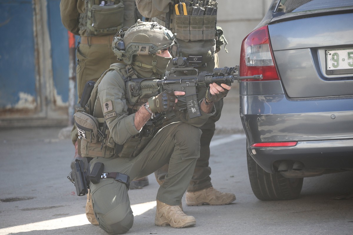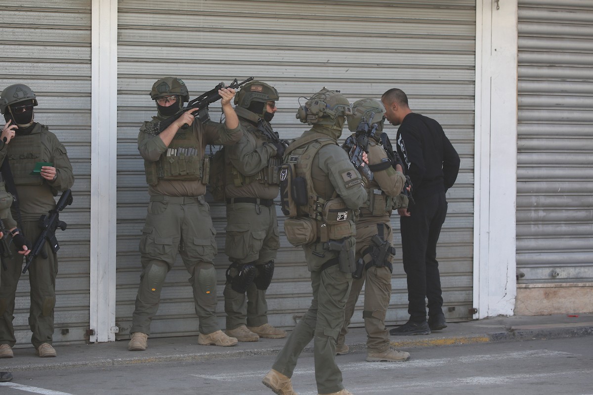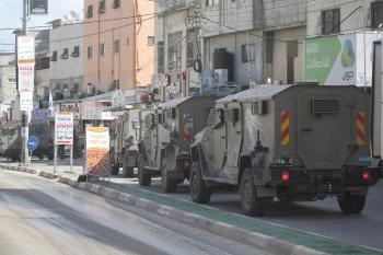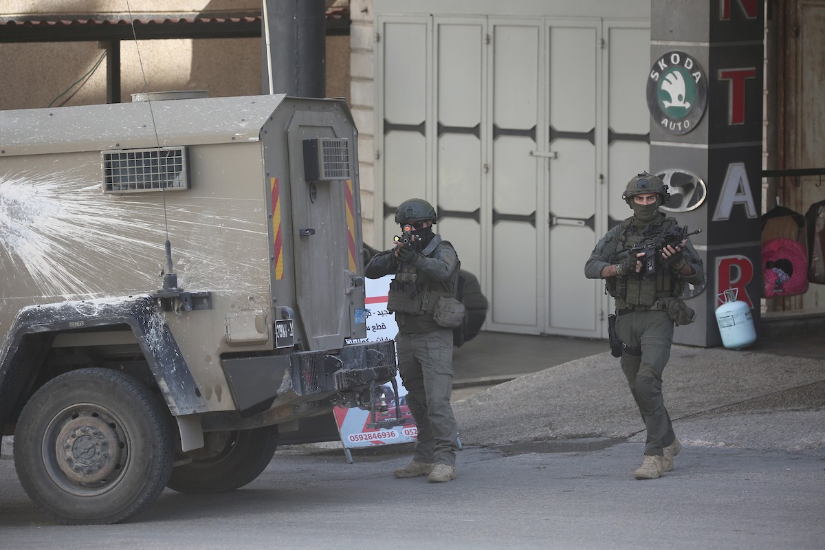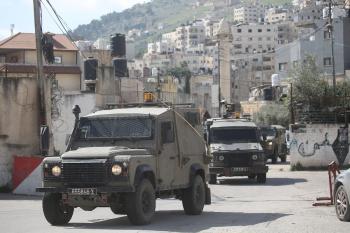 نفّذت قوات الجيش الإسرائيلي مداهمات ودوريات في شوارع مخيم عسكر للاجئين، شرق نابلس في الضفة الغربية، خلال عملية عسكرية داهمت خلالها متاجر واعتقلت عدداً من الشبان الفلسطينيين. ٢٢ فبراير/شباط ٢٠٢٦. صورة: محمد ناصر
