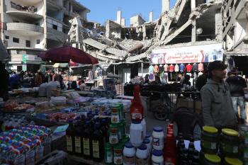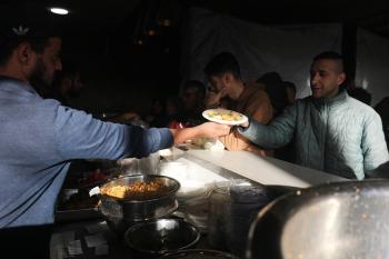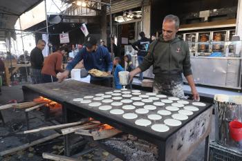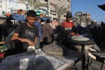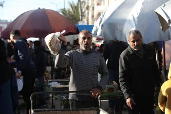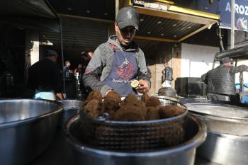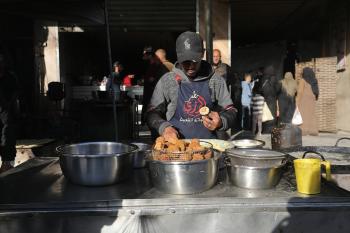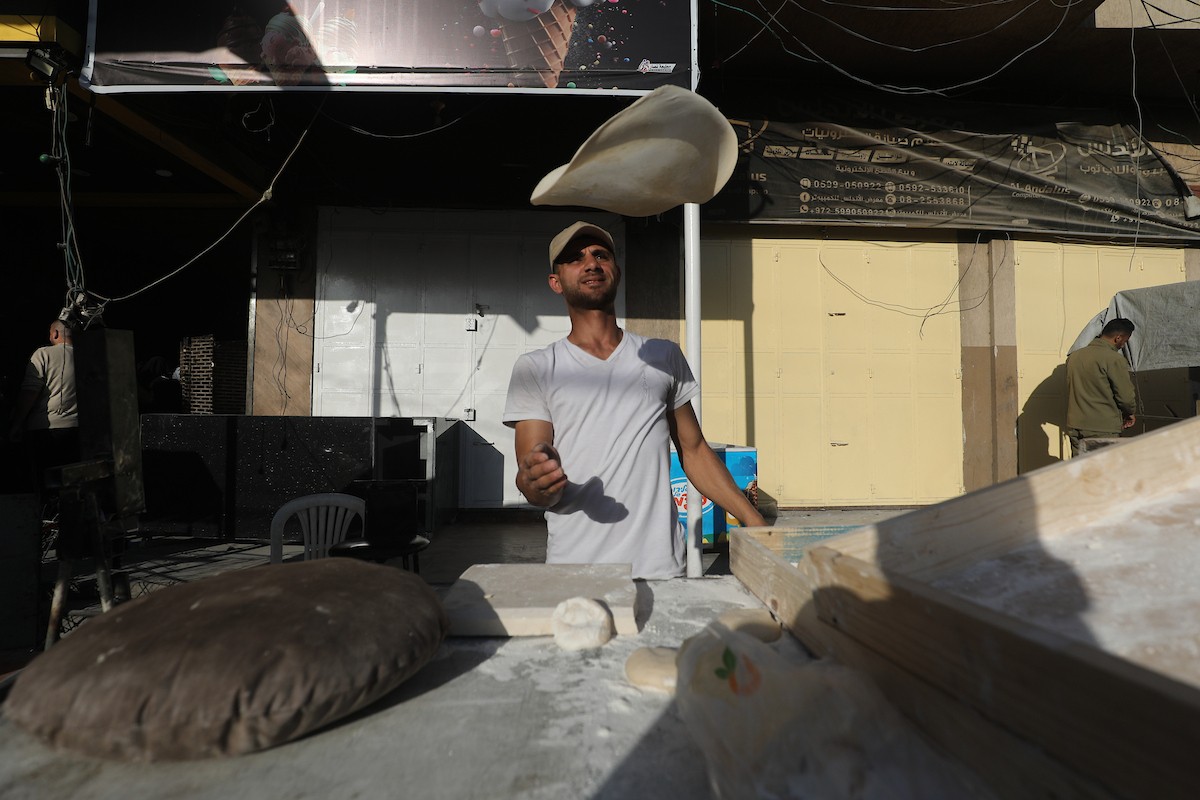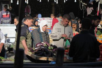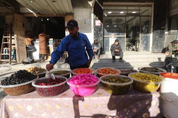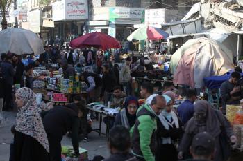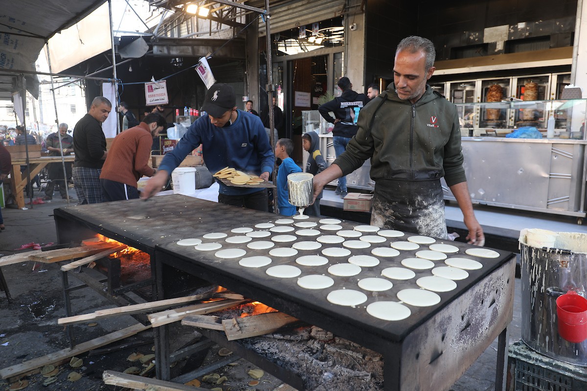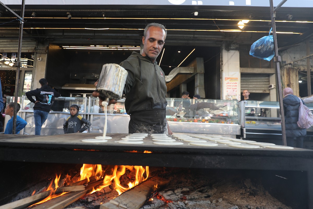 مشهد من الأسواق والبازارات في مخيم النصيرات، وسط قطاع غزة، حيث يستعد المواطنون للإفطار خلال شهر رمضان، في 22 فبراير/شباط 2026. تصوير: معز صالحي