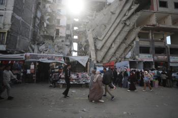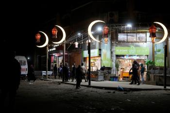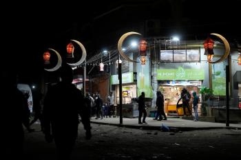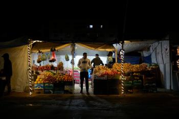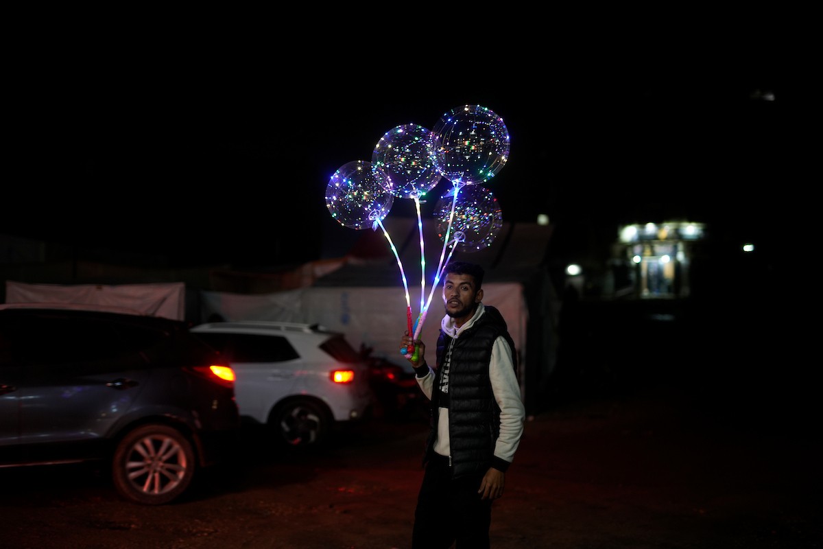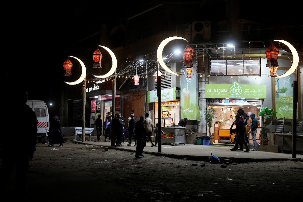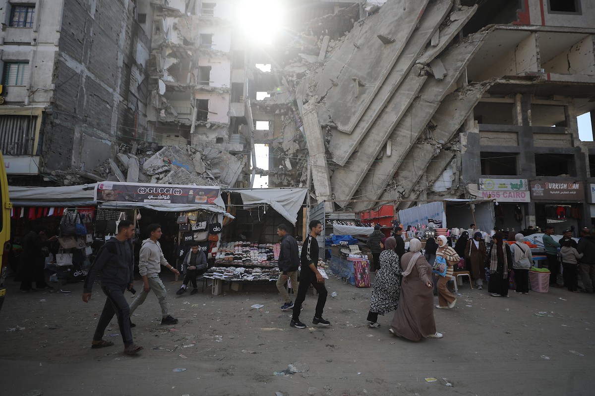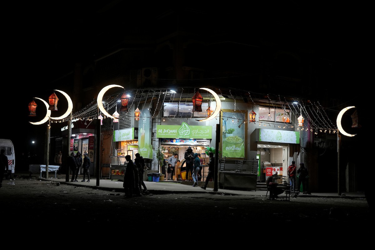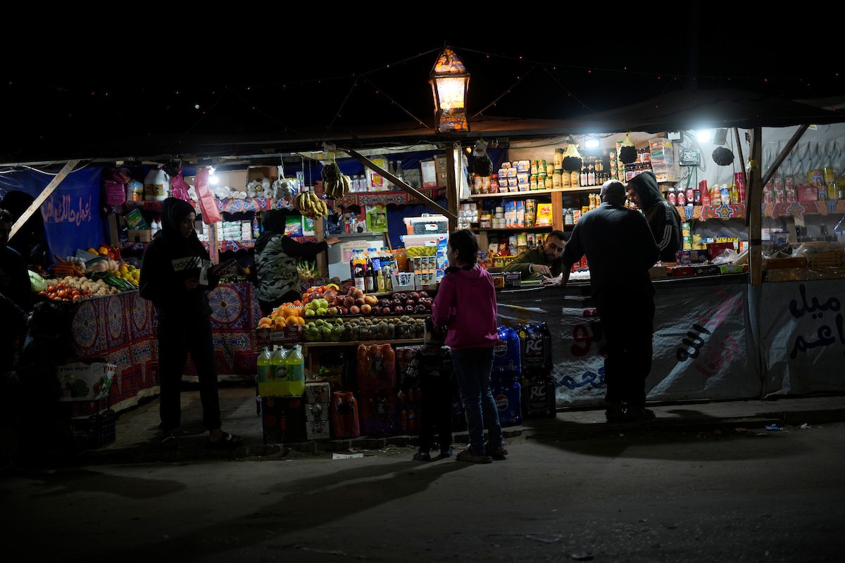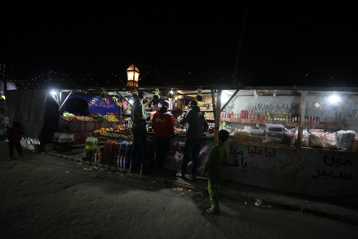 يبيع الباعة الفلسطينيون الطعام وغيره من السلع في سوق بمدينة غزة خلال اليوم الخامس من شهر رمضان المبارك، 22 فبراير/شباط 2026. تصوير: عمر أشتوي