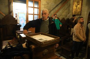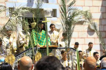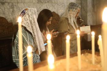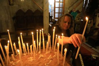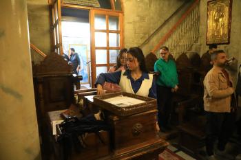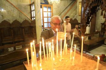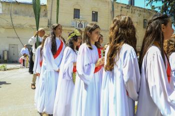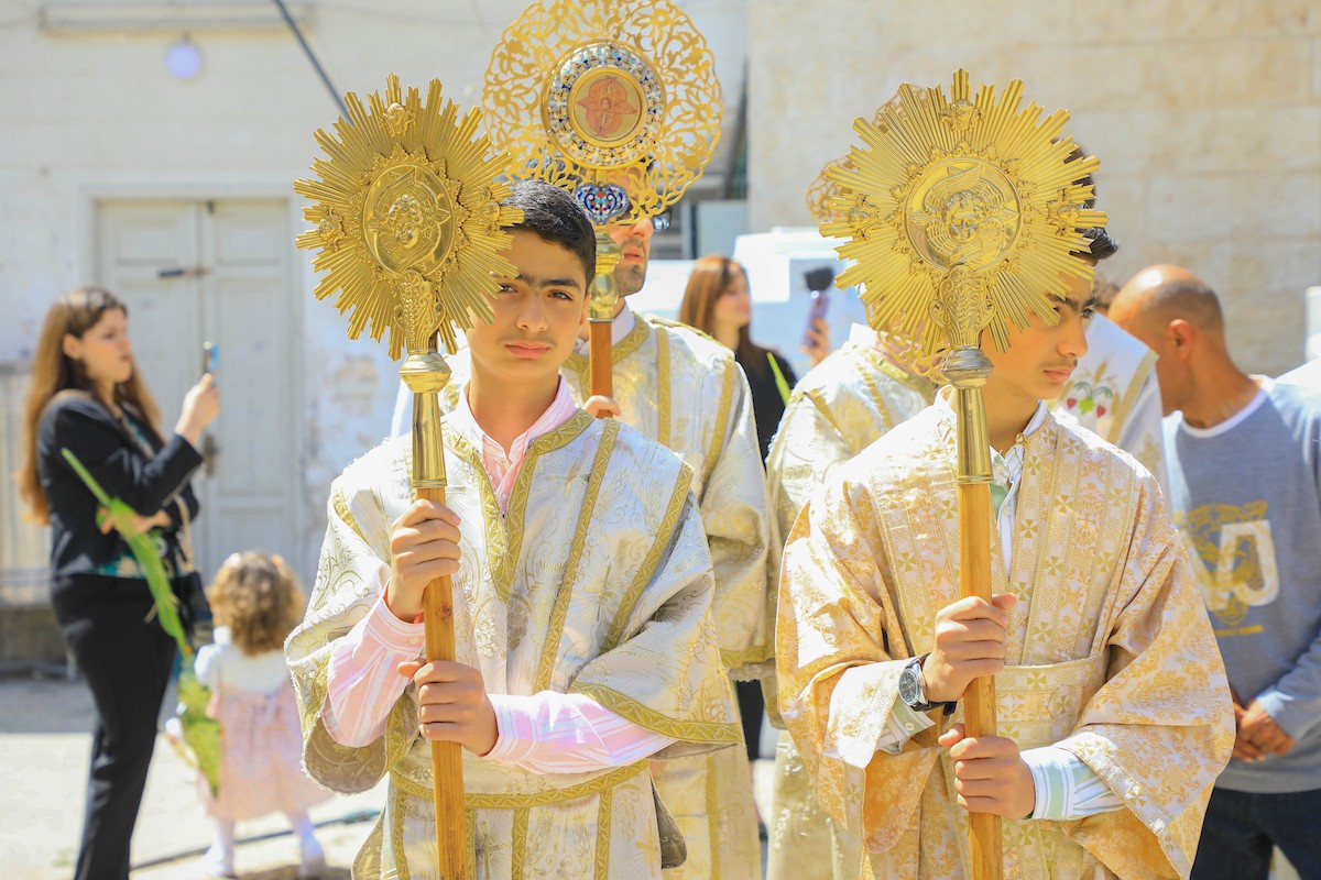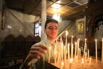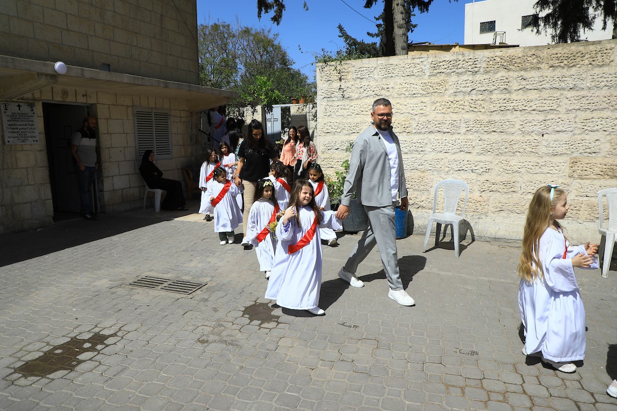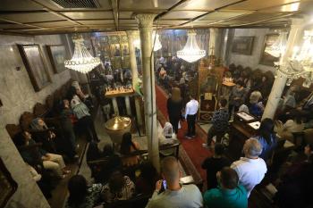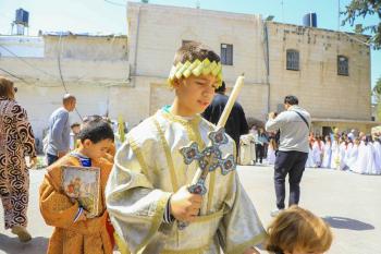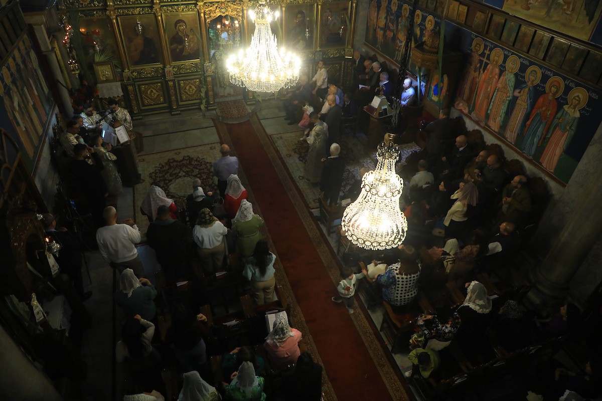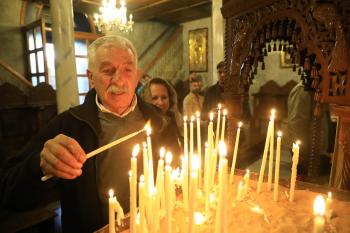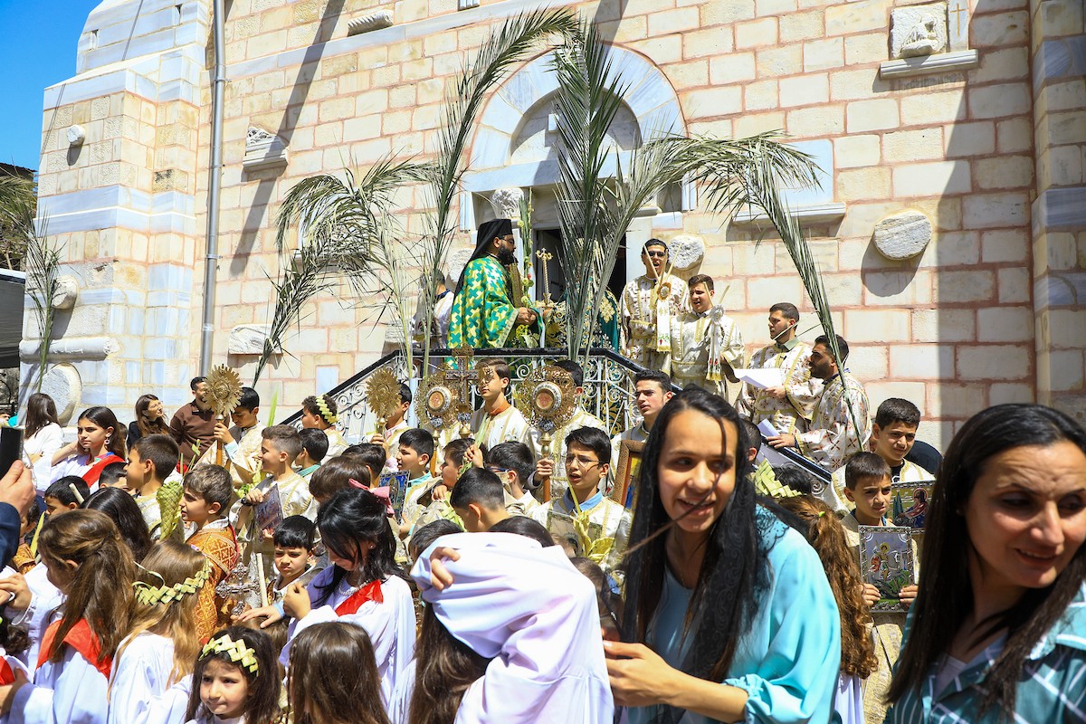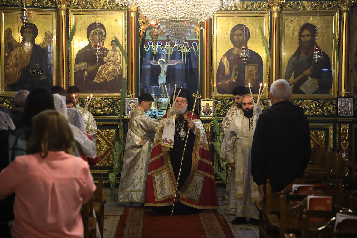 حضر مسيحيون أرثوذكس مقيمون في مدينة غزة، قداسًا في كنيسة القديس بورفيريوس احتفالًا بأحد الشعانين، الذي يُحيي ذكرى دخول السيد المسيح إلى القدس واستقبال الشعب له بأغصان النخيل. مدينة غزة، 5 أبريل/نيسان 2026. تصوير: هاشم زامو/apaimages