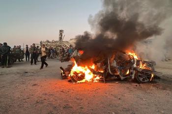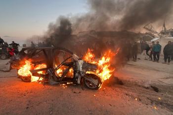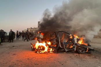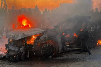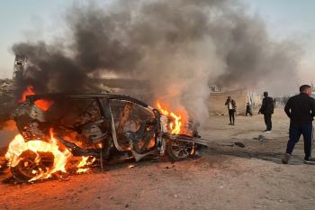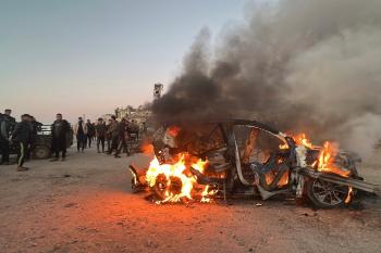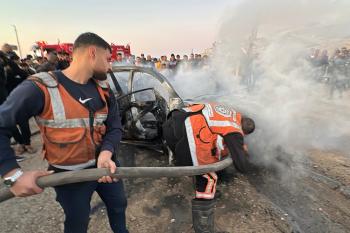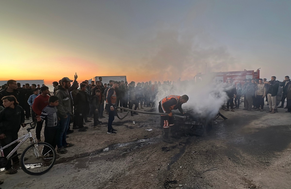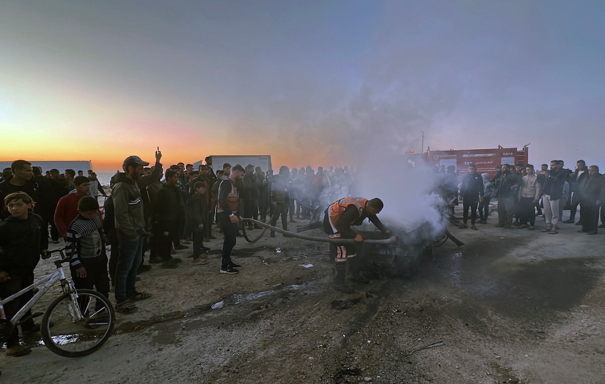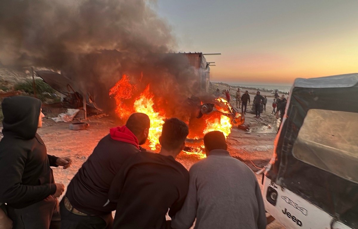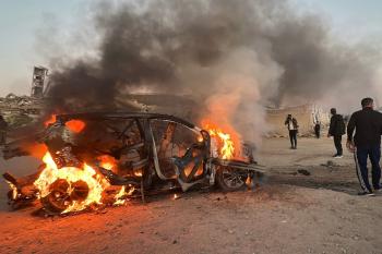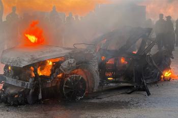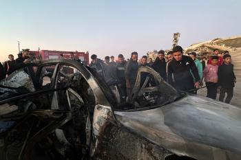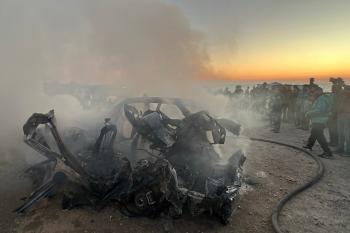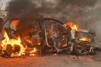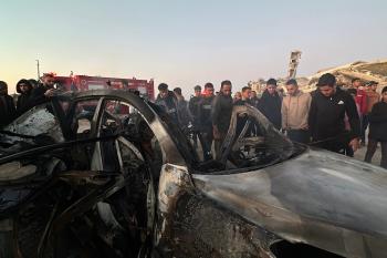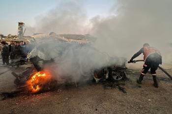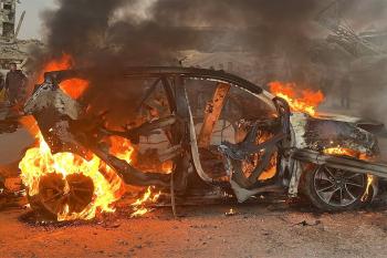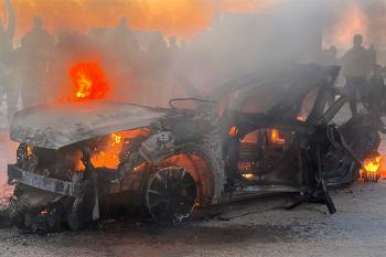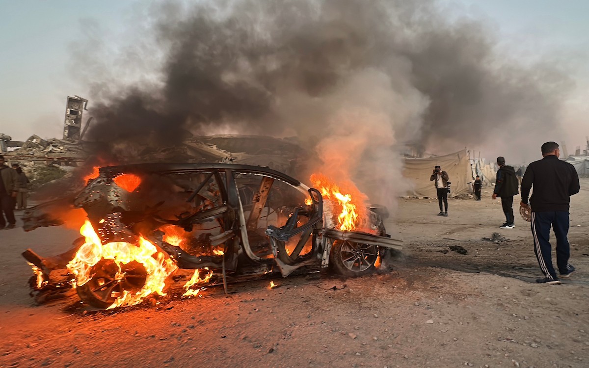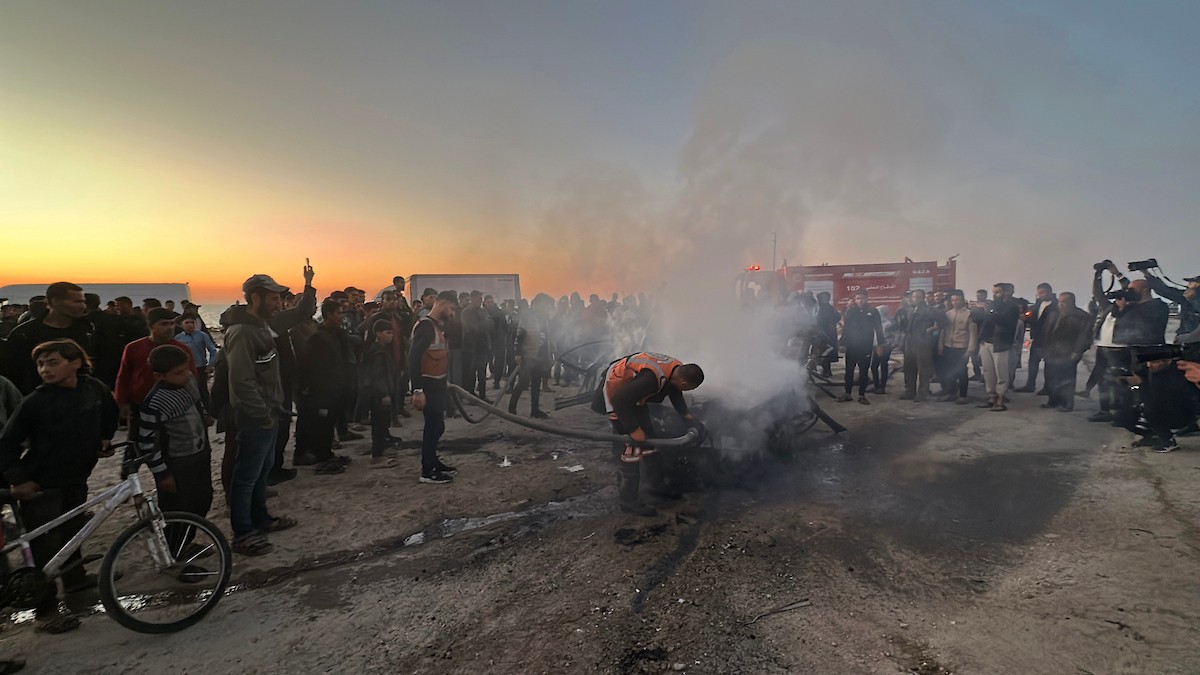مركبة الزميل الصحفي الشهيد محمد وشاح التي دمرها صاروخ أطلقته طائرة مسيّرة إسرائيلية خلال عملية اغتيال مباشرة غرب مدينة غزة، 8 أبريل/نيسان 2026، (صورة: هادي داود )